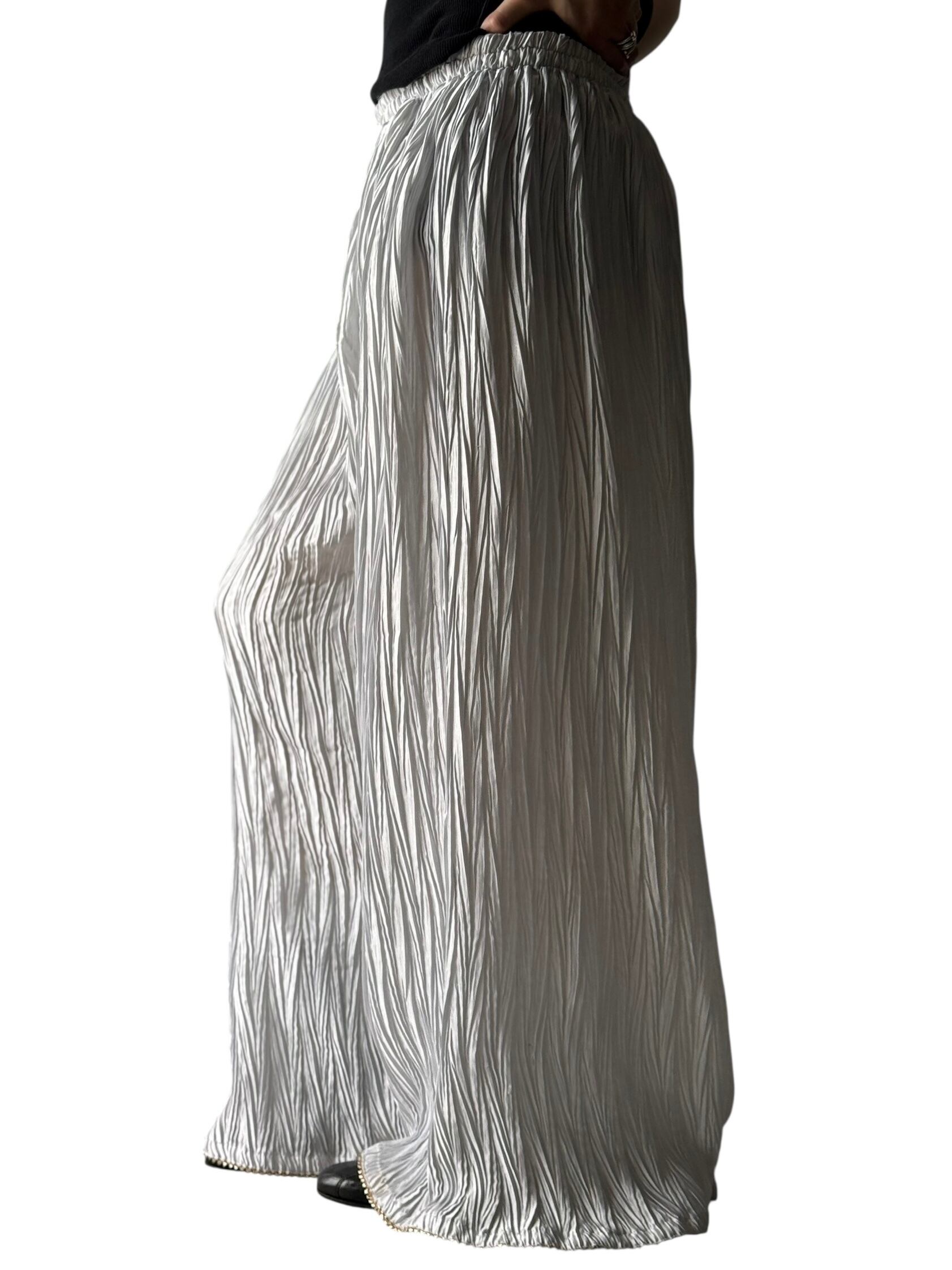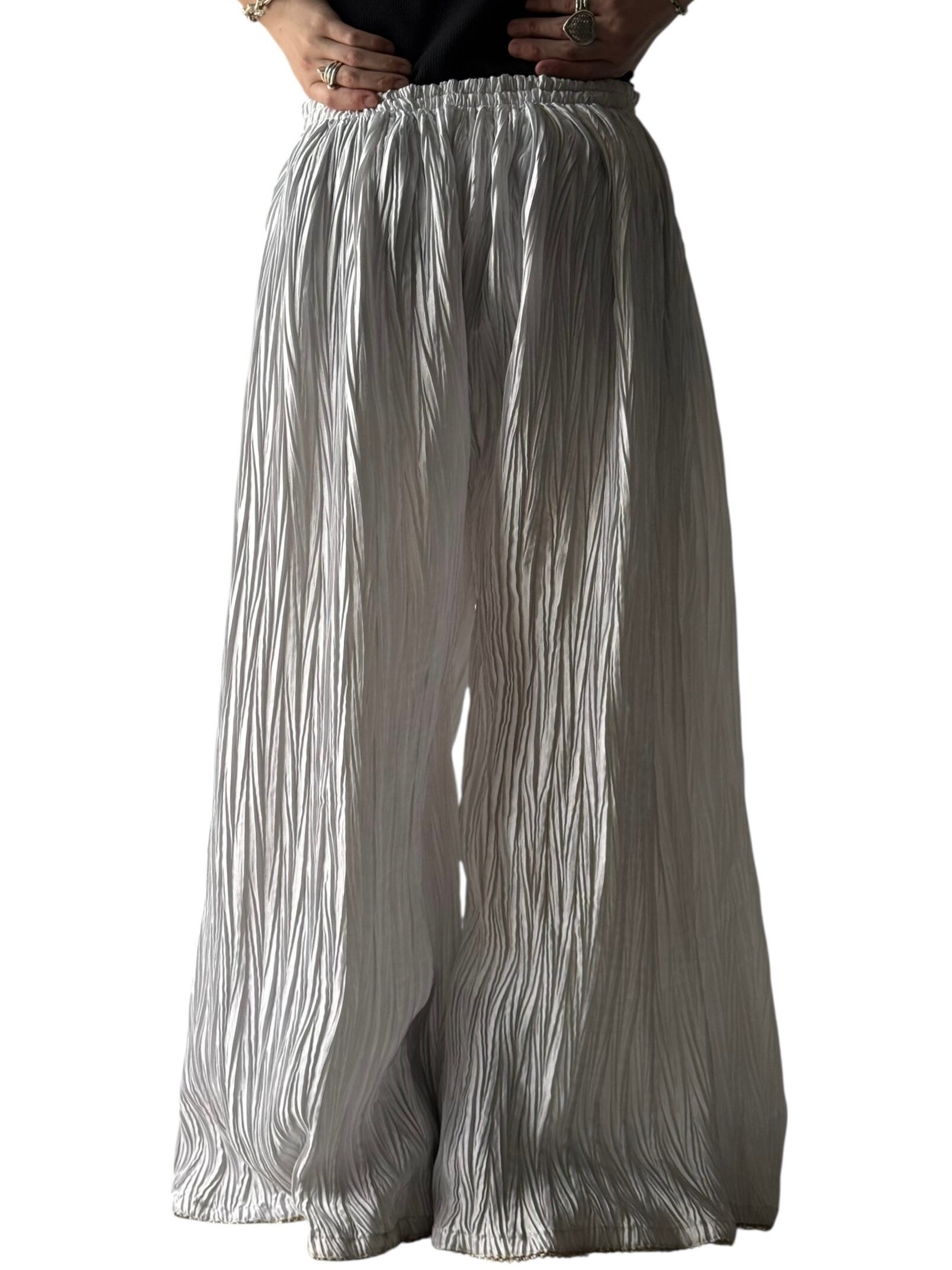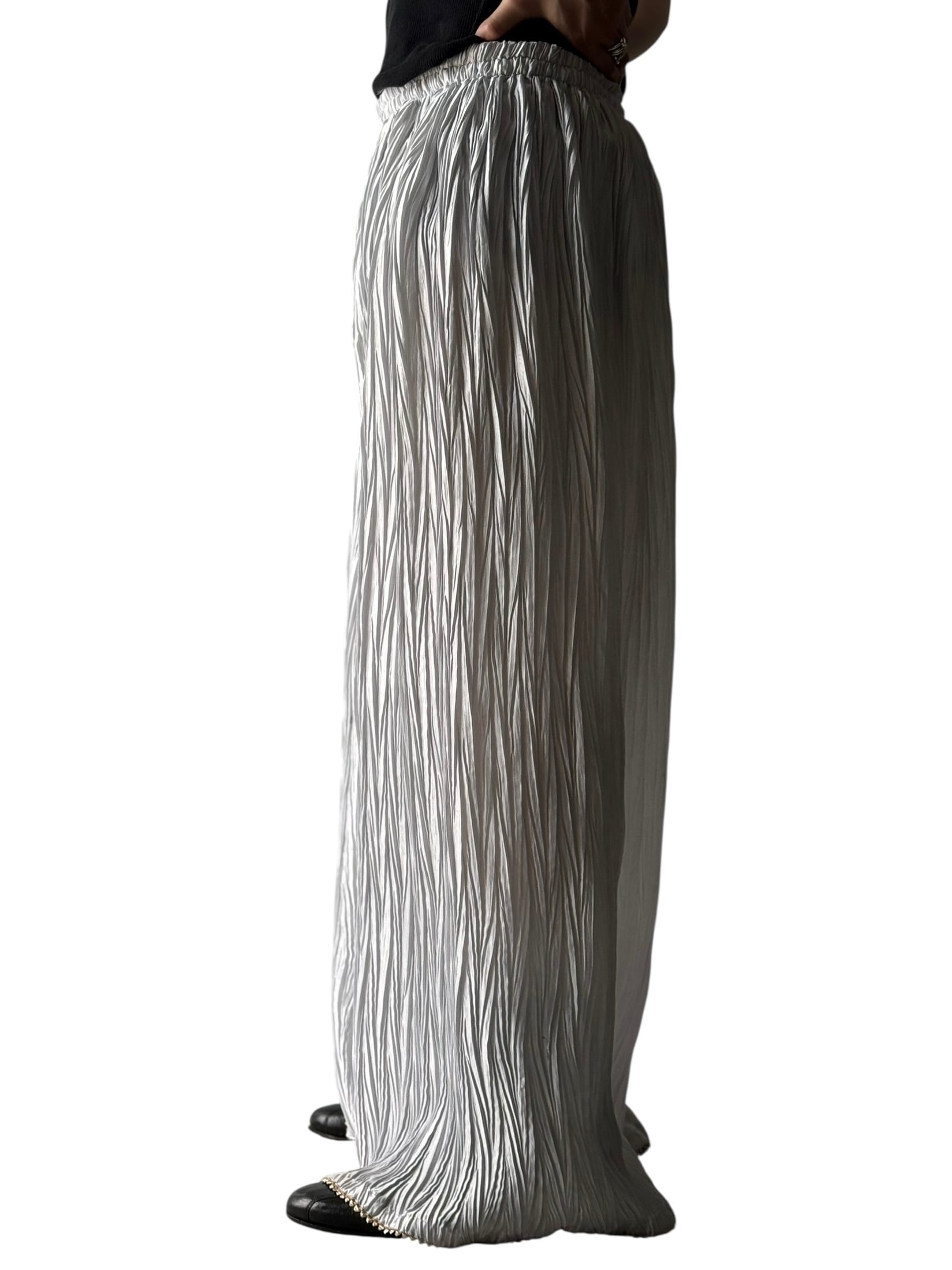 光沢のあるサテンの様な生地感で高級感あり更には全体に施したシワ加工がめちゃくちゃブランドライクな1本✨️
