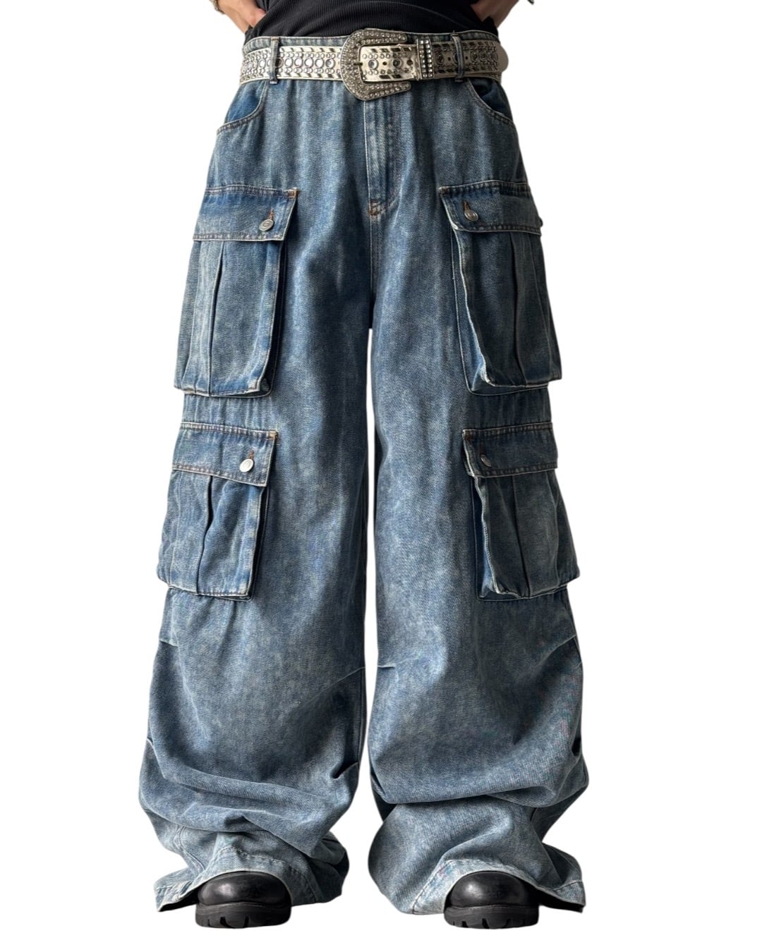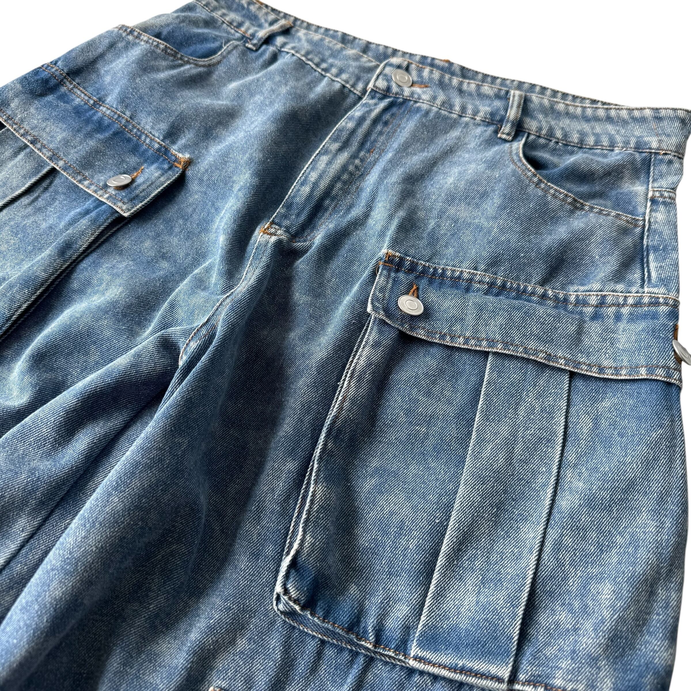 ♾️Design used♾️ Cargo detail wide straight silhouette chemical denim pants
