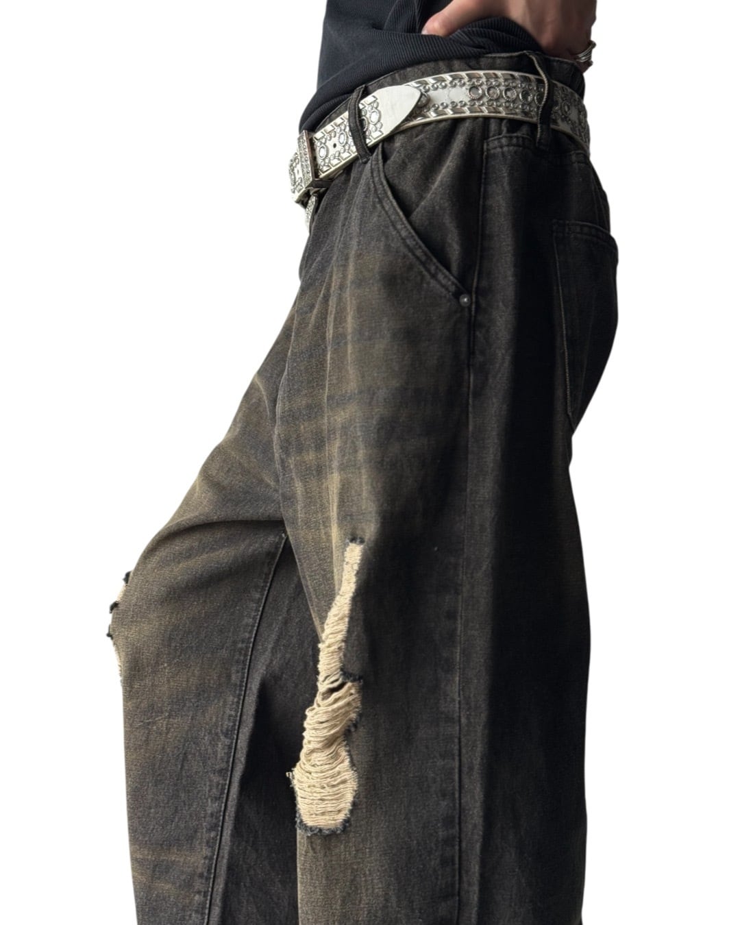 ワイドバギーシルエットが存在感抜群なクラッシュデザインデニムパンツの入荷‼️