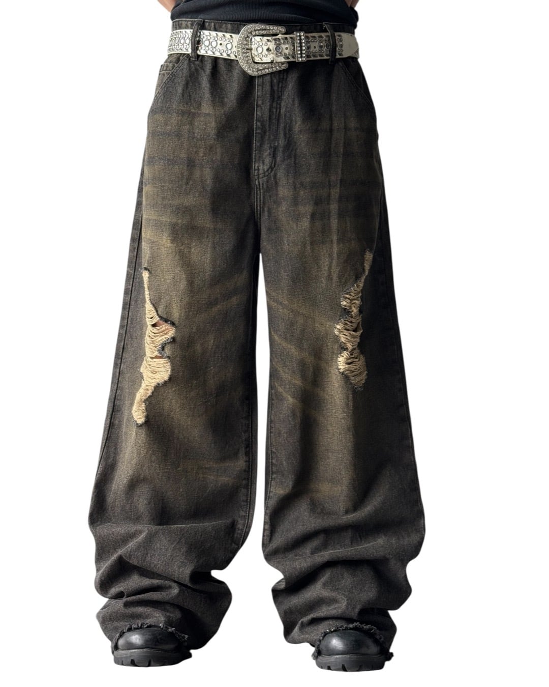 ♾design used♾ hyper wide buggy silhouette ripped jeans