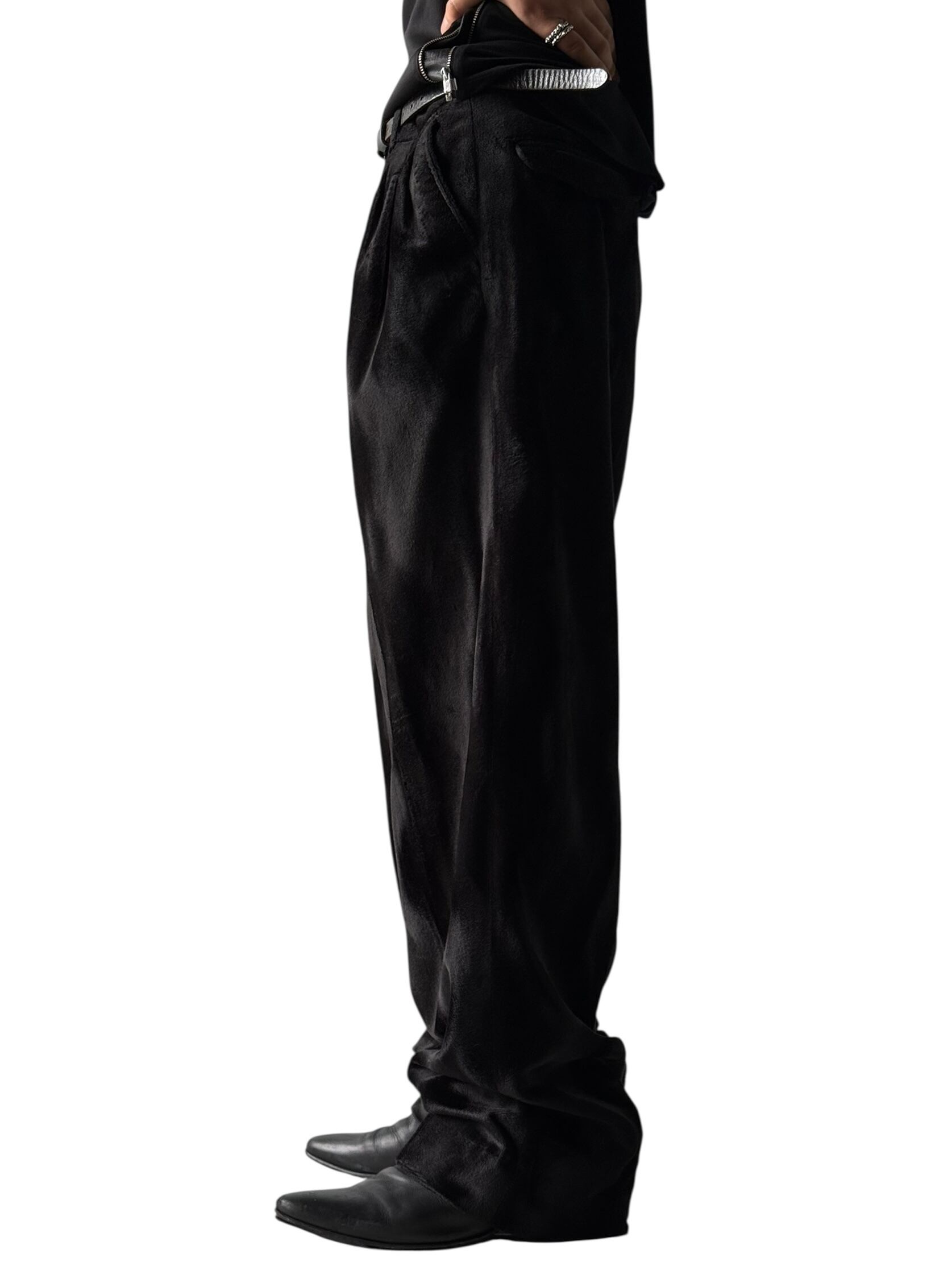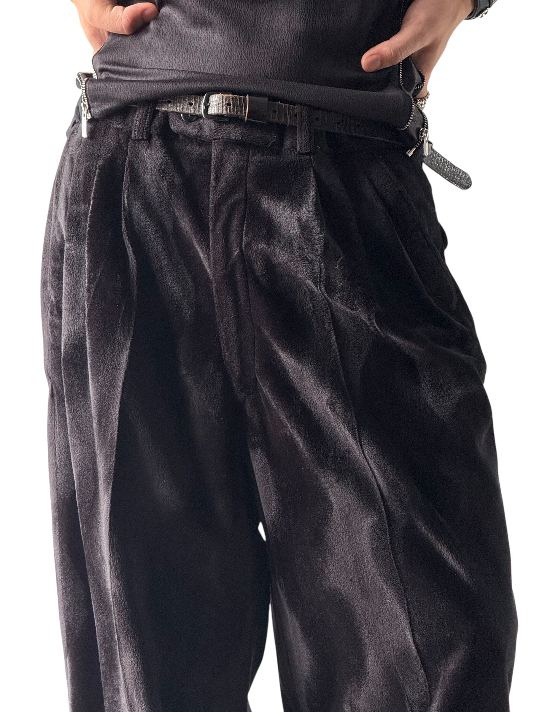 【PRONTI】Fake fur wide tuck slacks -Black-