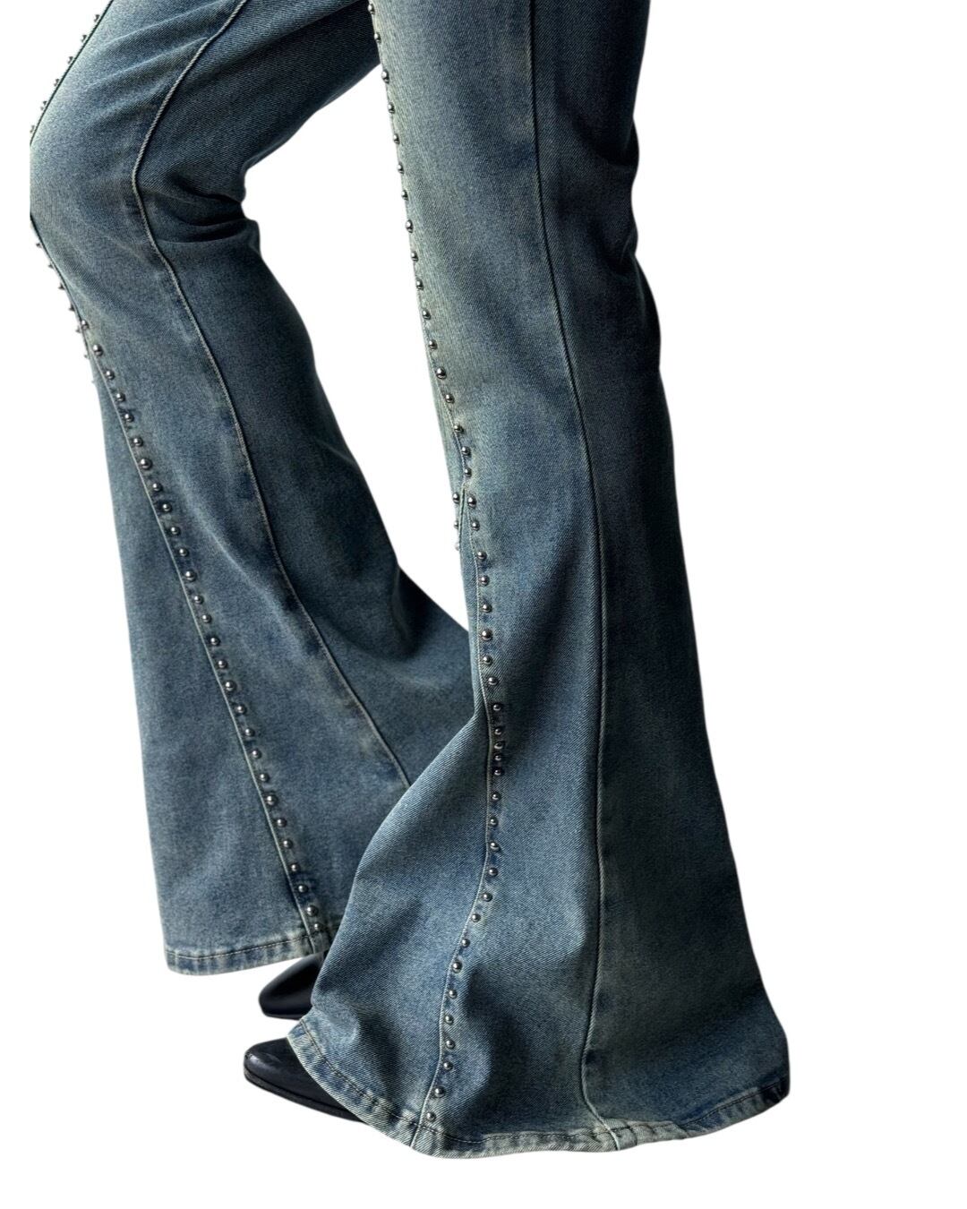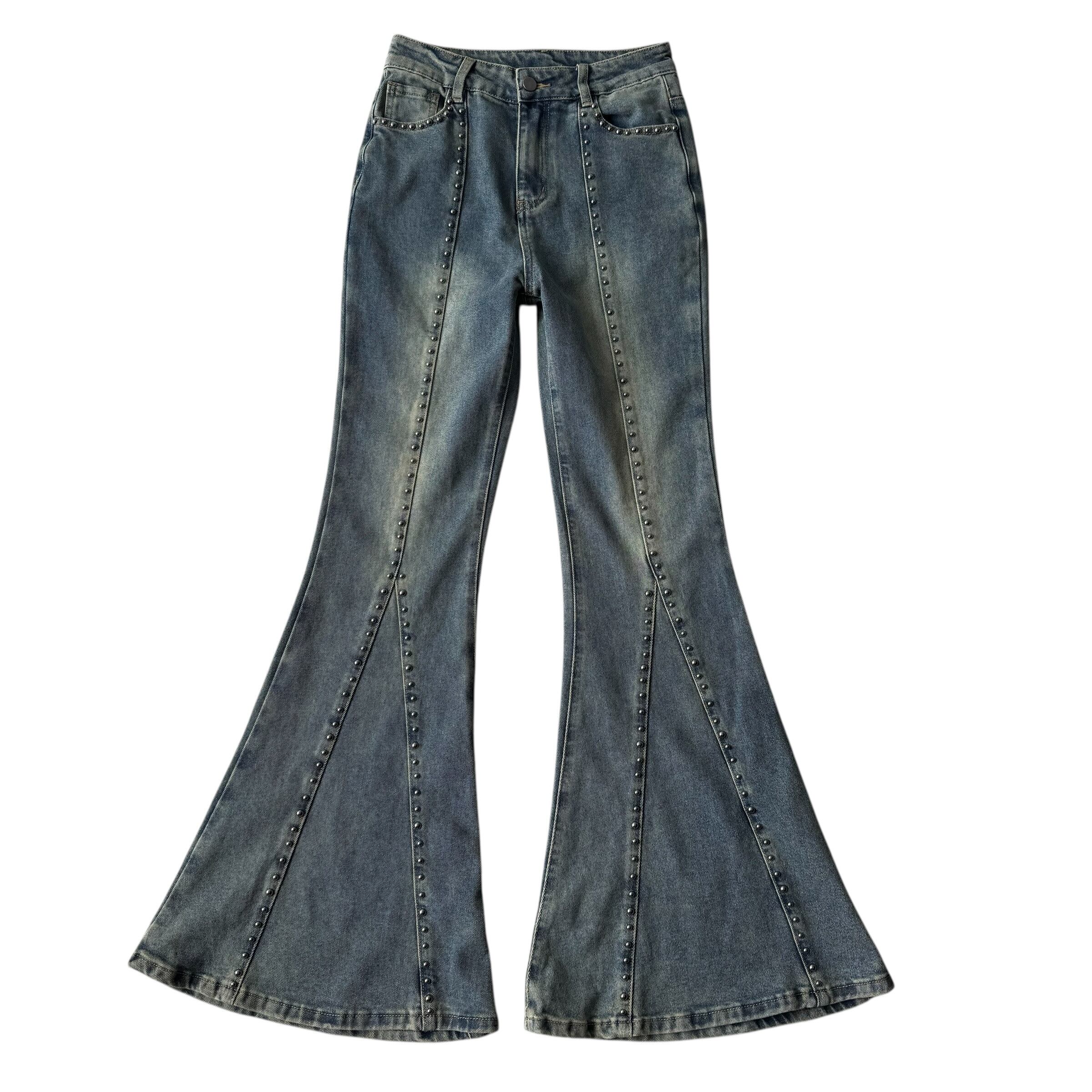 ♾design used♾ big bell silhouette studs design denim pants sizeS