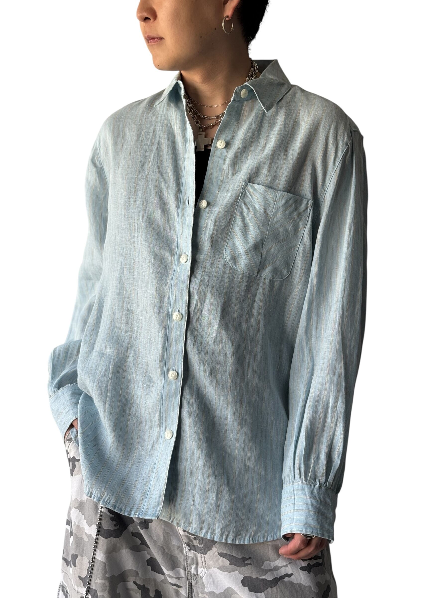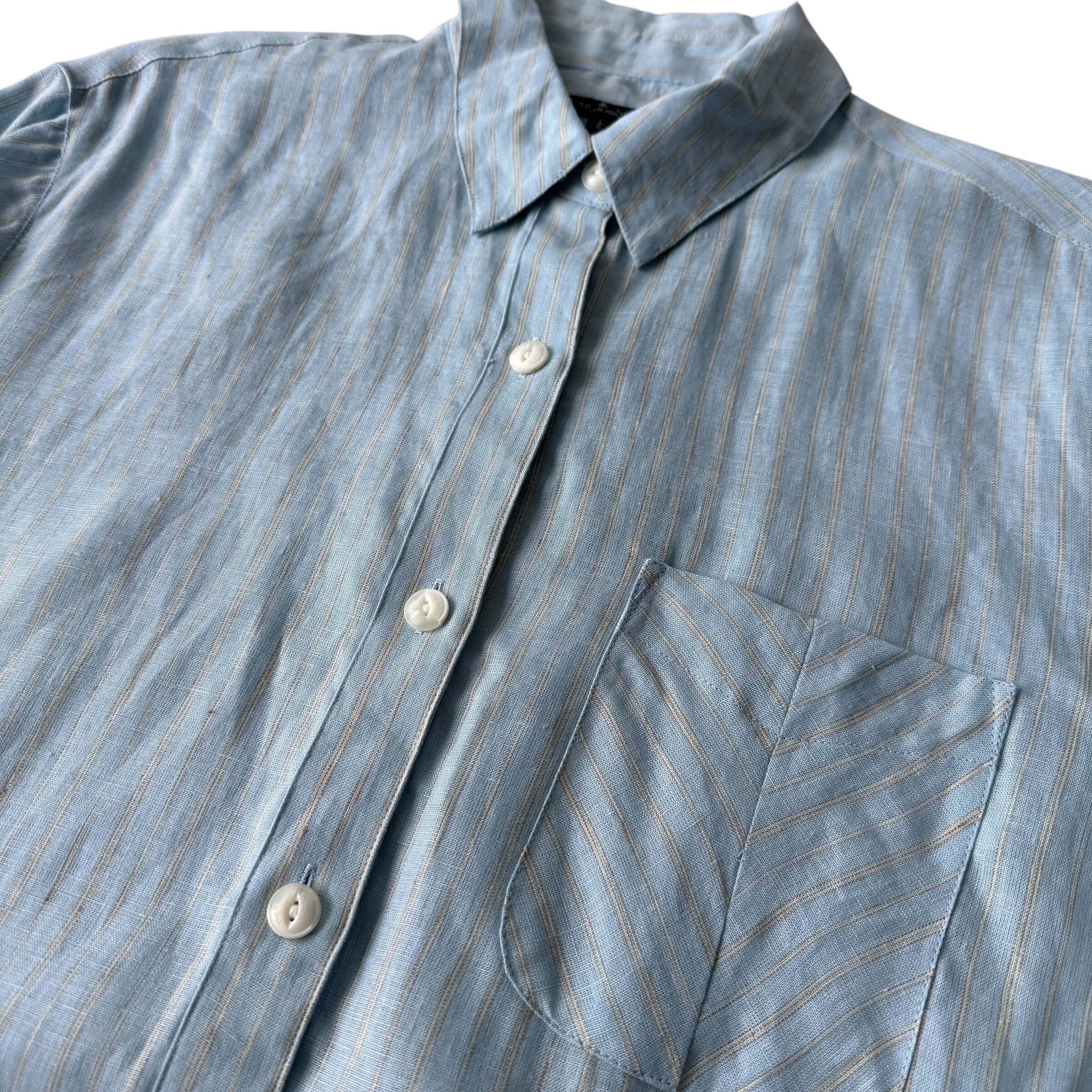 爽やかライトブルーのストライプパターンがオトナなリネンシャツ✨️