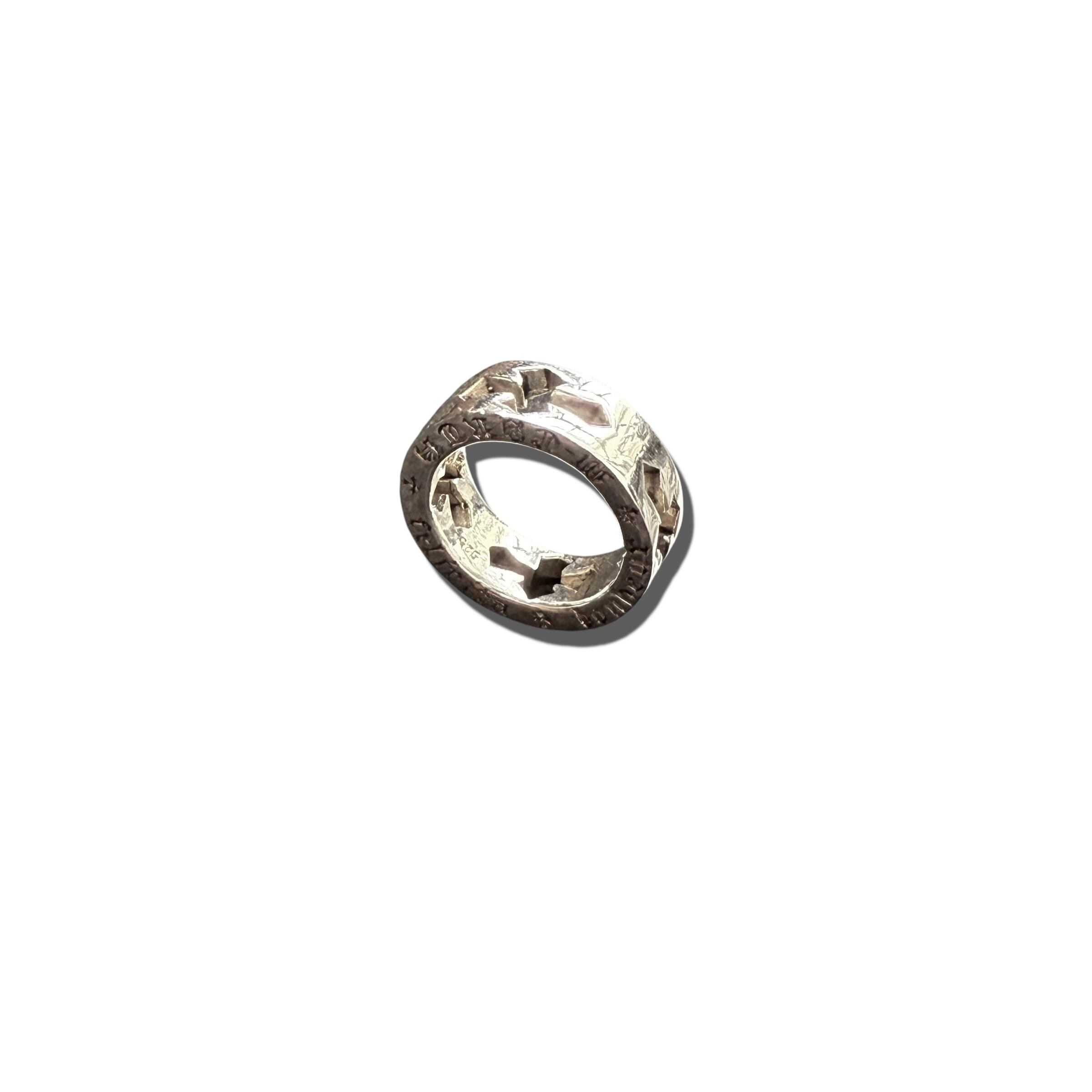リングはオールドイングリッシュ刻印に加えてクロスのカットアウトデザイン。