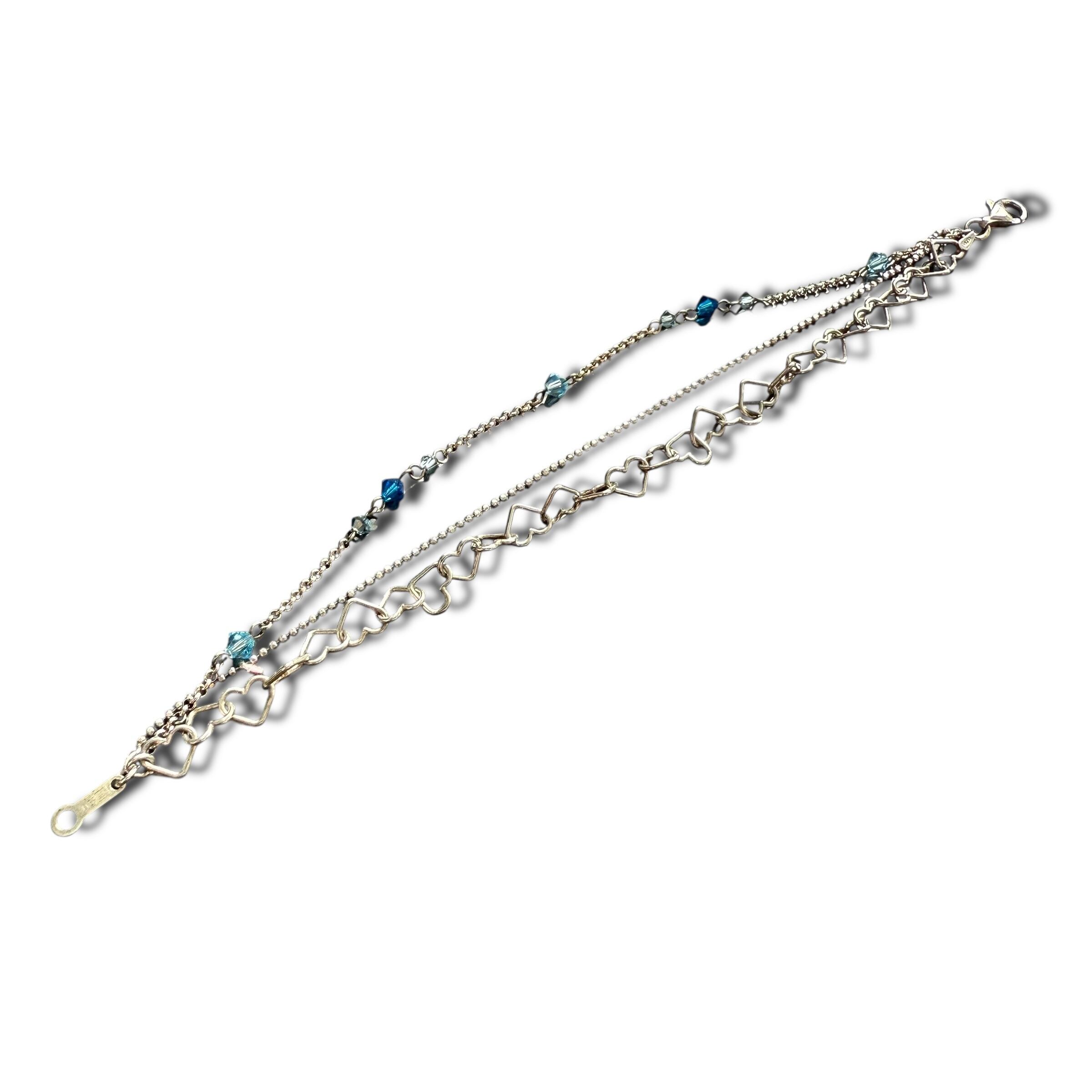 ハートやストーンなどいくつかのチェーンの形状がレイヤードされたお洒落ブレスレット!!