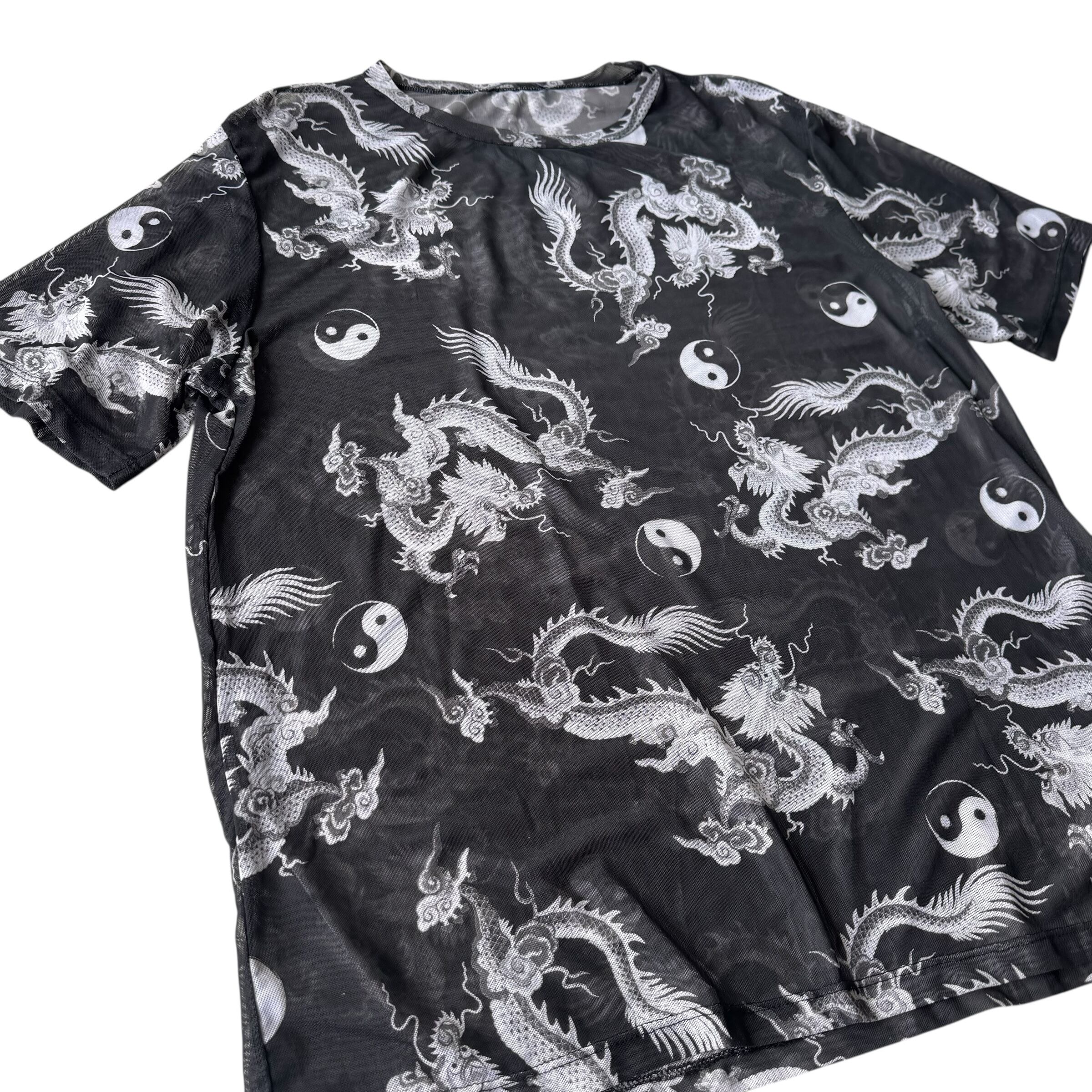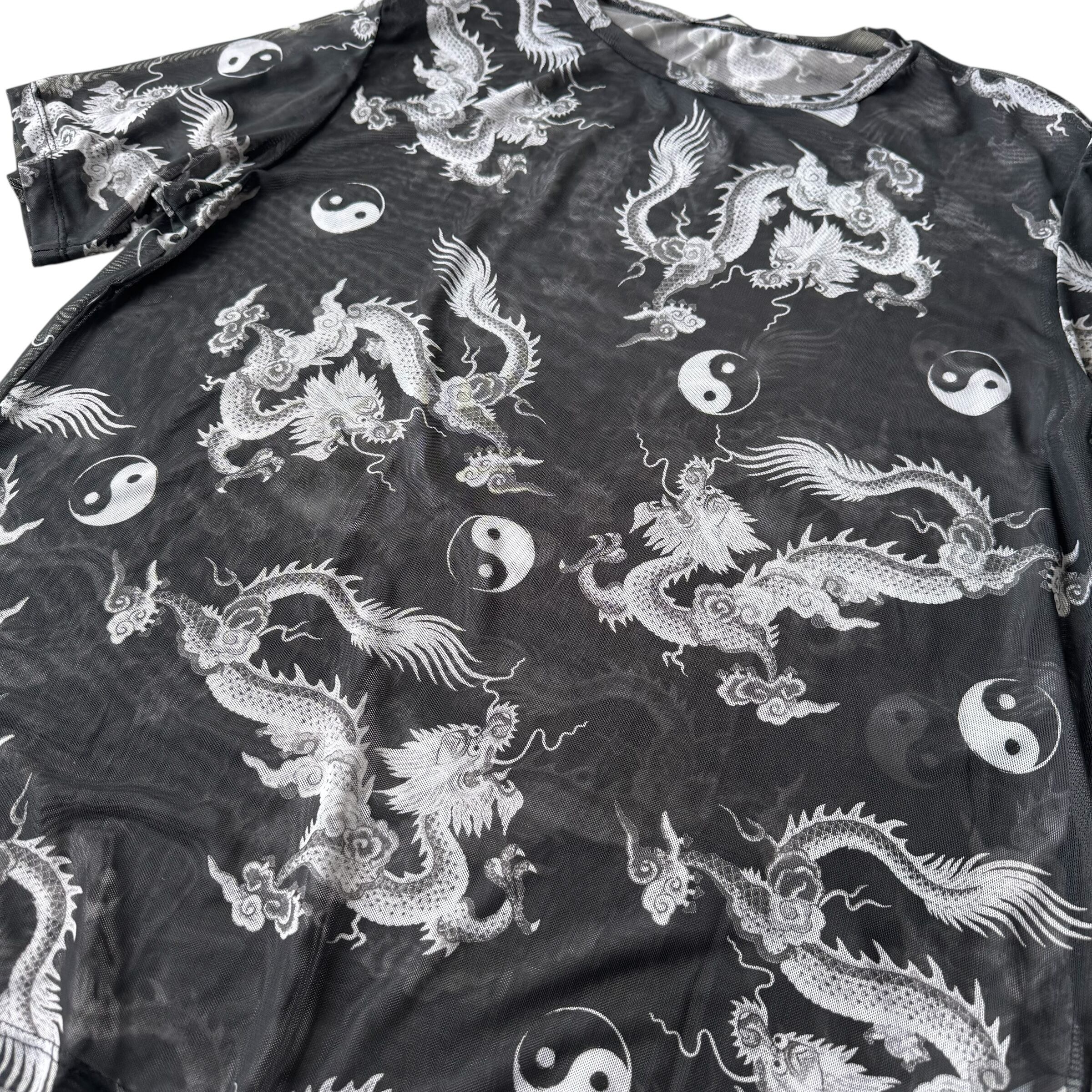 ♾ROCK♡ROSE COUTURE♾ Dragon Yin Yang Combination Design Short Sleeve Power Net size XL