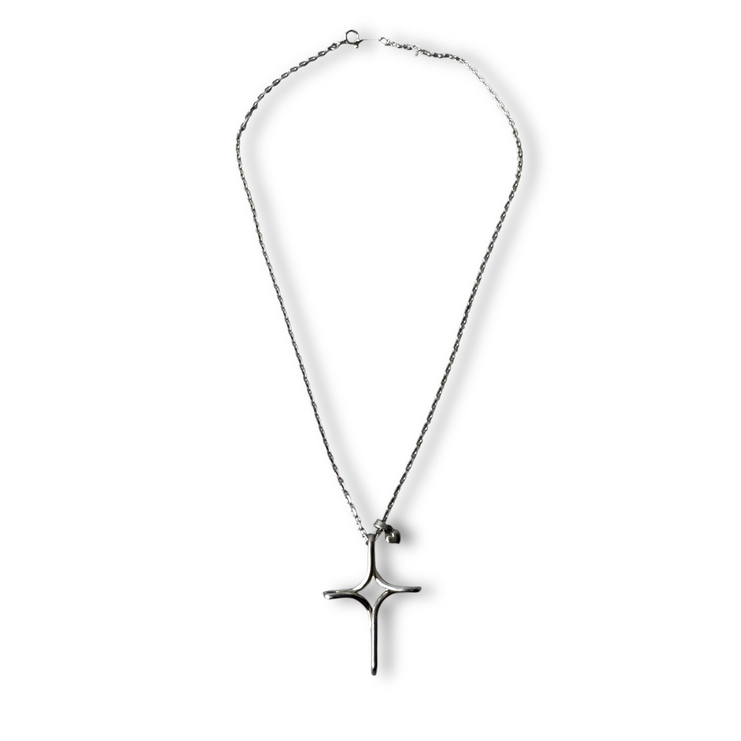 ひとつの棒を曲げて作られたクロスのトップがめちゃくちゃインパクト抜群なデザインのシルバーネックレスの入荷✨️✨️