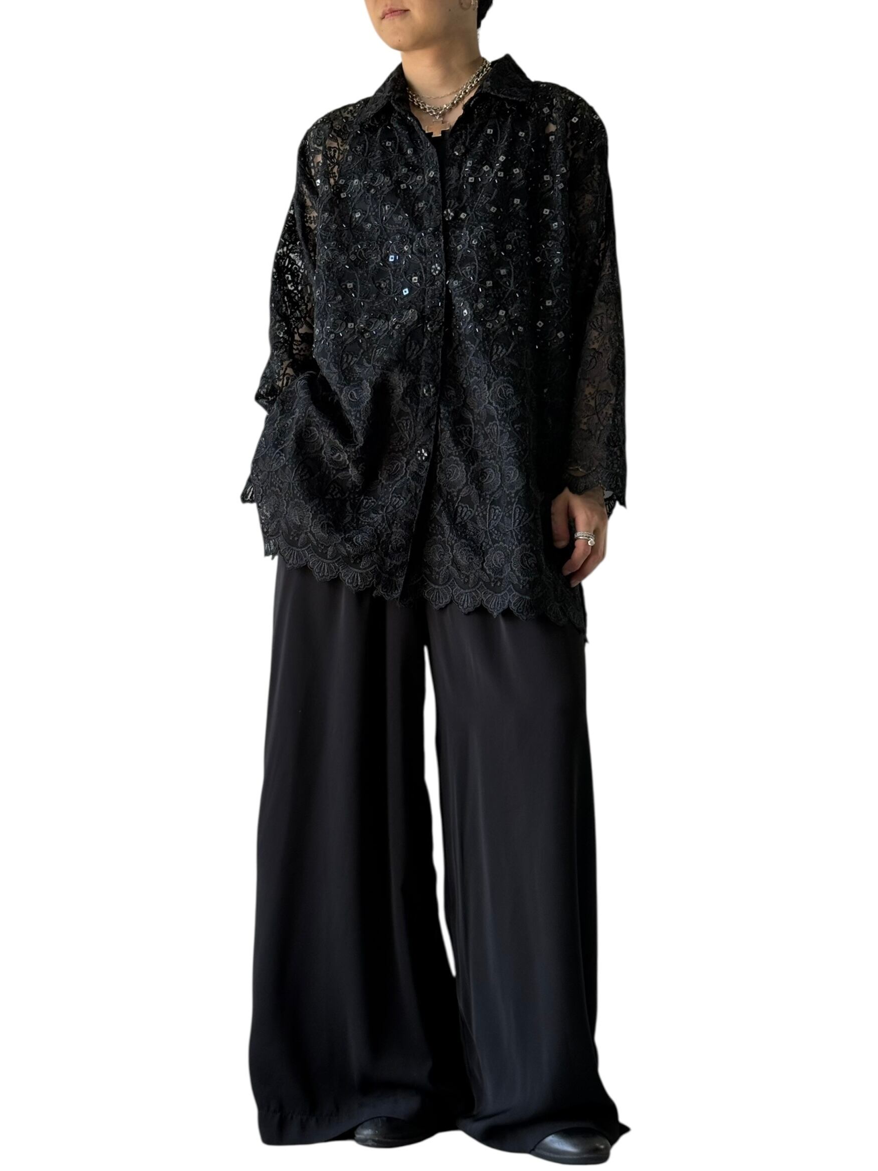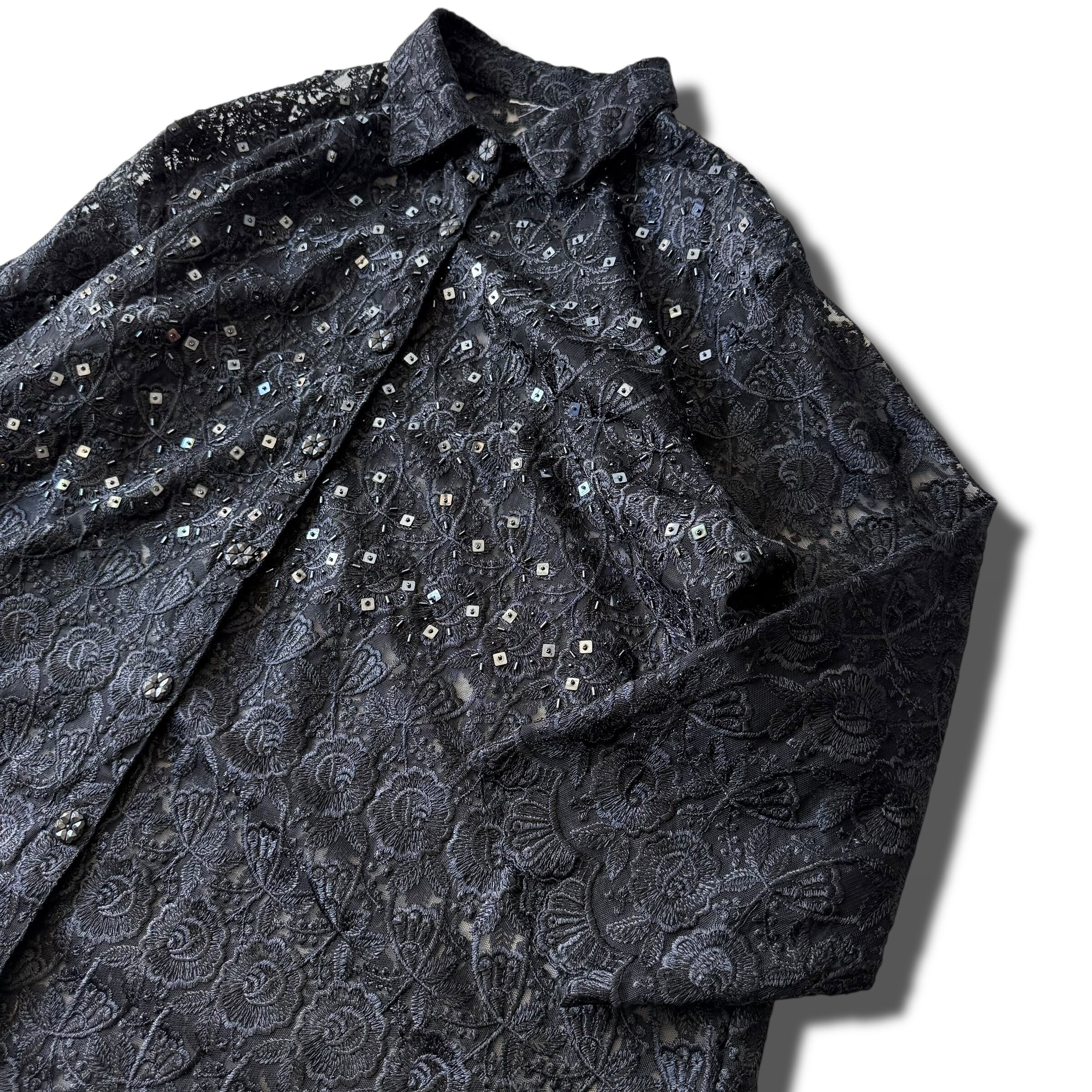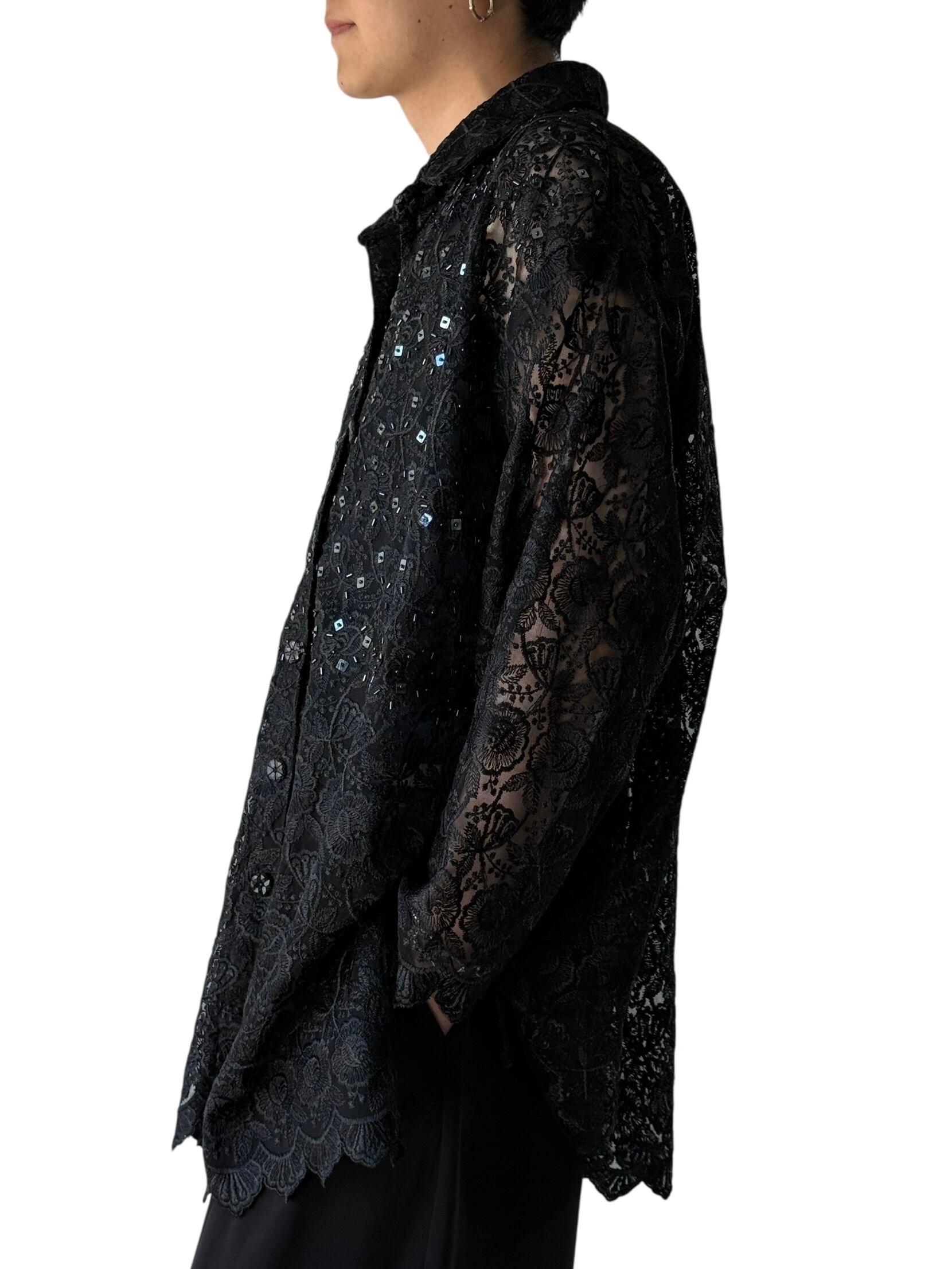 【Design used】Beaded decoration cutwork lace sheer shirt