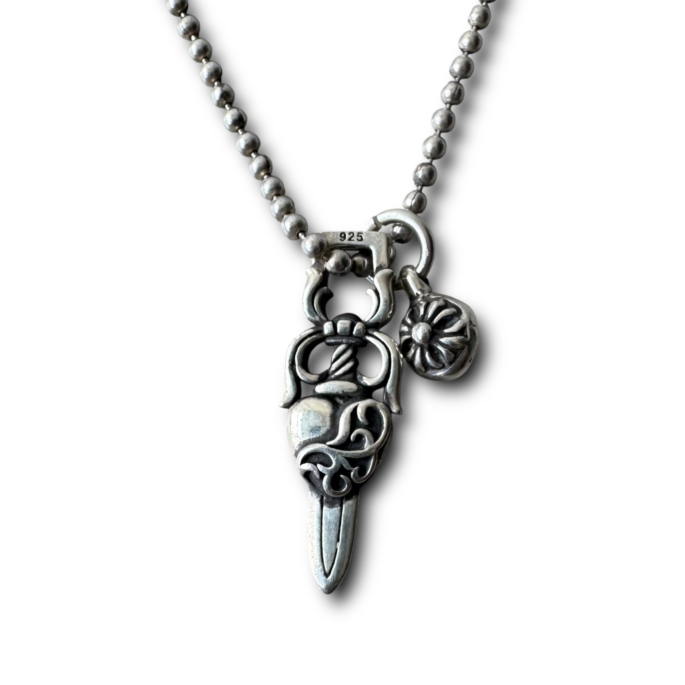 ♾vintage silver jewelry♾ dagger with cross ball motif w top design necklace sv925