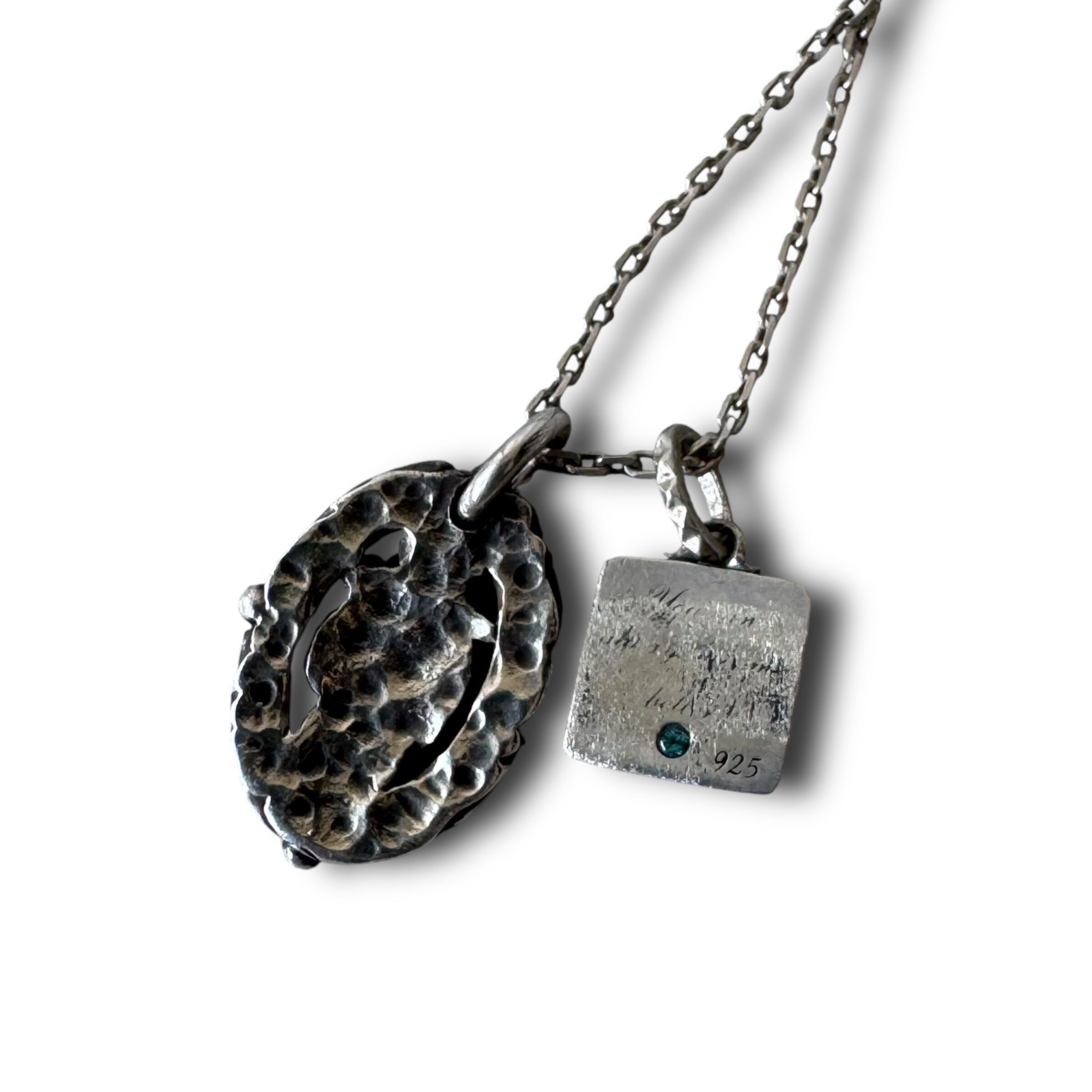 CZスカルと相性抜群のスクエアデザインの2つのチャームがクールなダブルトップデザインネックレス✨️