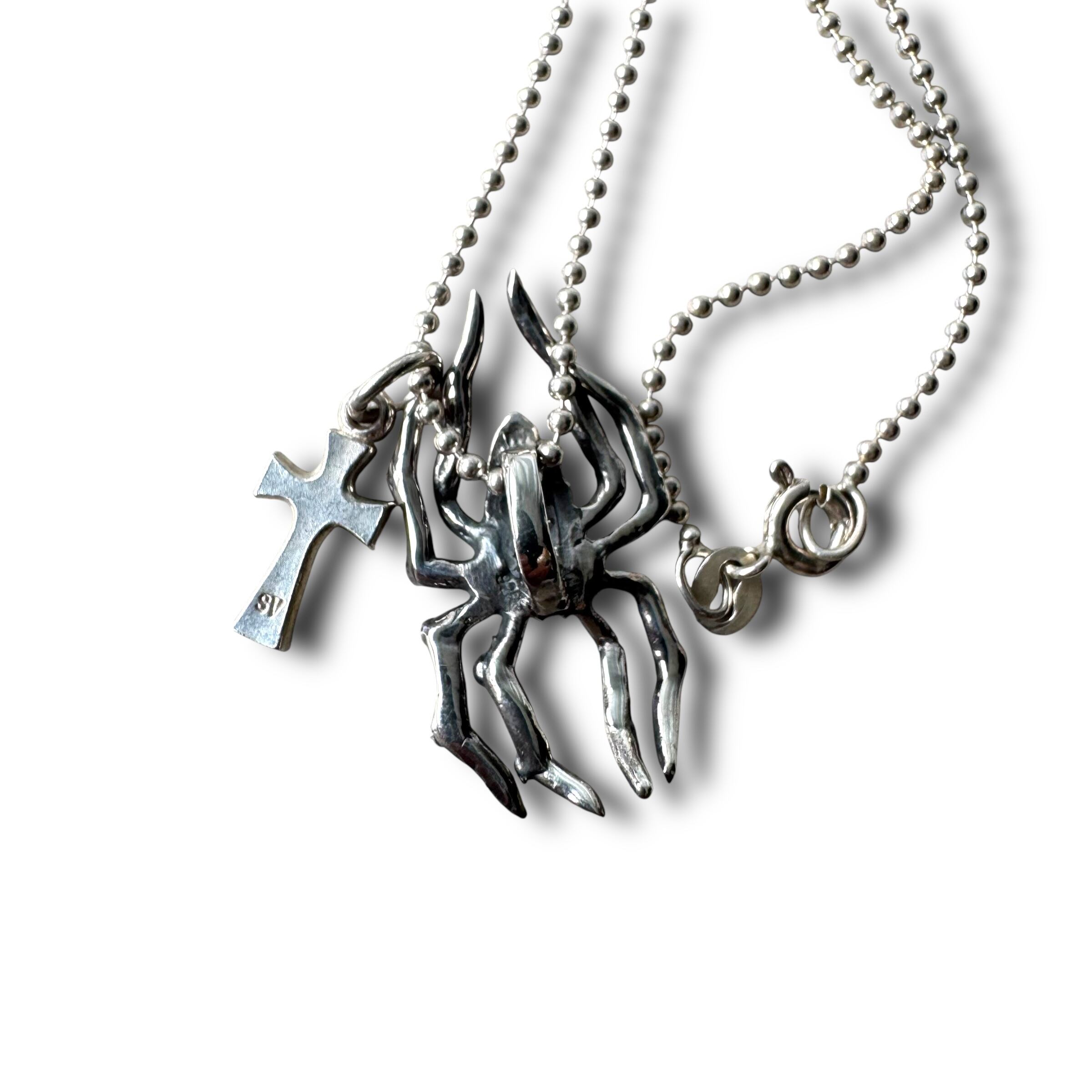 蜘蛛の体が骸骨になっているインパクト抜群なデザインのシルバーネックレスの入荷‼️‼️