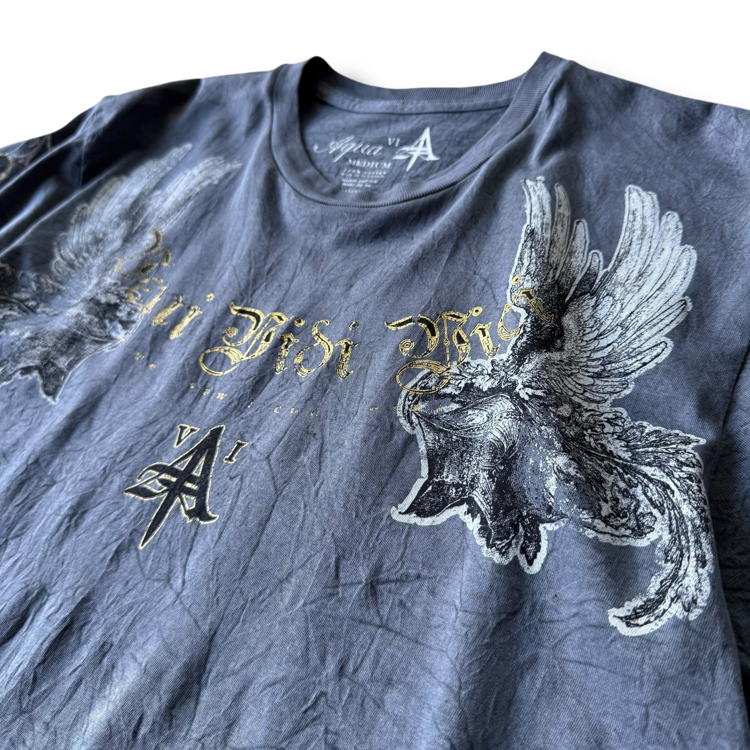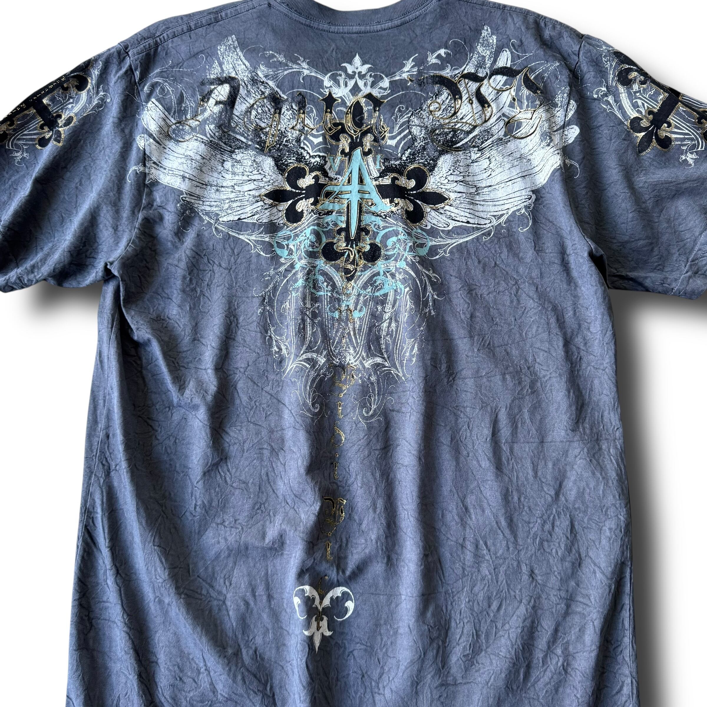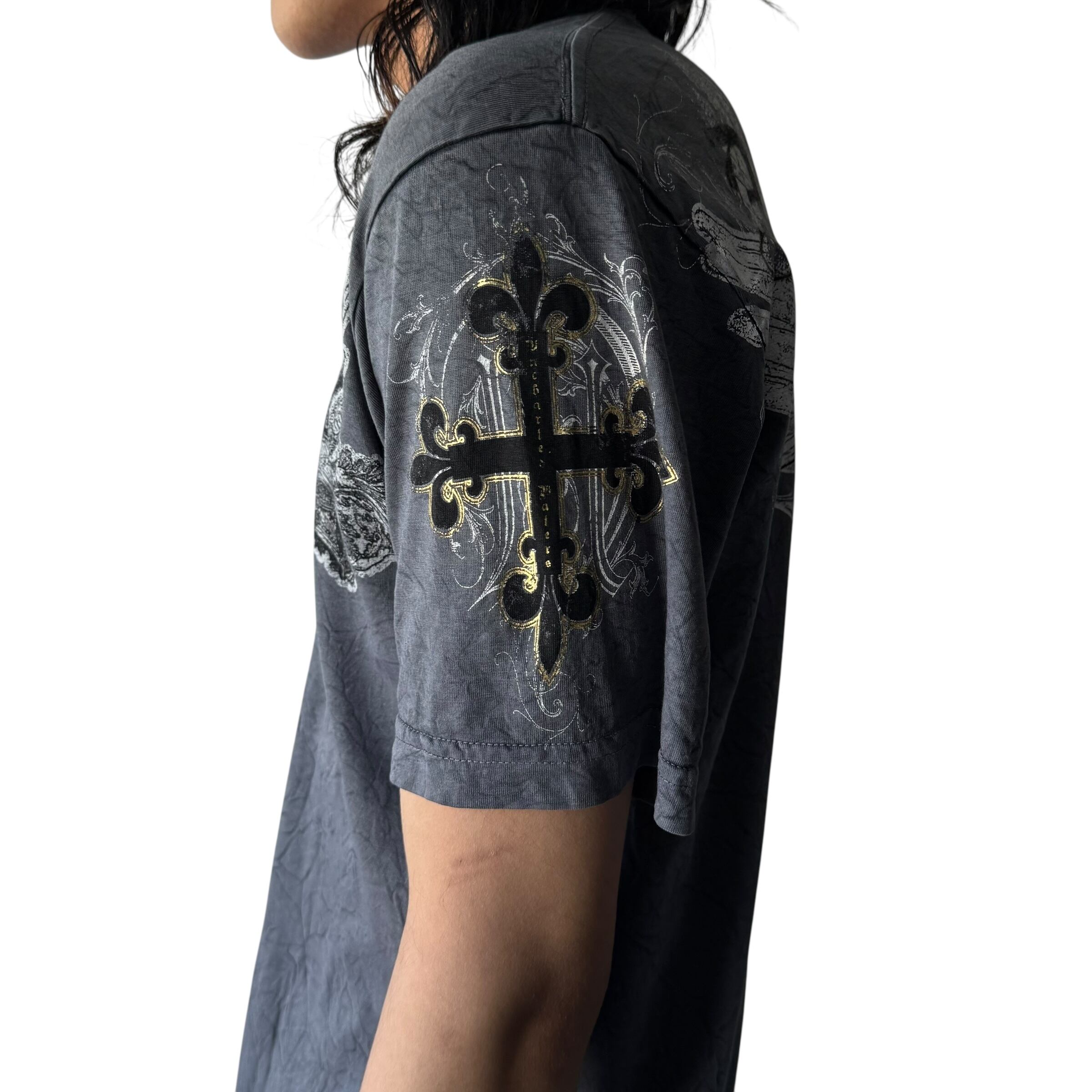 全体に施されたシワ加工にトライバルモチーフやらフレアモチーフ、翼のモチーフがインパクト抜群な目を引く直球デザインがクールな1枚◎
