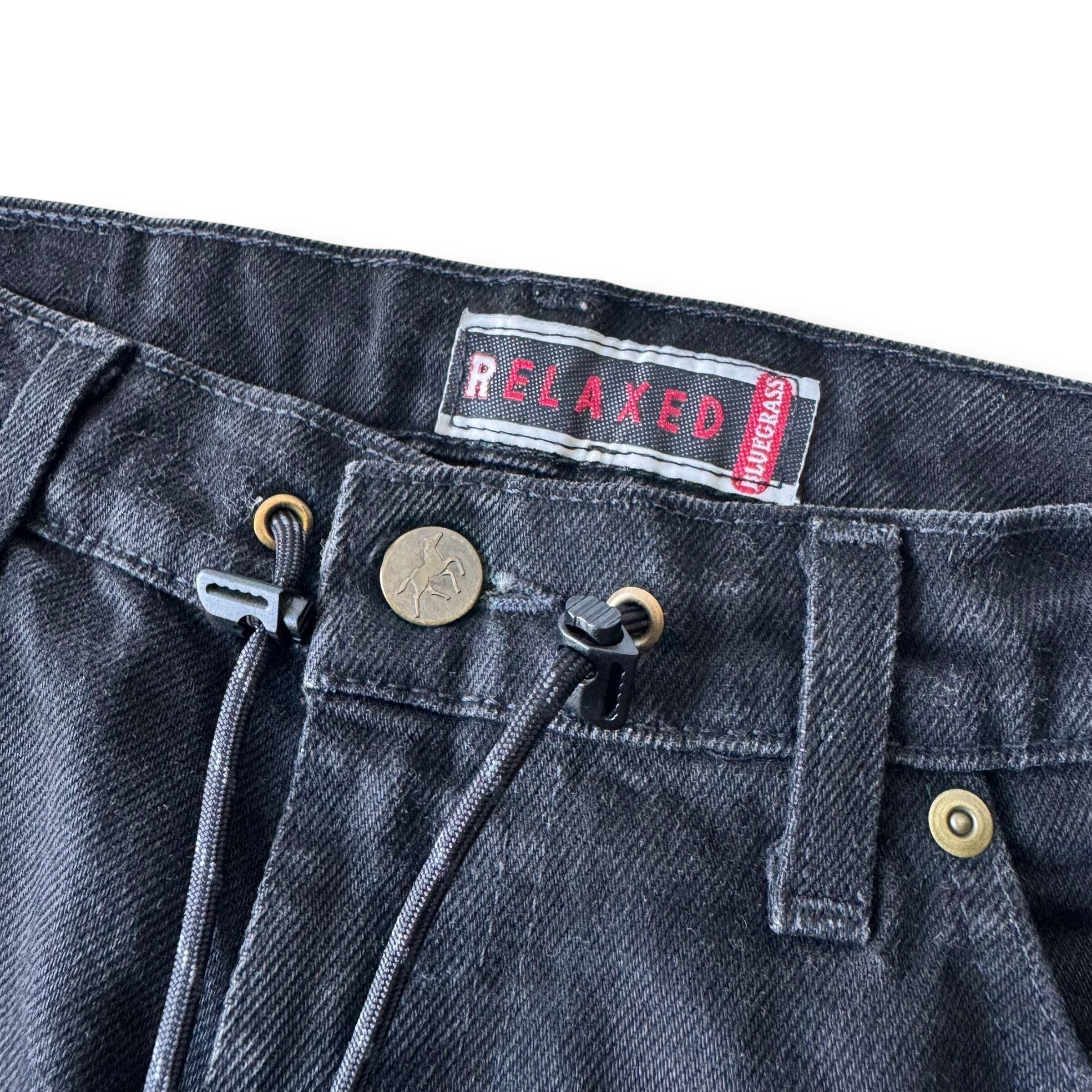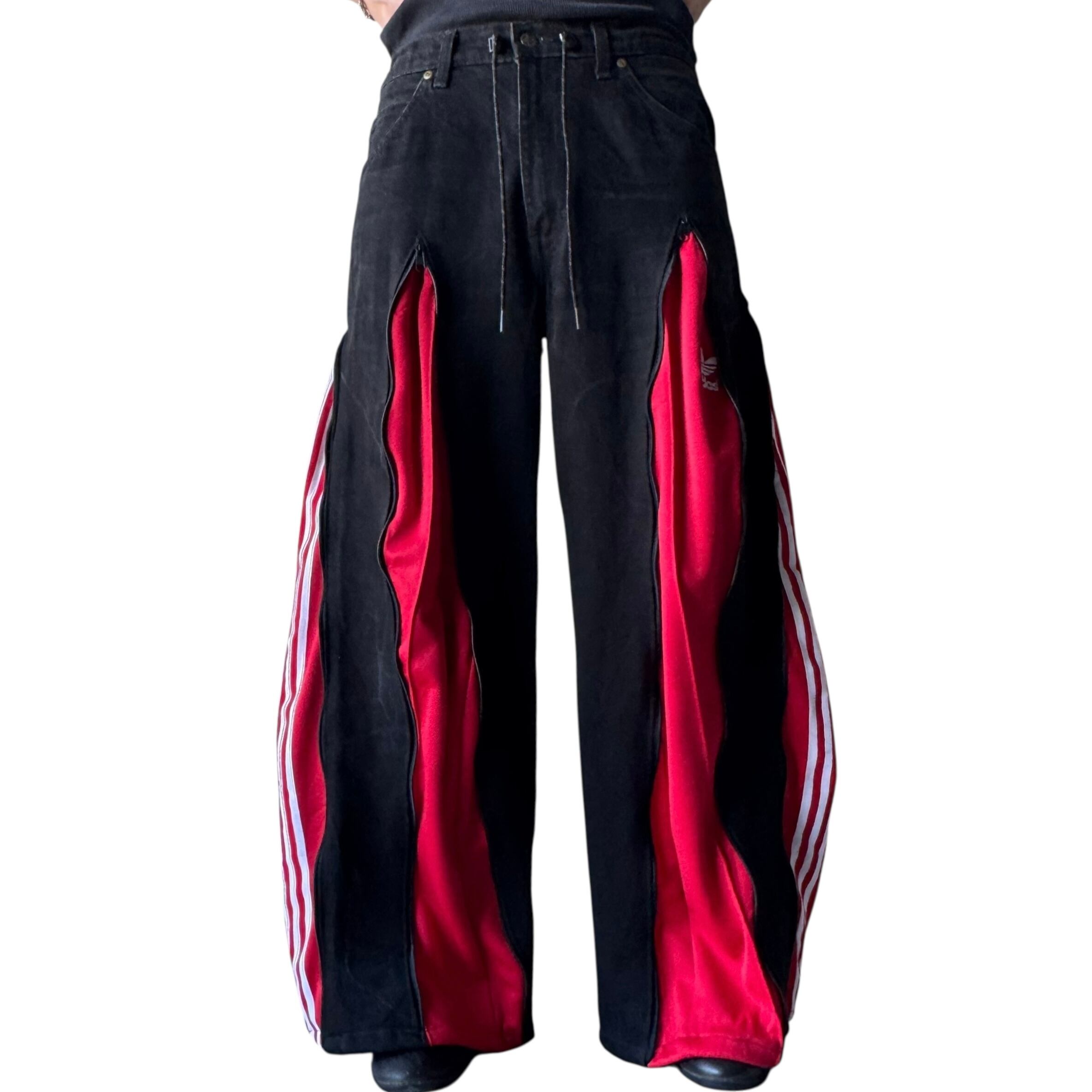 スカスカにフェードしたブラックデニムにトラックパンツをドッキングさせた極上ワイドフレアシルエットに変貌を遂げたとてつもないカスタムデザインがめちゃくちゃ映える1本‼️