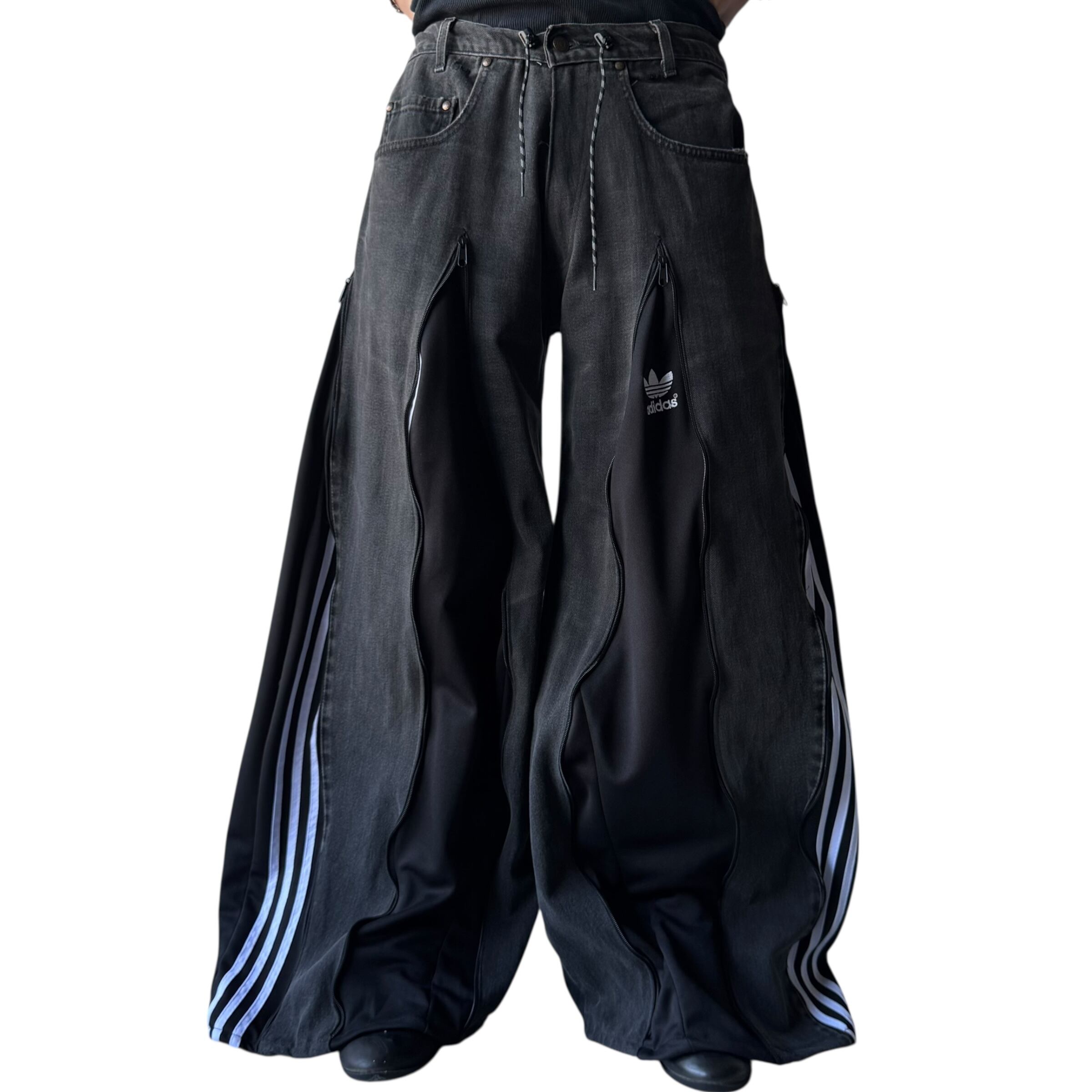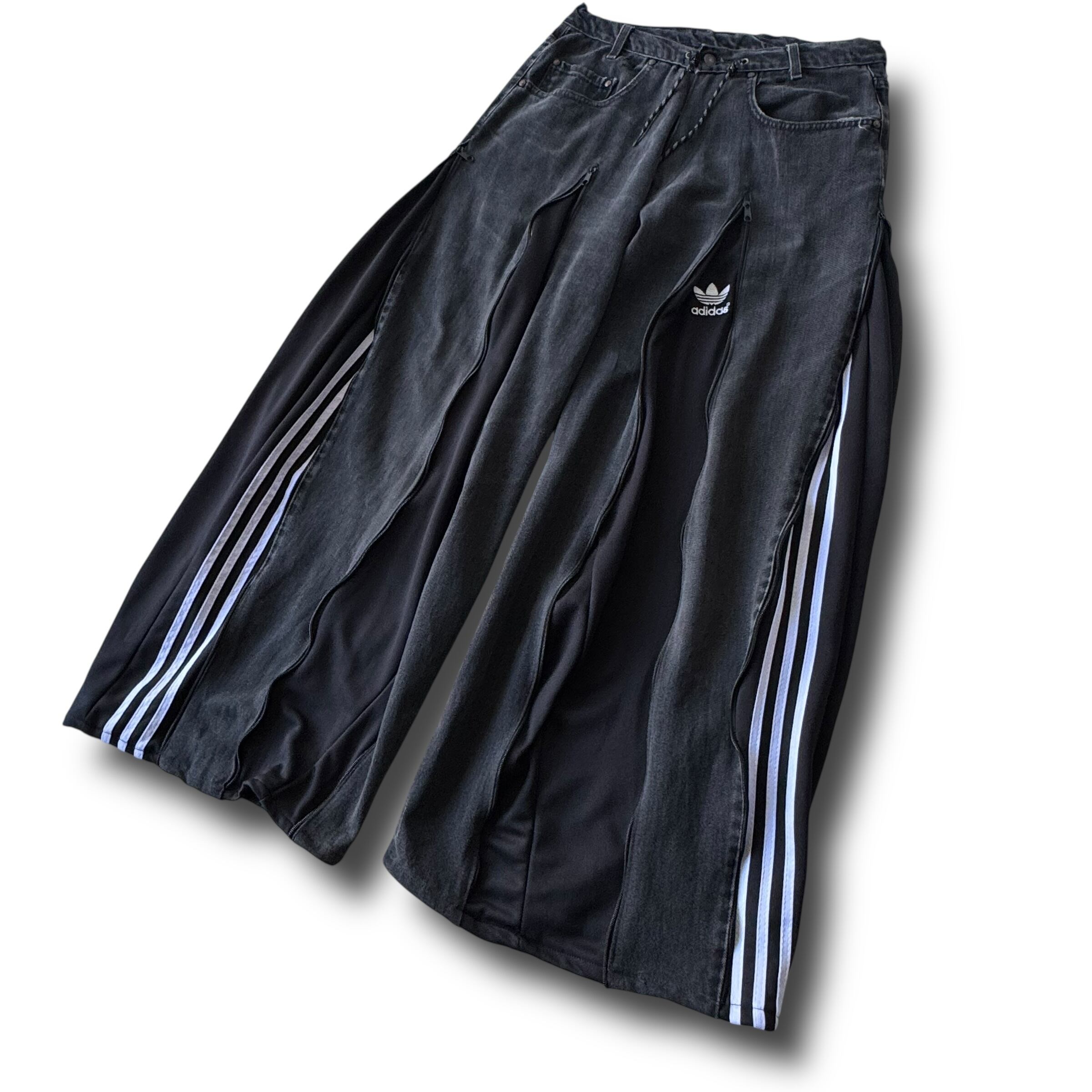 トラックパンツをドッキングさせた極上ワイドフレアシルエットに変貌を遂げたとてつもないカスタムデザインがめちゃくちゃ映える1本‼️