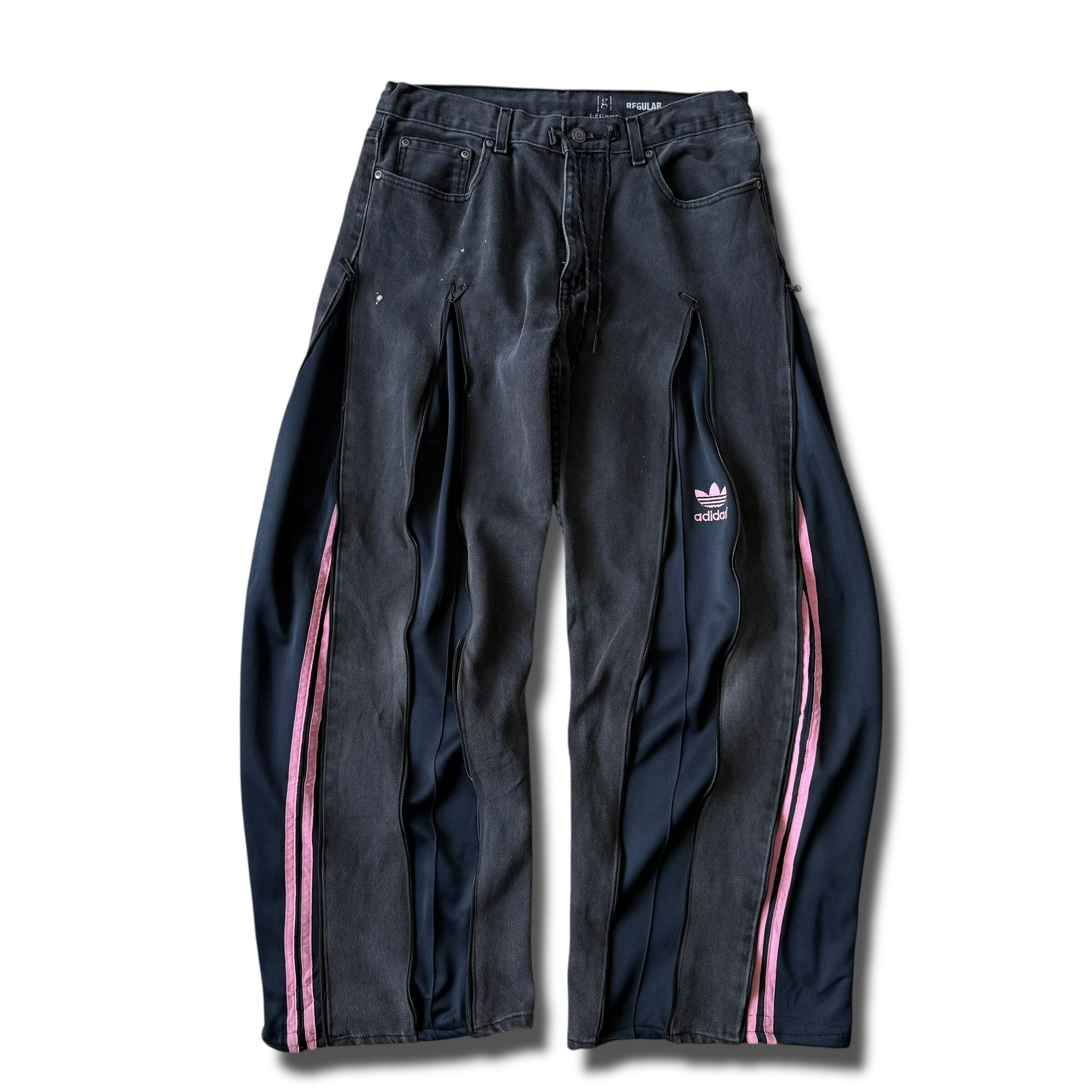 トラックパンツをドッキングさせた極上ワイドフレアシルエットに変貌を遂げたとてつもないカスタムデザインがめちゃくちゃ映える1本‼️