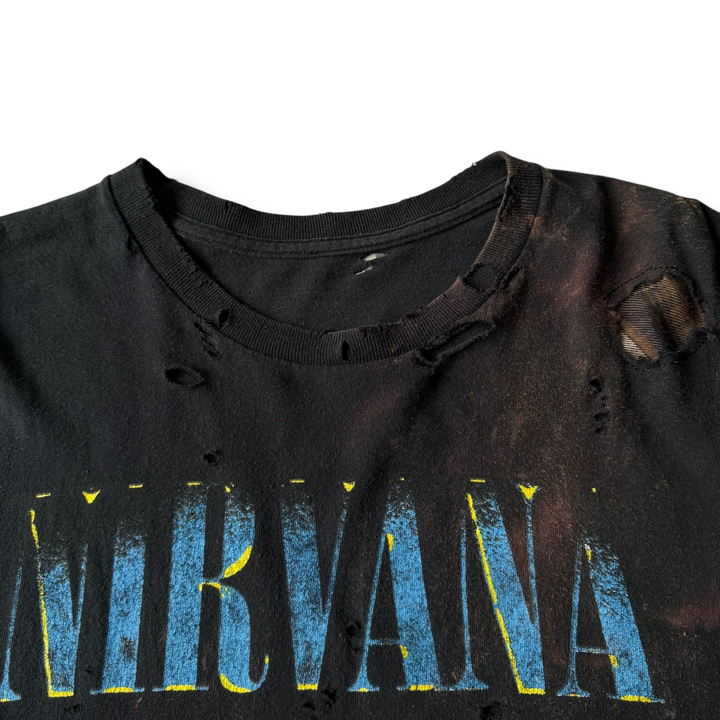 ♾original remake♾ "NIRVANA" smiley motif grunge fade design t sizeXL