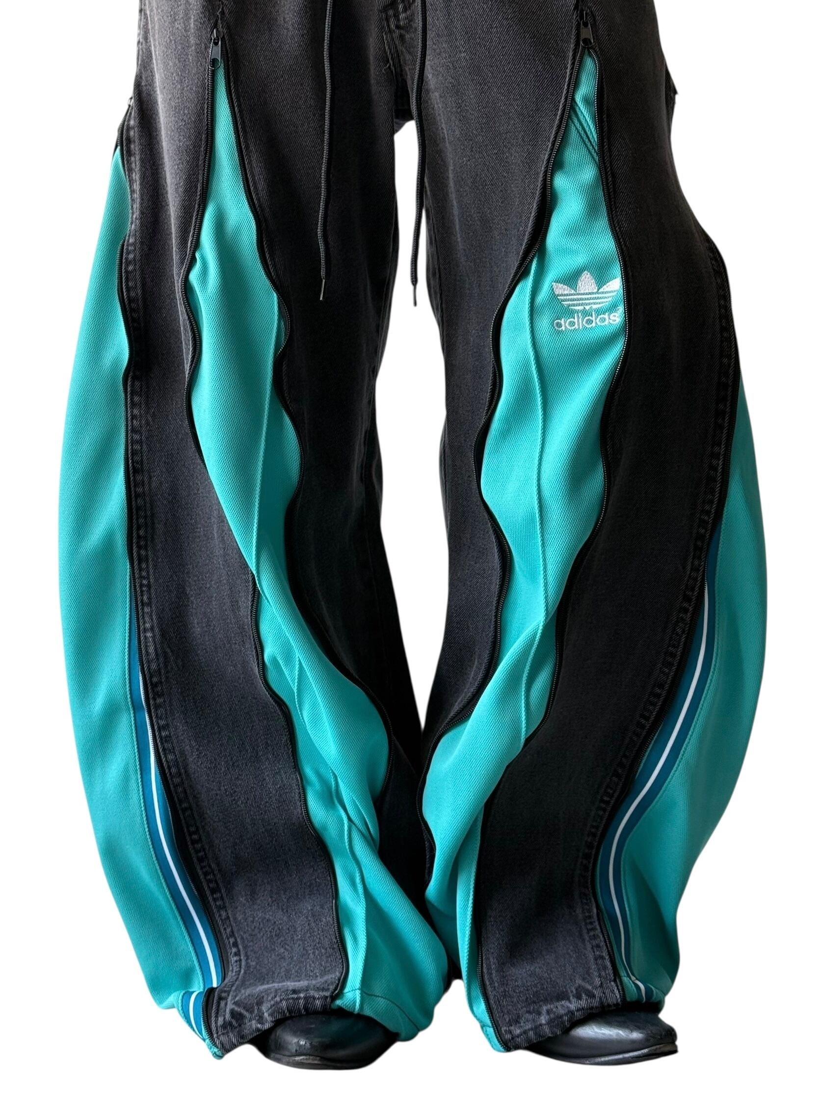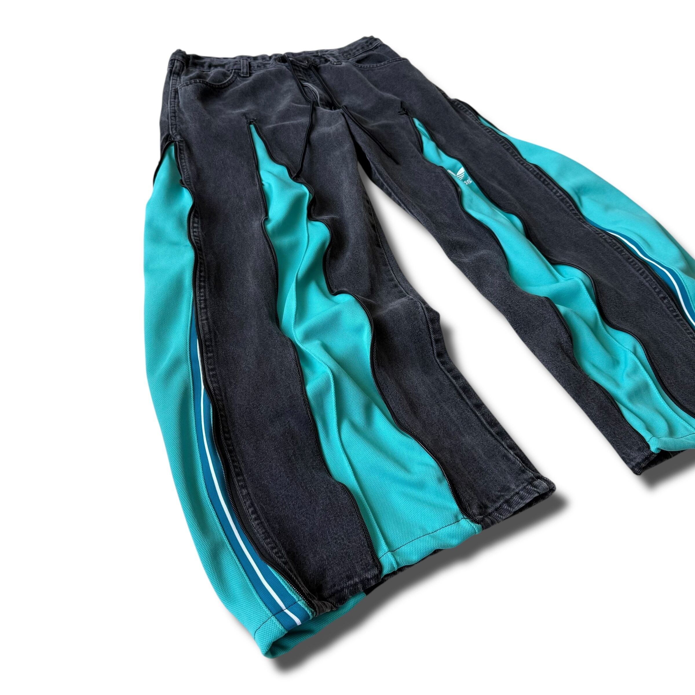 トラックパンツをドッキングさせたような極上ワイドフレアシルエットに変貌を遂げたとてつもないカスタムデザインがめちゃくちゃ映える1本‼️