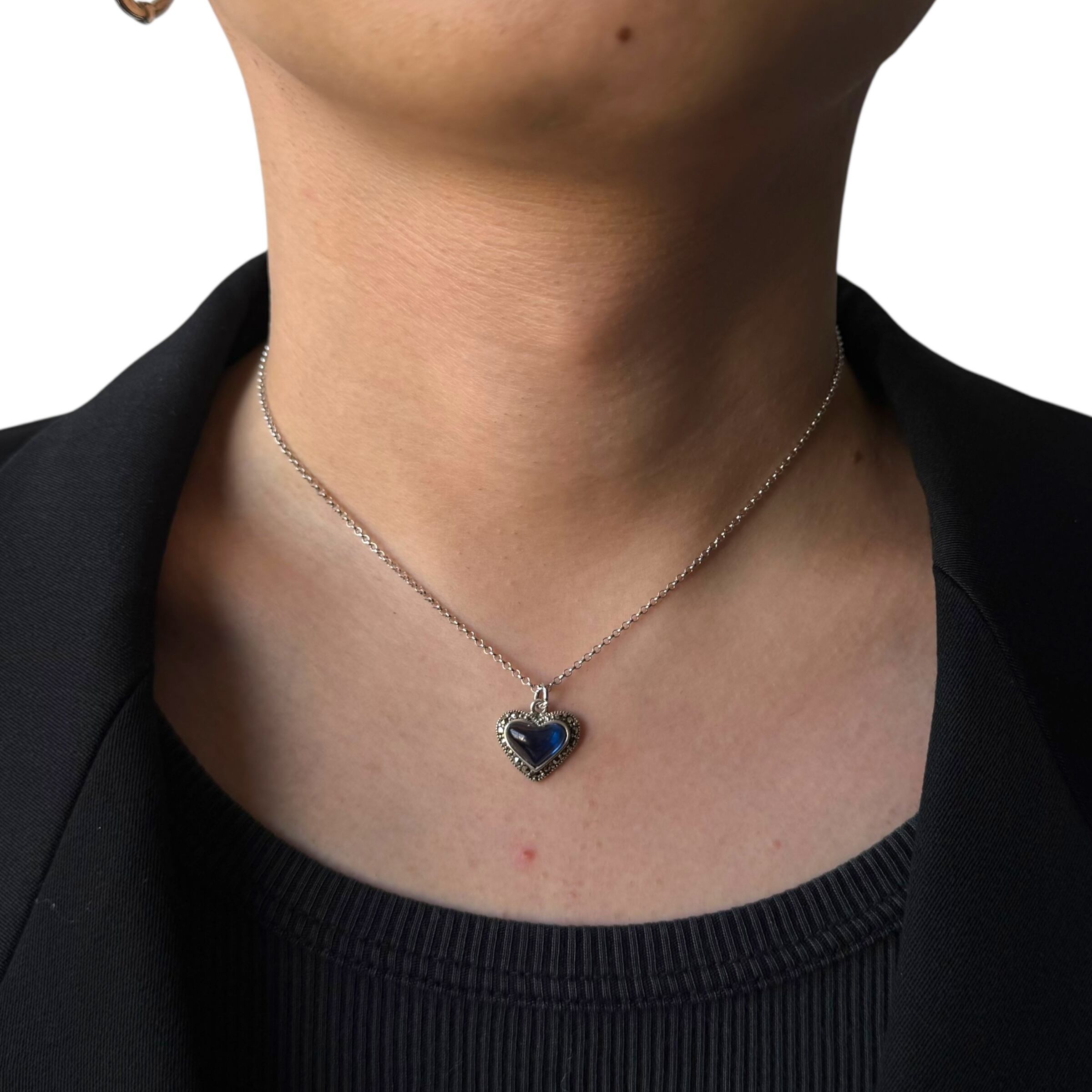 ♾ Vintage silver jewelry♾ blue stone heart design silver necklace sv925