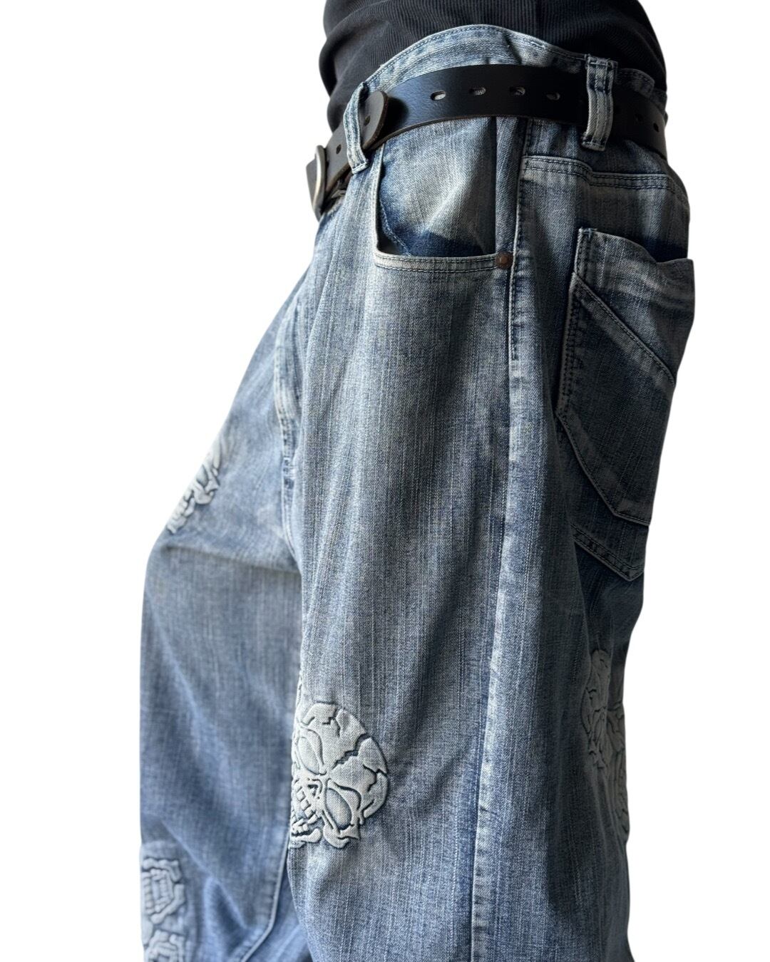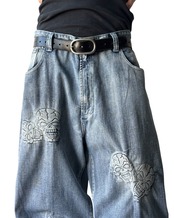 ♾XO JEANS♾ emboss skull washed design wide buggy denim pants