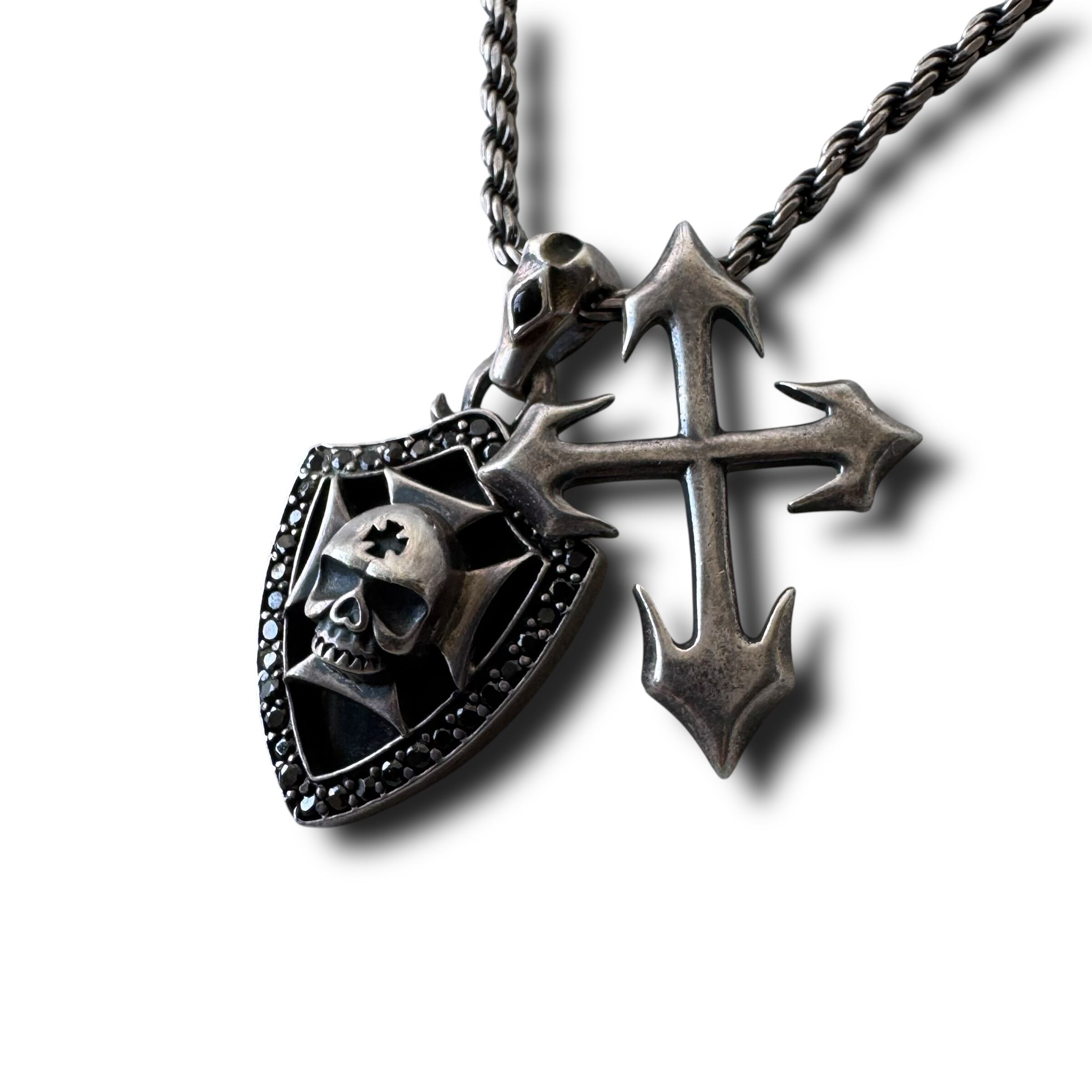 いかつめクロスと、盾のような形にアイアンクロスとスカルが立体的にデザインされているgoodデザイン✨️✨️
