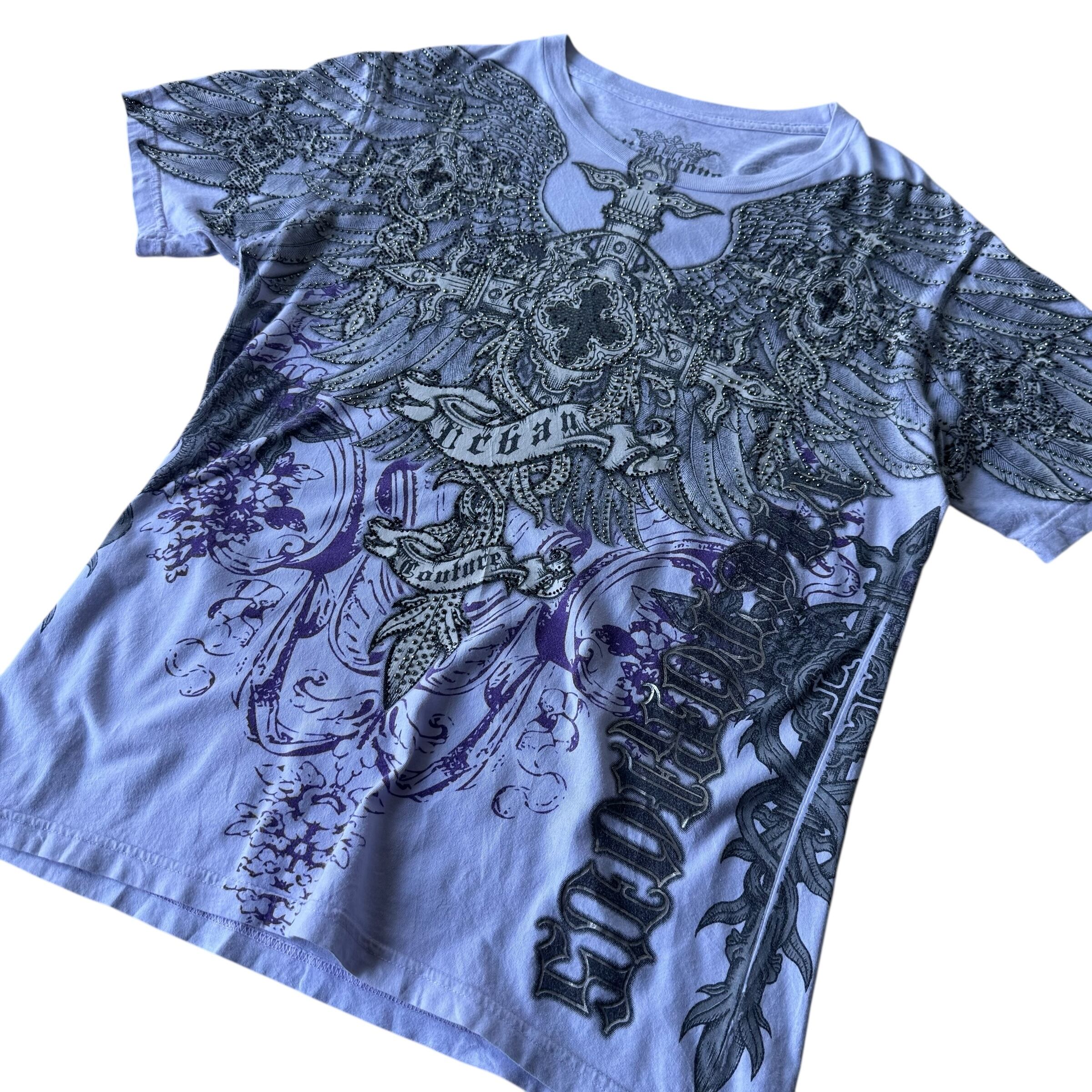♾ Victorious ♾ Feather cross design rhinestone glittering T-shirt size LARGE