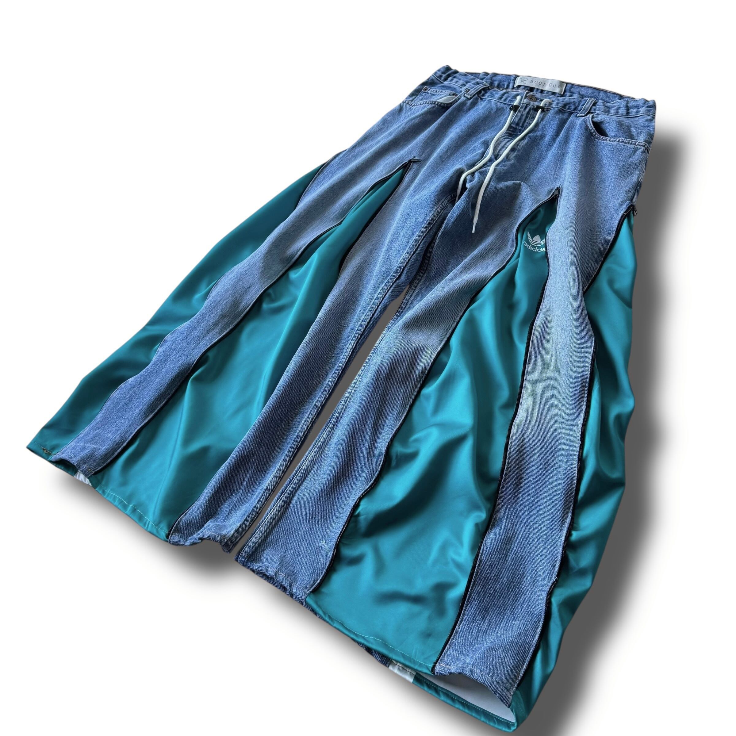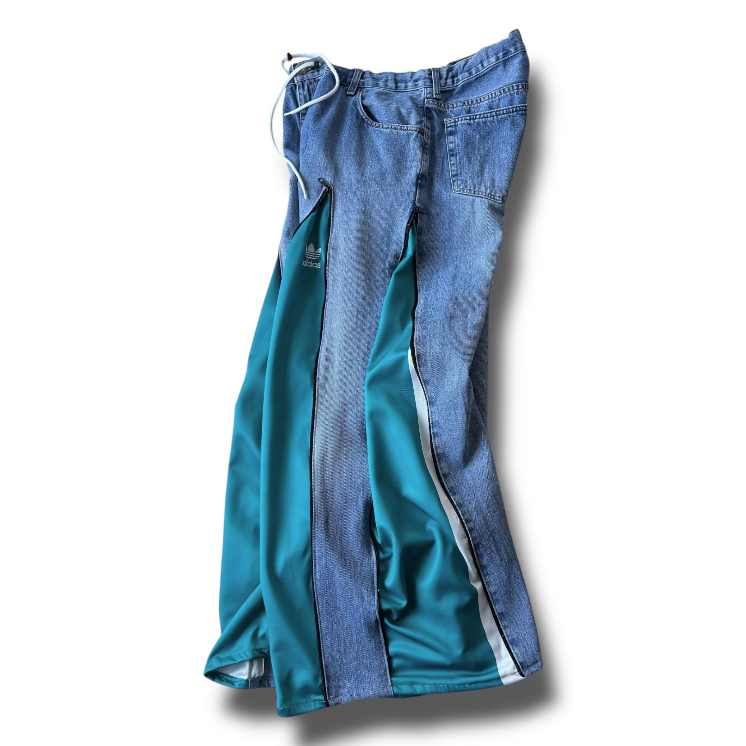 adidasのトラックパンツをドッキングさせた極上ワイドフレアシルエットに変貌を遂げたとてつもないカスタムデザインがめちゃくちゃ映える1本‼️