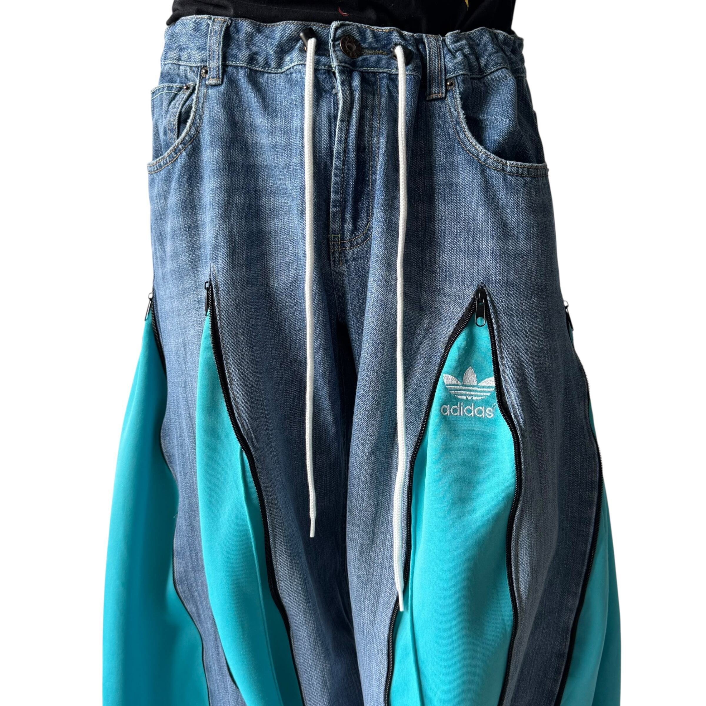 トラックパンツをドッキングさせた極上ワイドフレアシルエットに変貌を遂げたとてつもないカスタムデザインがめちゃくちゃ映える1本‼️
