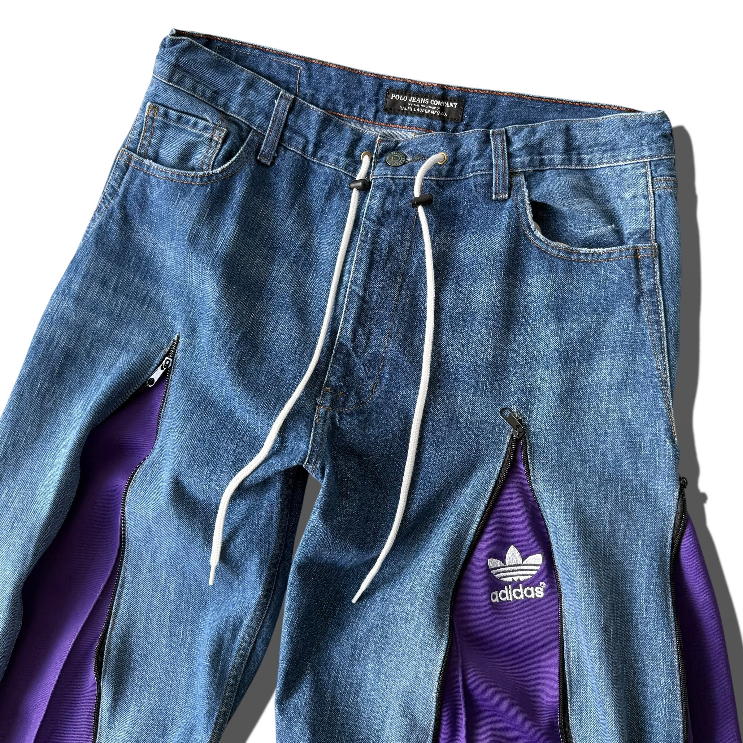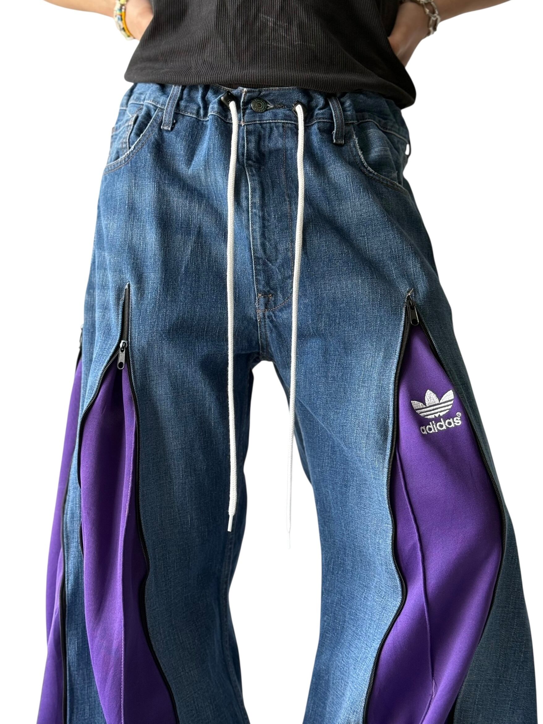 ブルーデニムにパープルジャージとパイピングデザインがめちゃくちゃ映える1本‼️