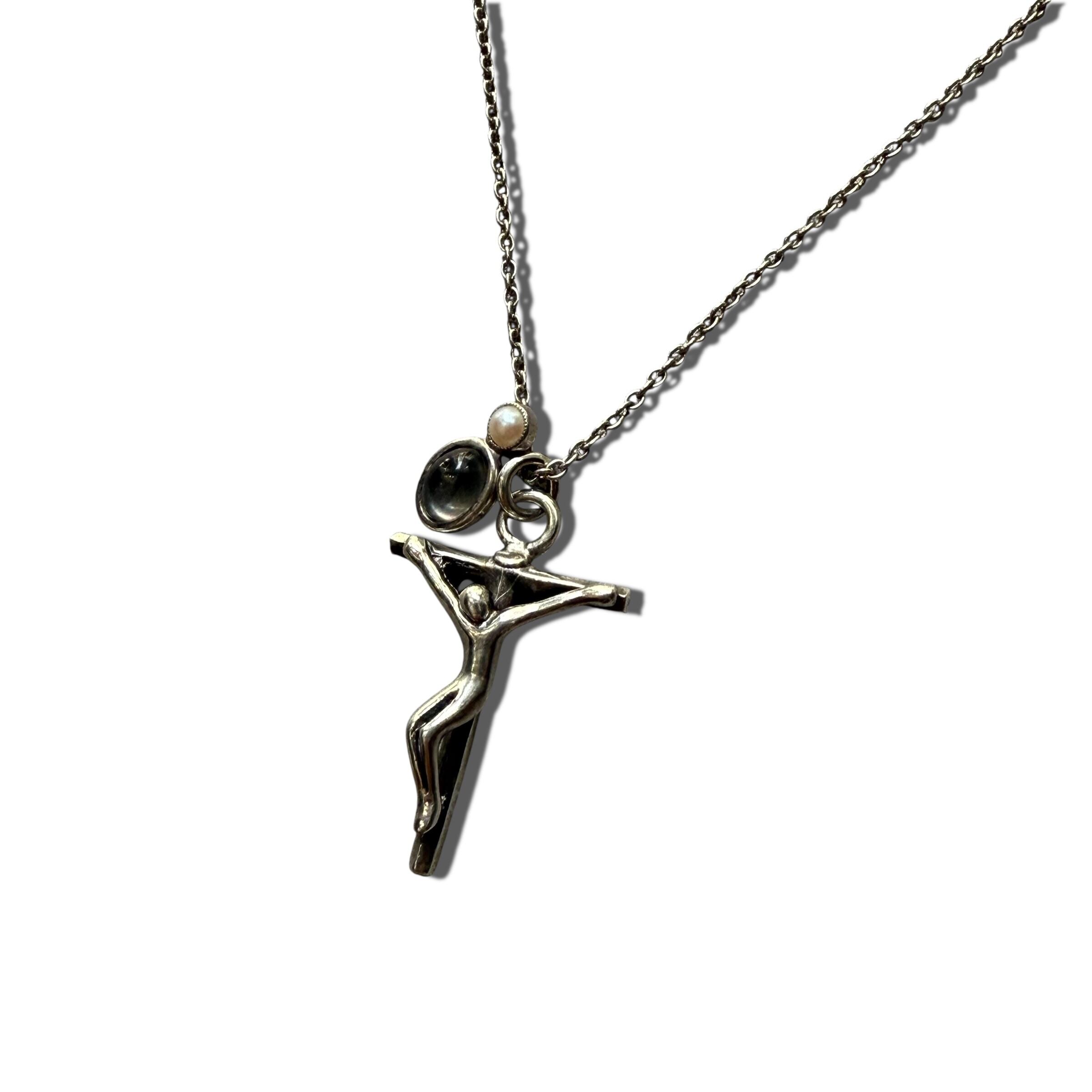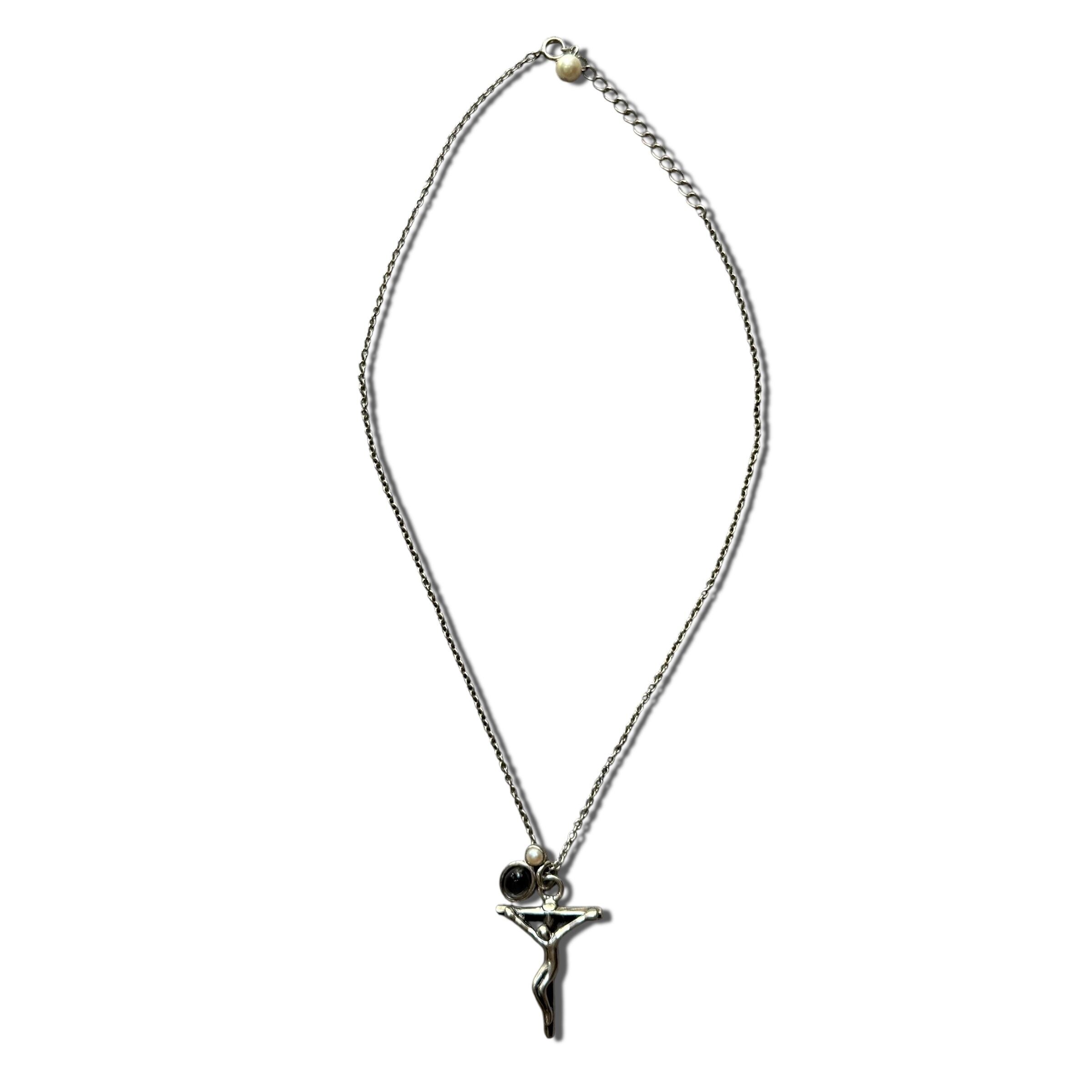 【Sterling silver】 sv925 vintage Cross stone double top necklace