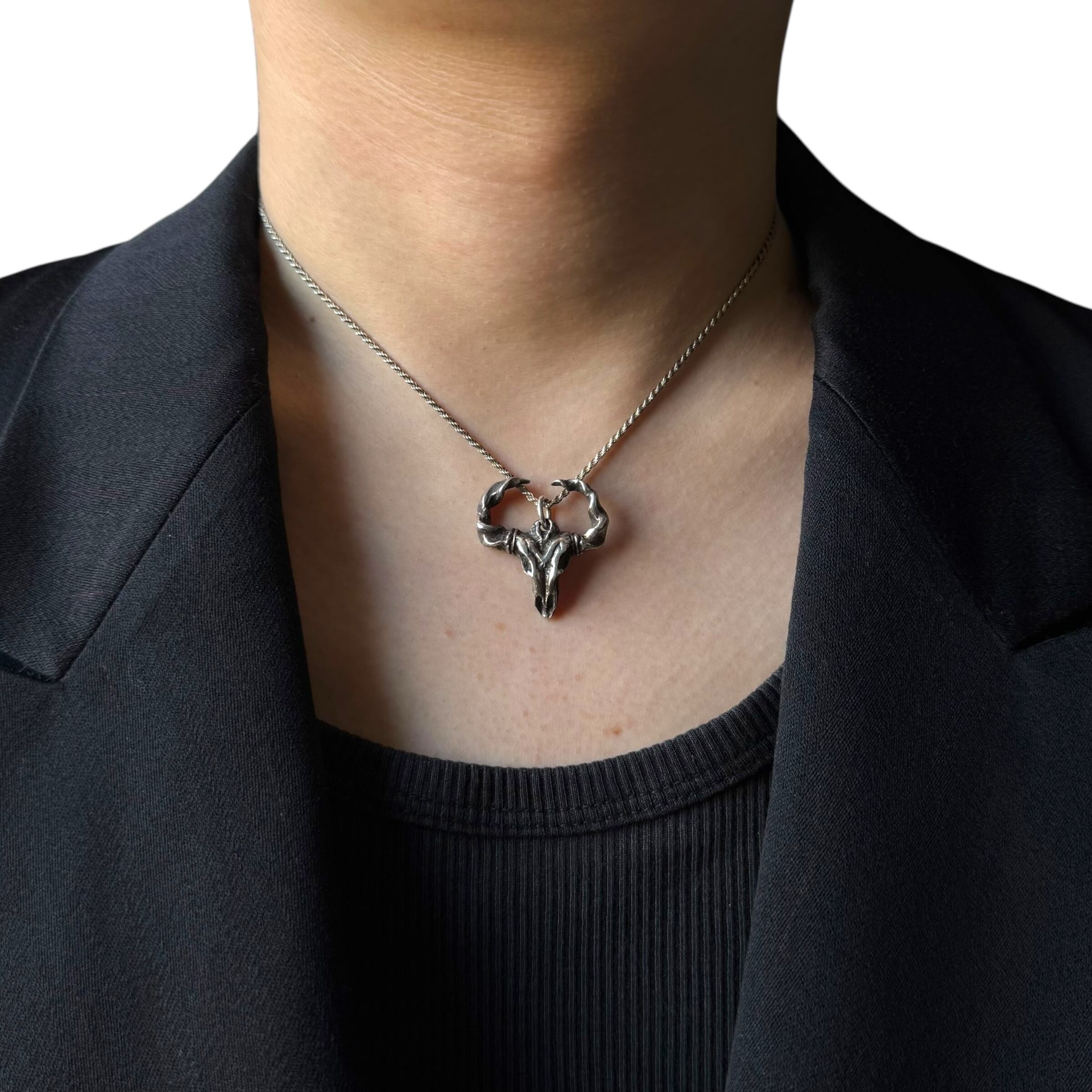 ゴーストスカルモチーフの悪魔的モチーフが尖ったデザインペンダントトップネックレス✨️