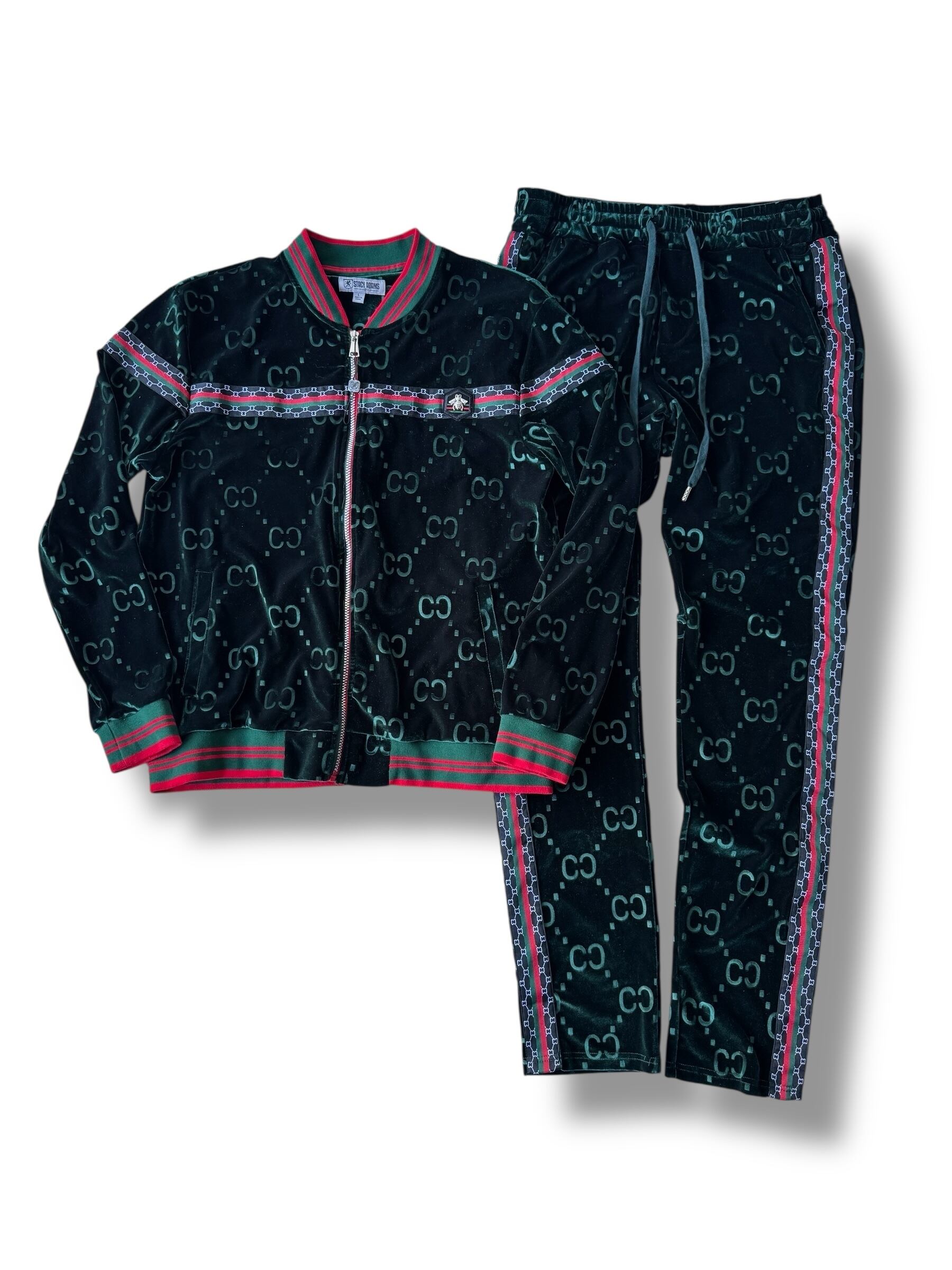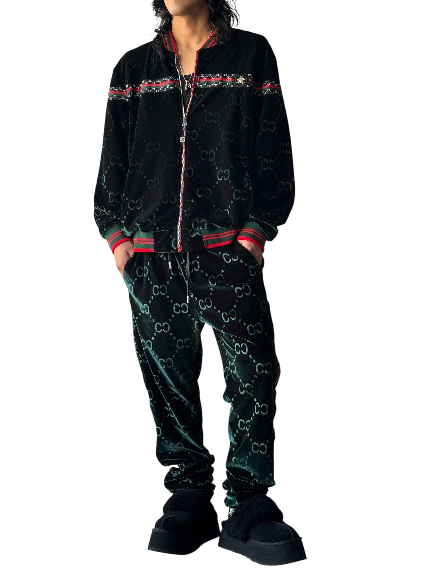 ‼️SPECIAL‼️♾️STACY ADAMS♾ CC monogram patterned design velours track set up sizeL