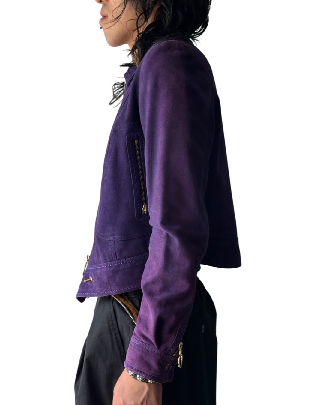 ばりお洒落なパープルが目を惹く70’sデザインをスエードで表現したショート丈ジャケット‼︎