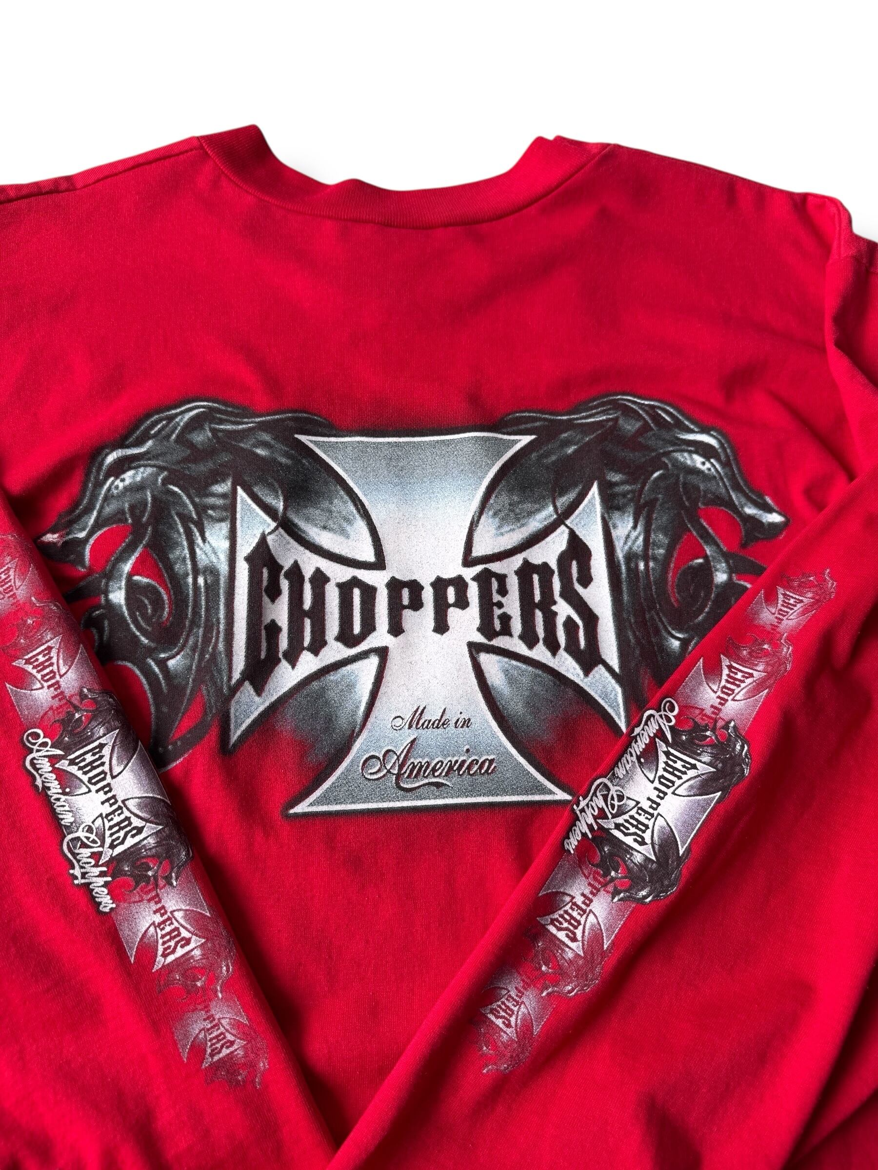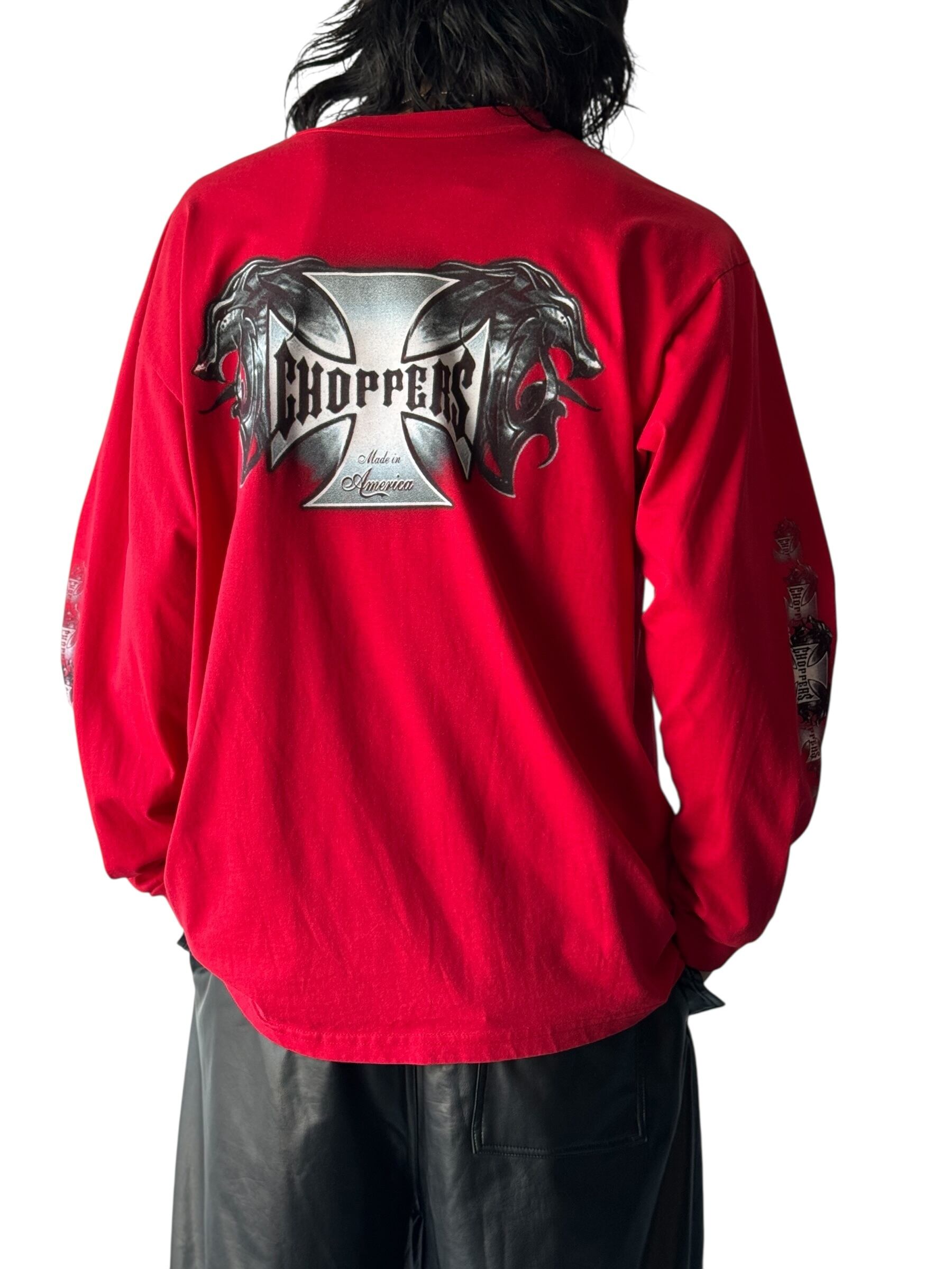 ♾ CHOPPERS MADE IN AMERICA ♾ Lion×iron cross motif design long sleeve sizeXL