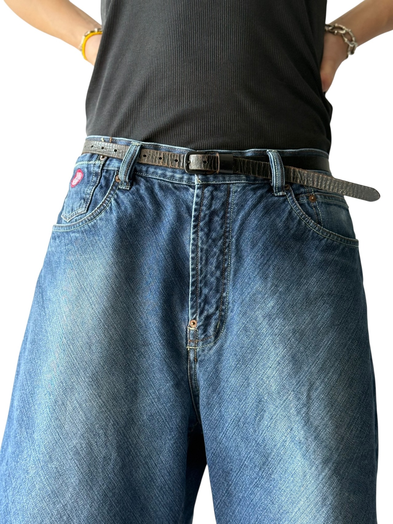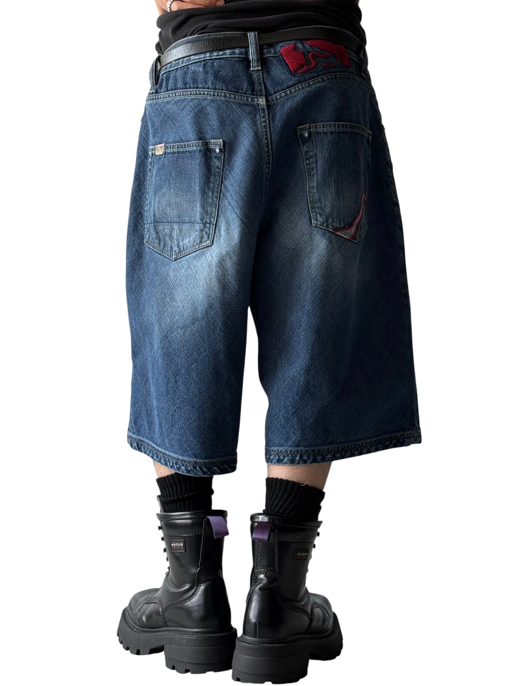 【DRUNKNMUNKY】 design wide denim baggy shorts