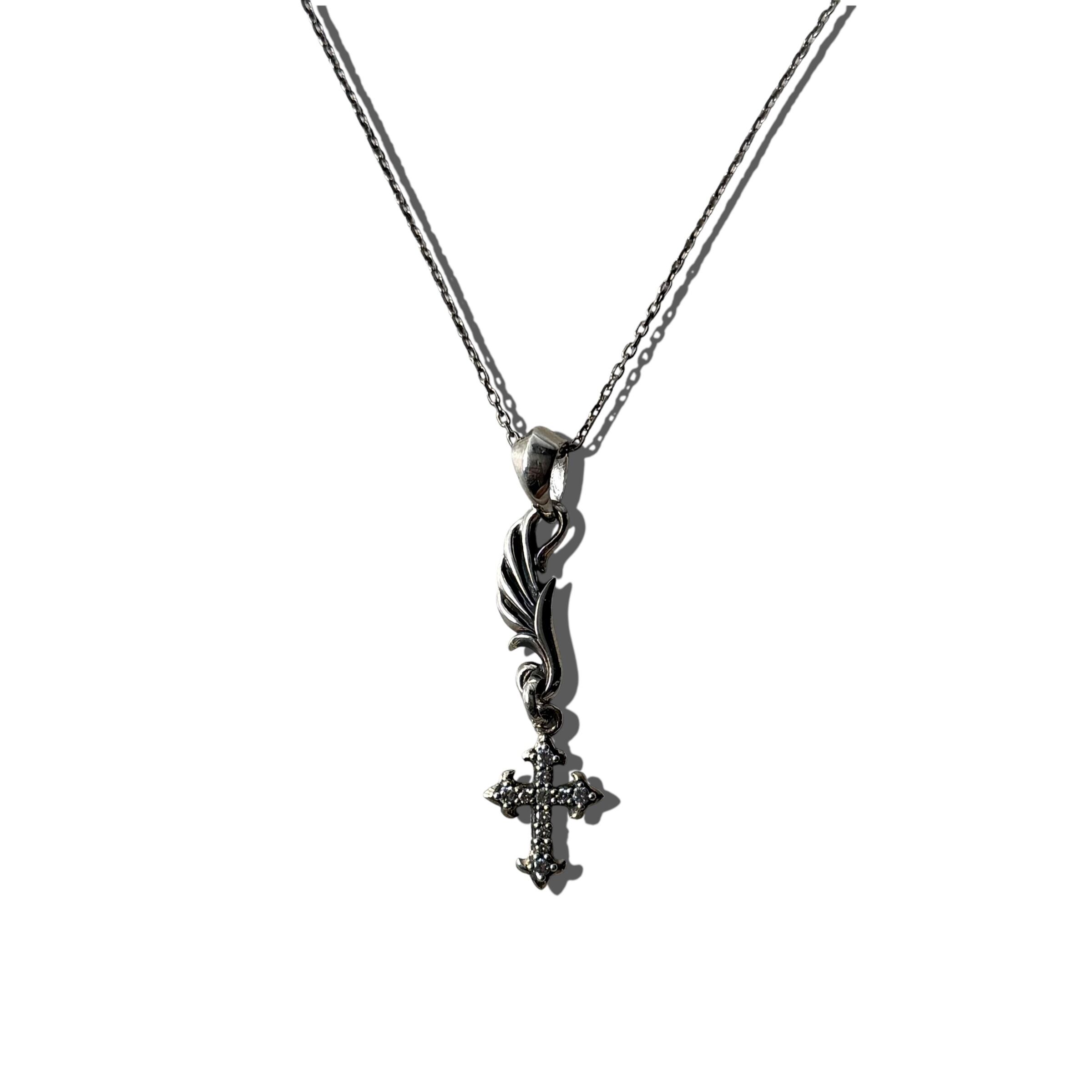 【Sterling silver】 sv925 vintage clear stone set Cross feather top necklace
