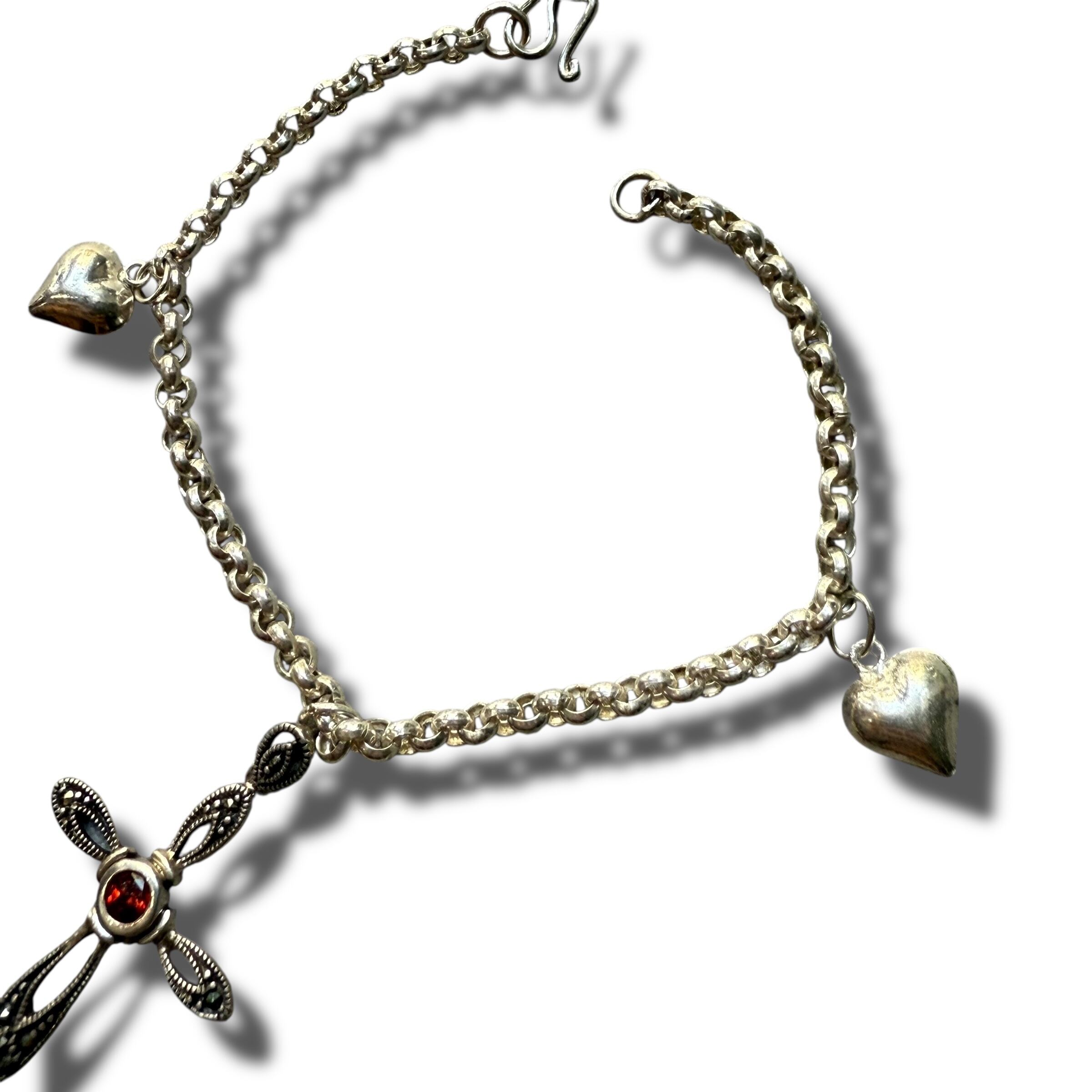 クロスのチャームモチーフと立体的ベビーハートが揺れるデザインシルバーブレスレット‼️