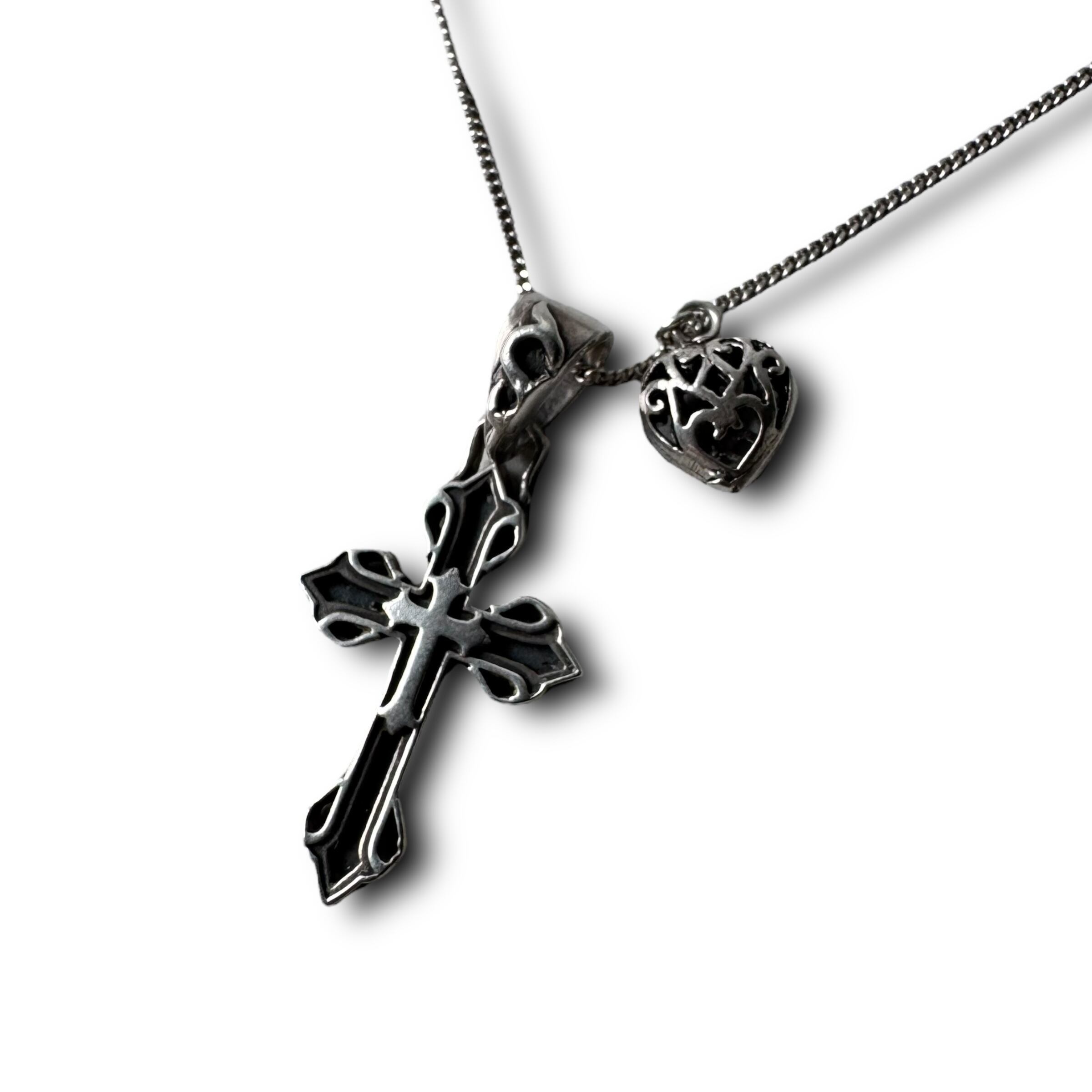 ♾vtg sv jewelry♾ cross with heart motif w top design necklace sv925