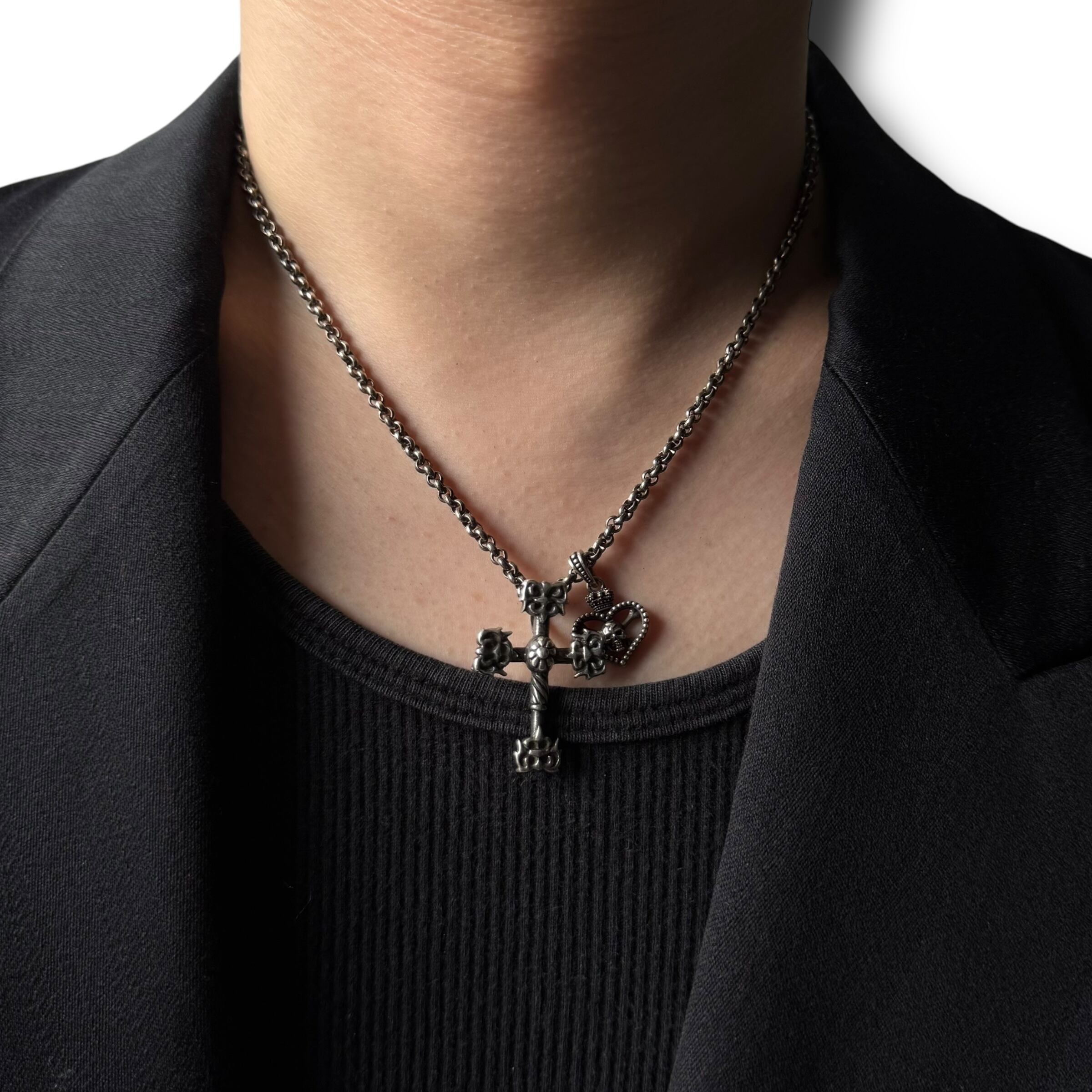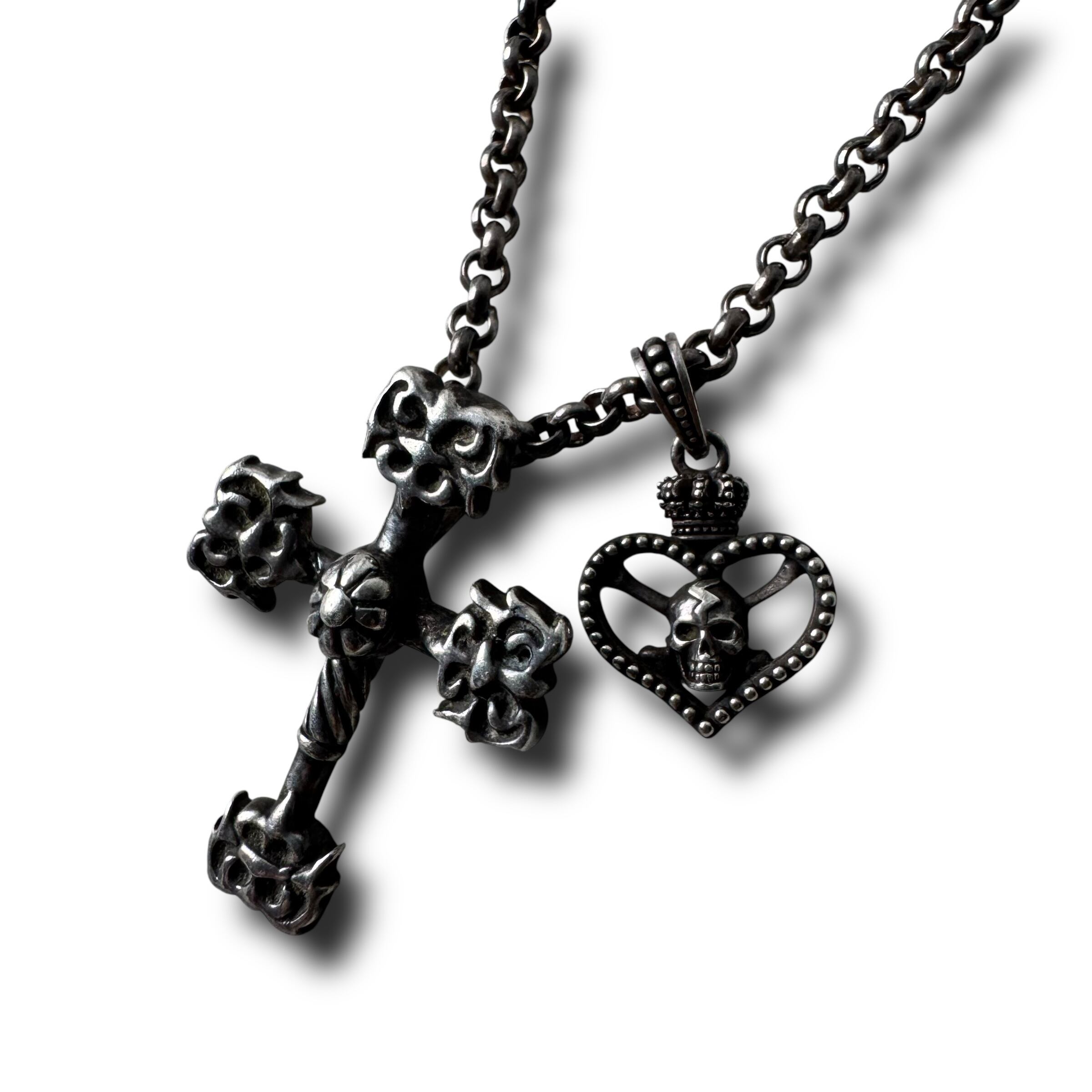 ‼️SPECIAL‼️♾vtg sv jewelry♾ cross n' skull heart charm combination w top design necklace sv925
