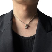 stone n' heart motif w top design necklace