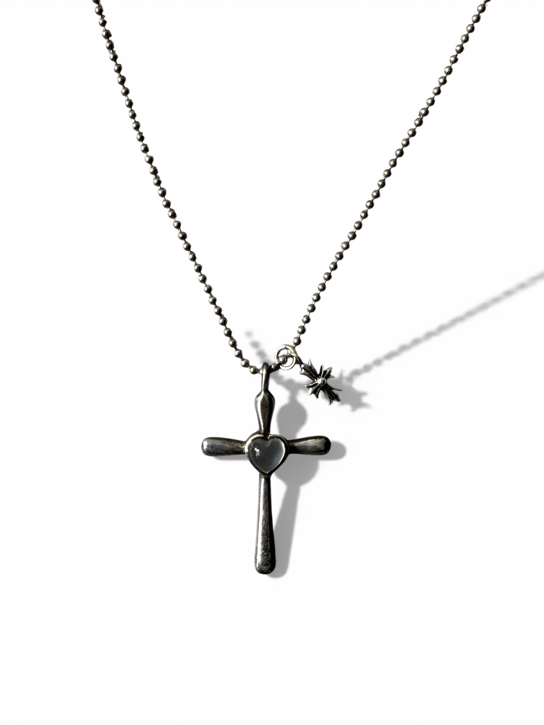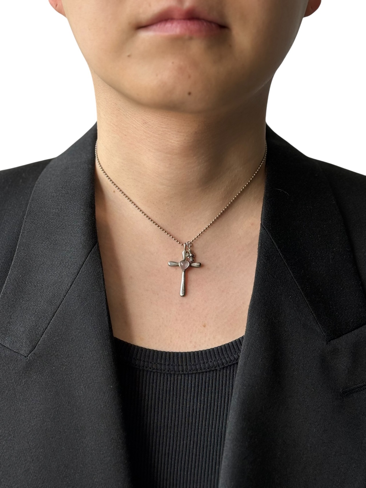 ♾️Sterling silver♾️sv925 Cross Heart & mimi cross design double top necklace