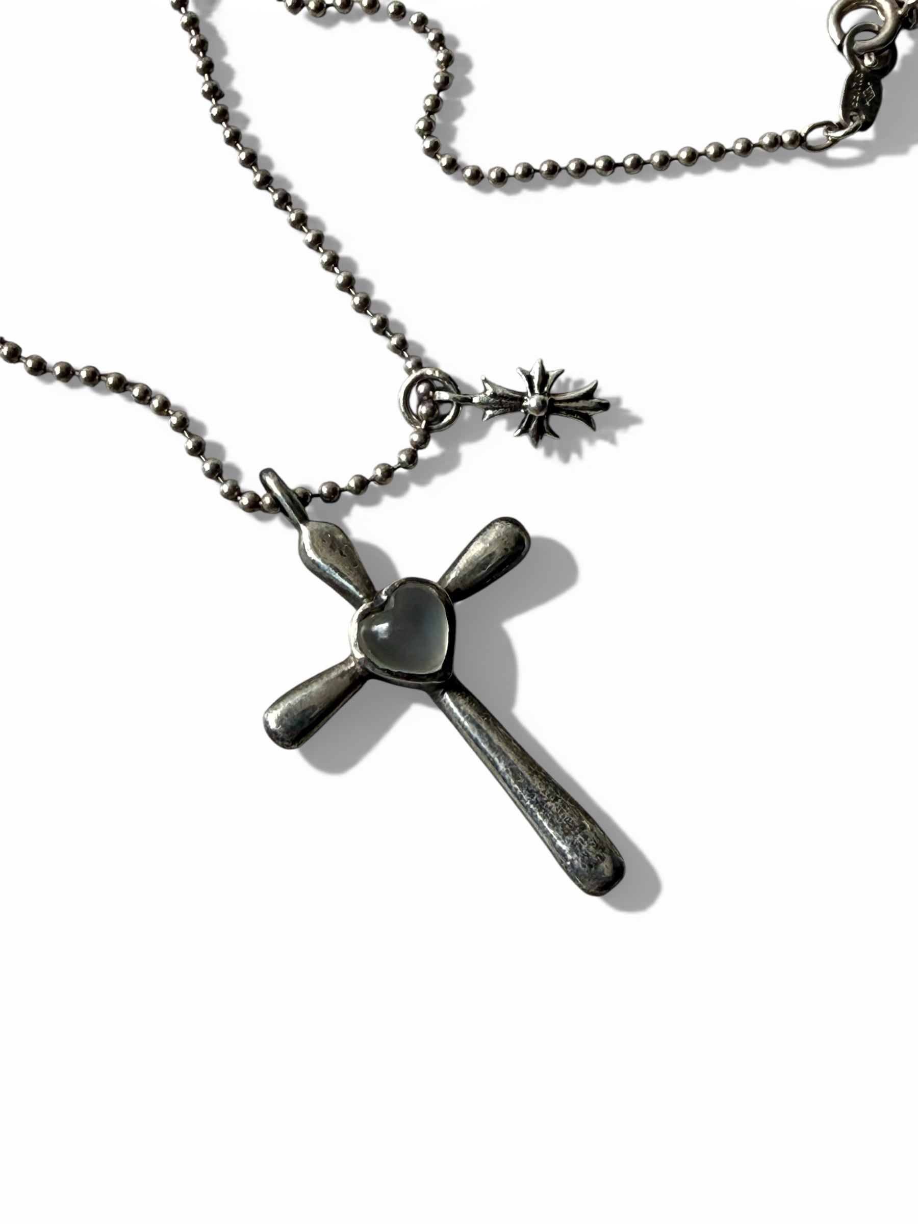 クロスの中央にハートの形のストーンがセットされたおしゃれなアダプタ安定にめちゃくちゃかっこいい形のクロスのダブルトップデザインネックレス!!