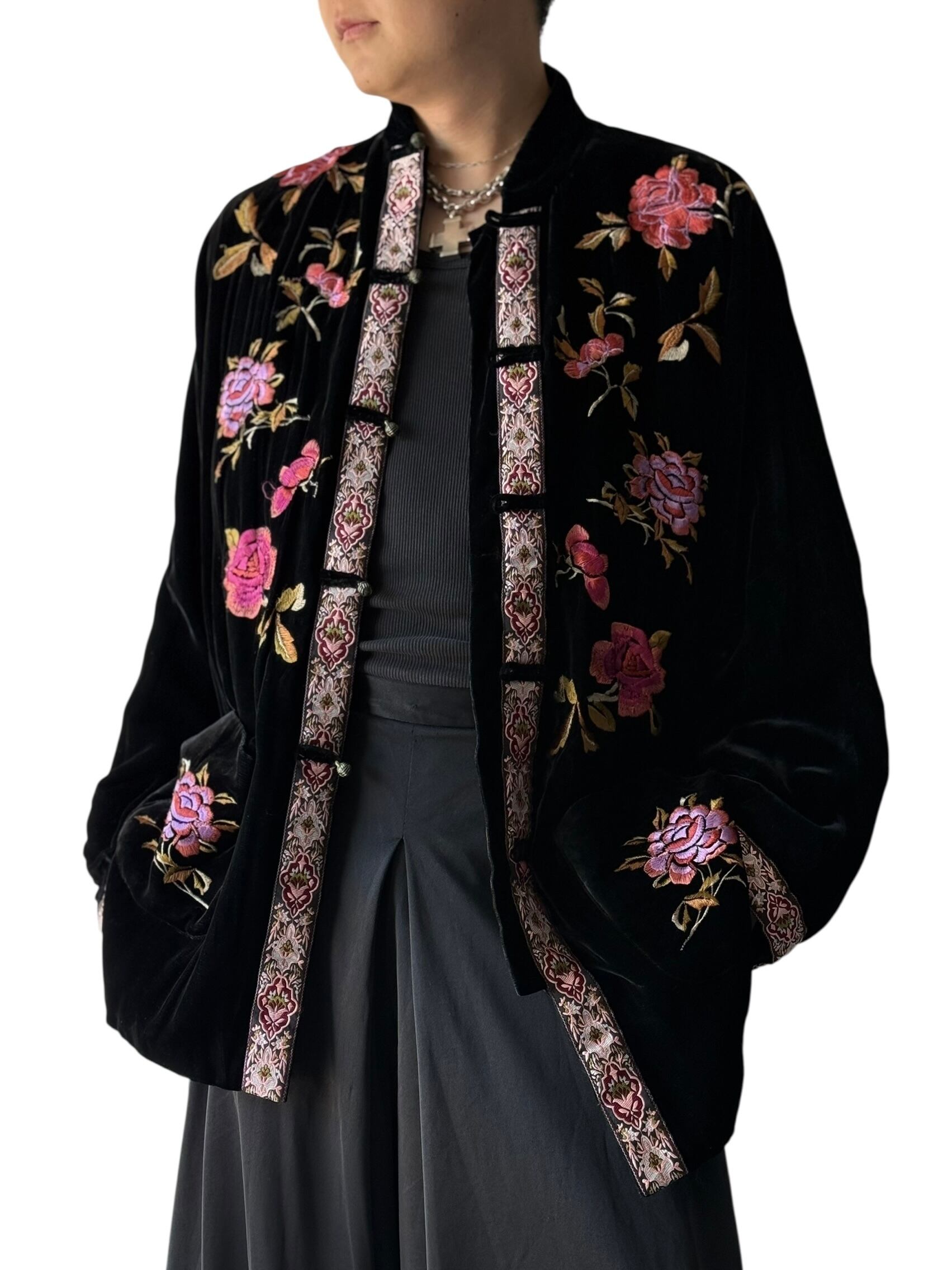 かなり珍しいチャイナボタンディテールのベロア刺繍ジャケット‼️