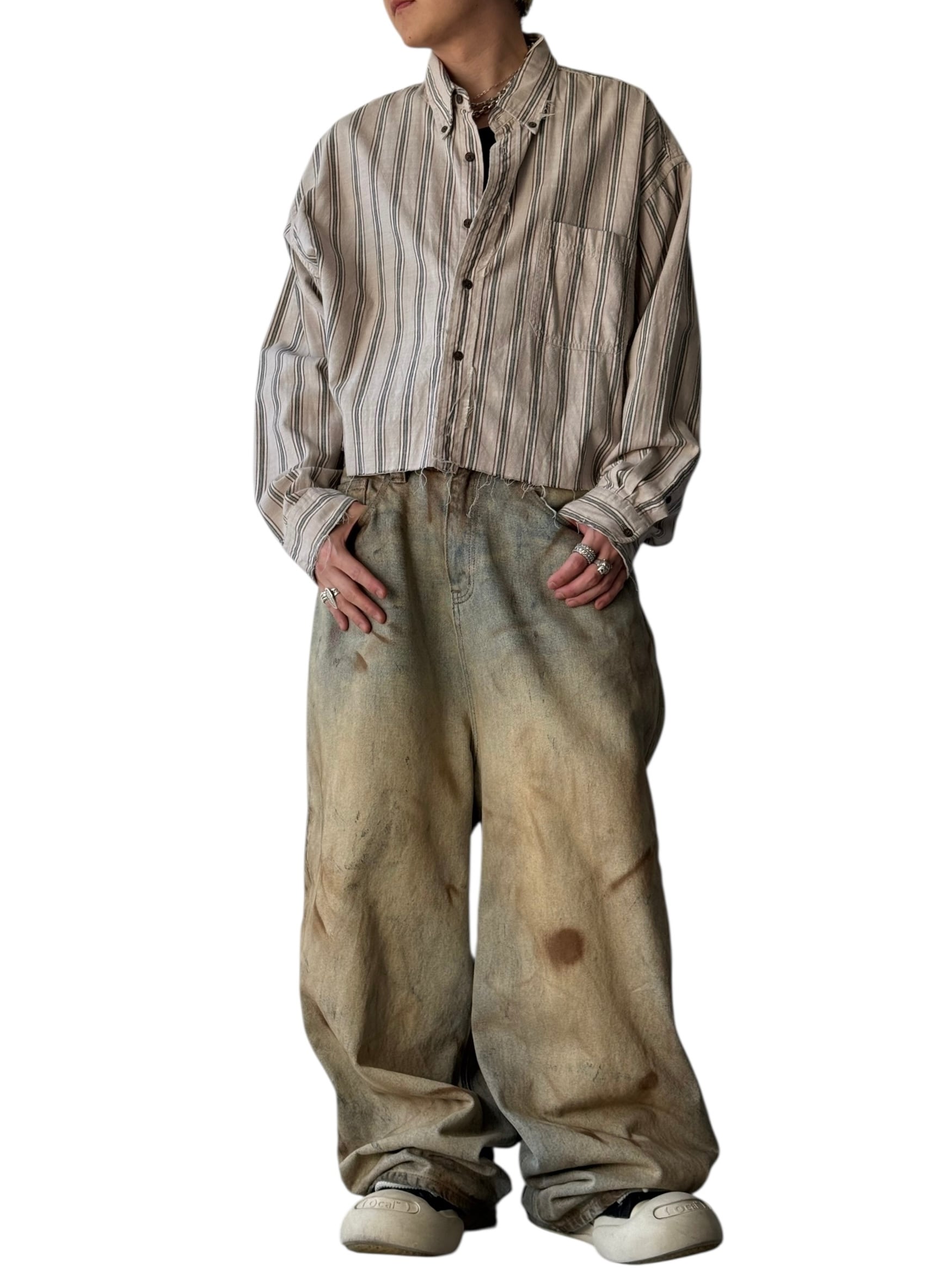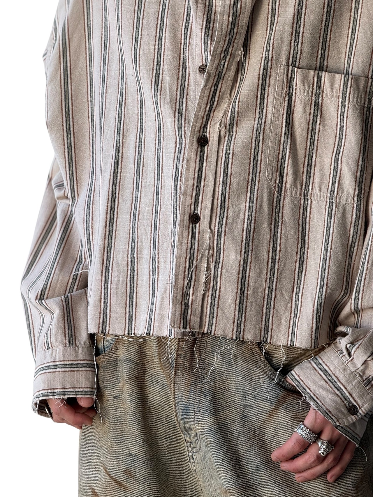 綺麗めに使えるストライプにダメージ感のいいエッジが加わりコーディネートのアクセントに⭕️