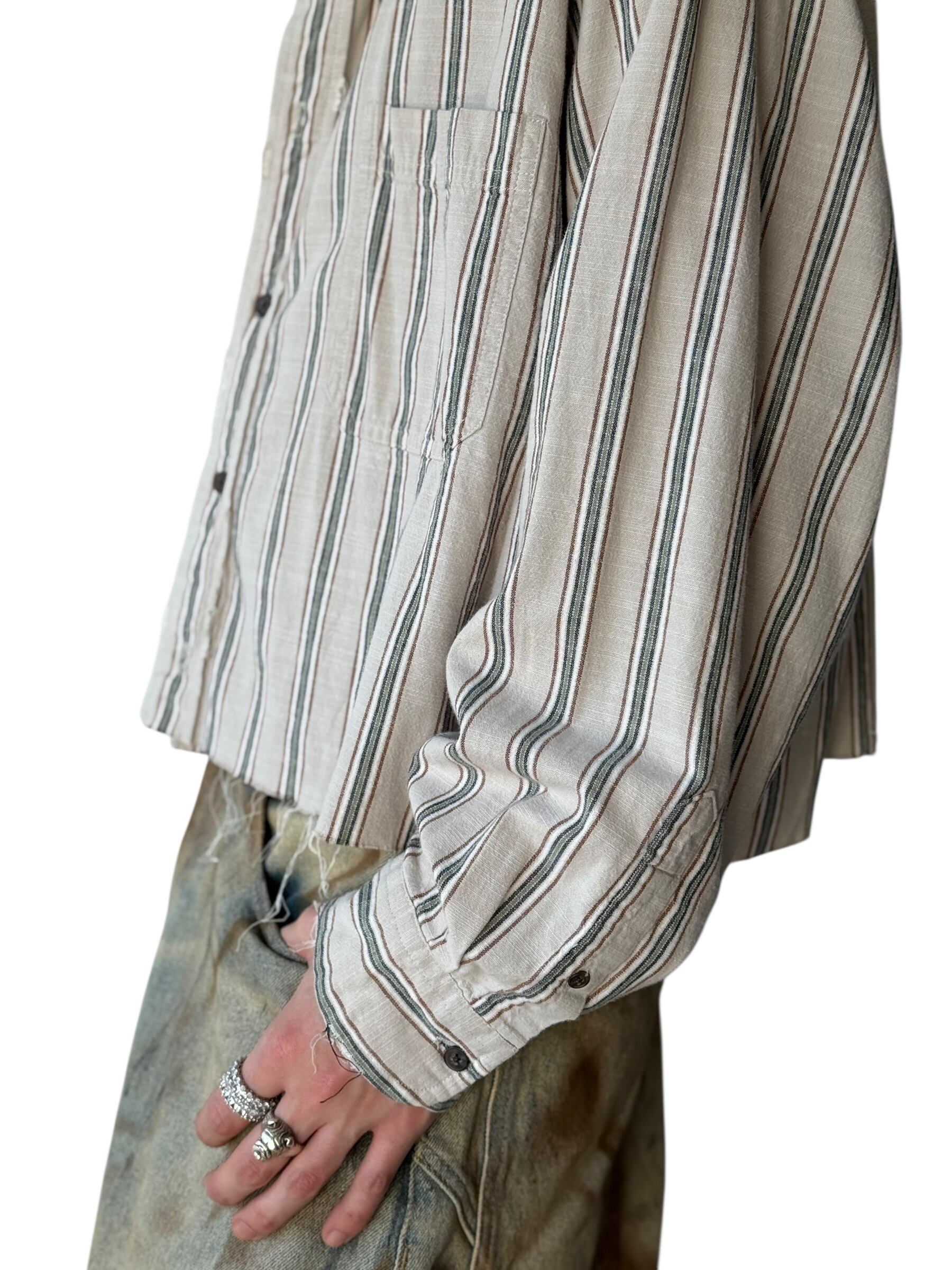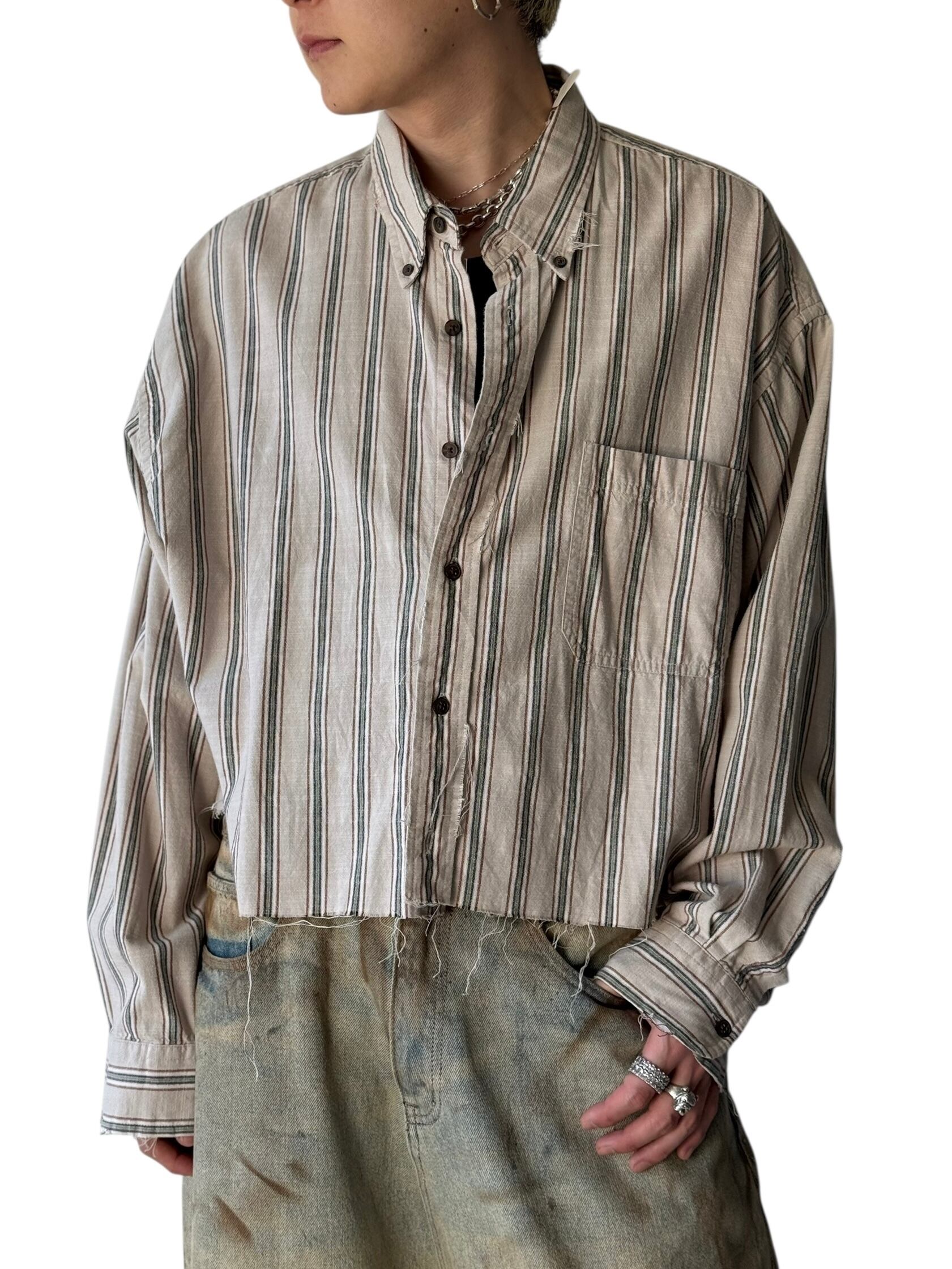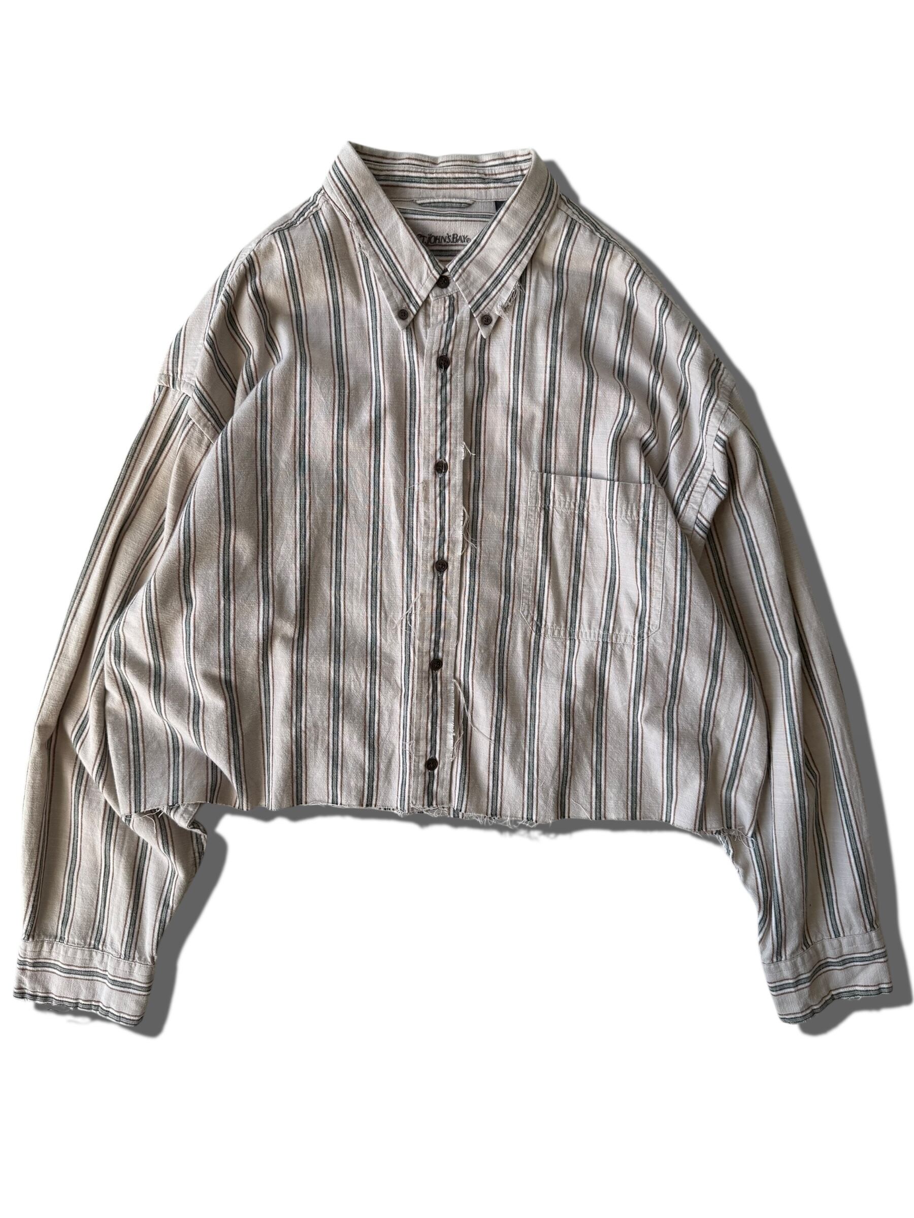 【ST.JOHN'S BAY】 short length stripe pattern oversized button-down shirt