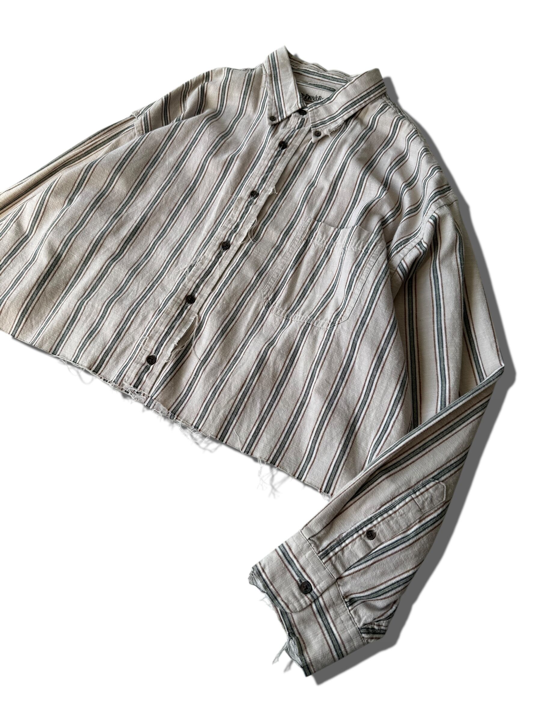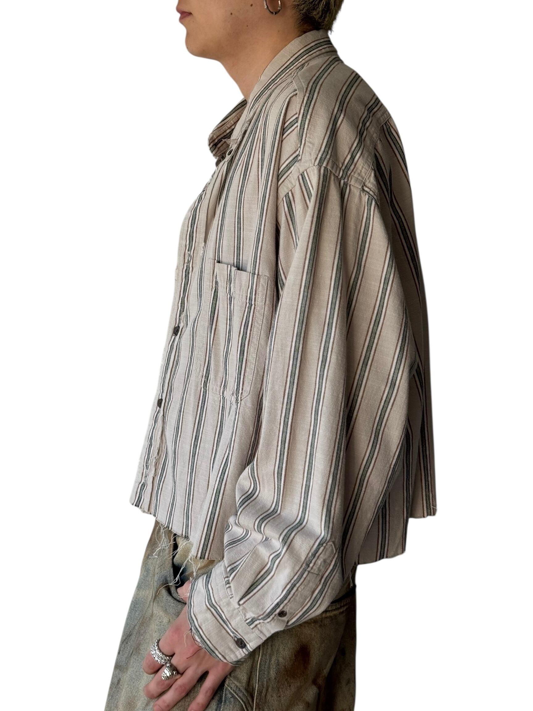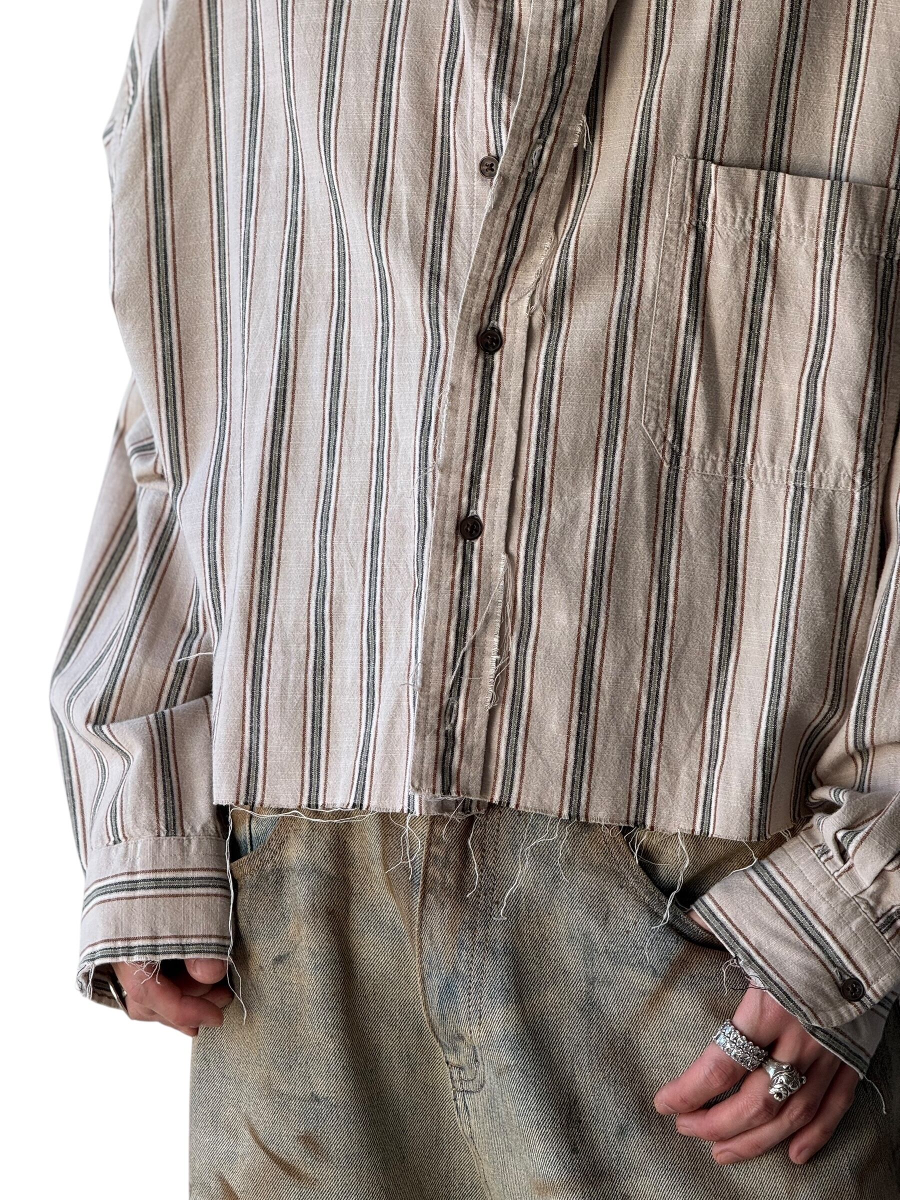 【ST.JOHN'S BAY】 short length stripe pattern oversized button-down shirt