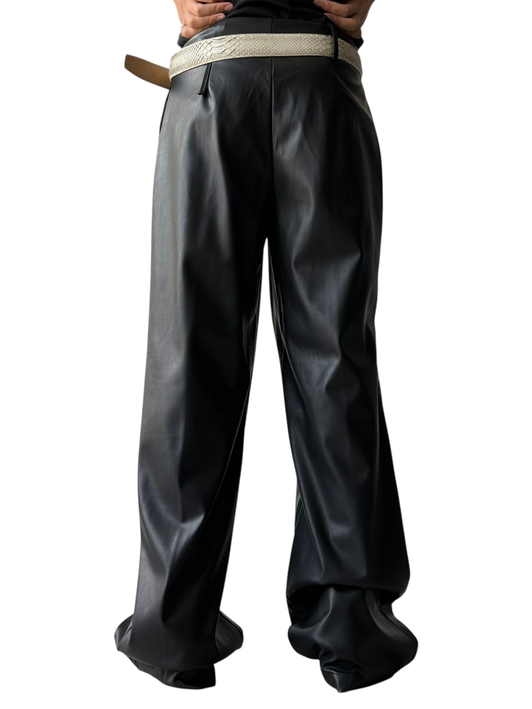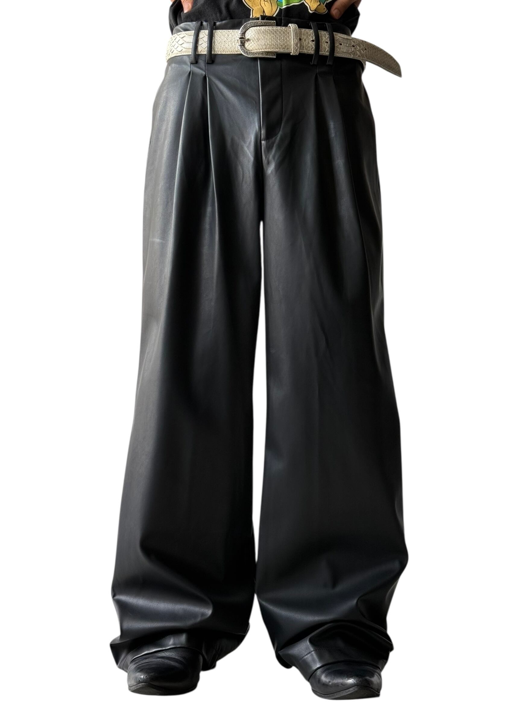 【SO】"WIDE LEG" PU Leather Tuck Design Straight Slacks