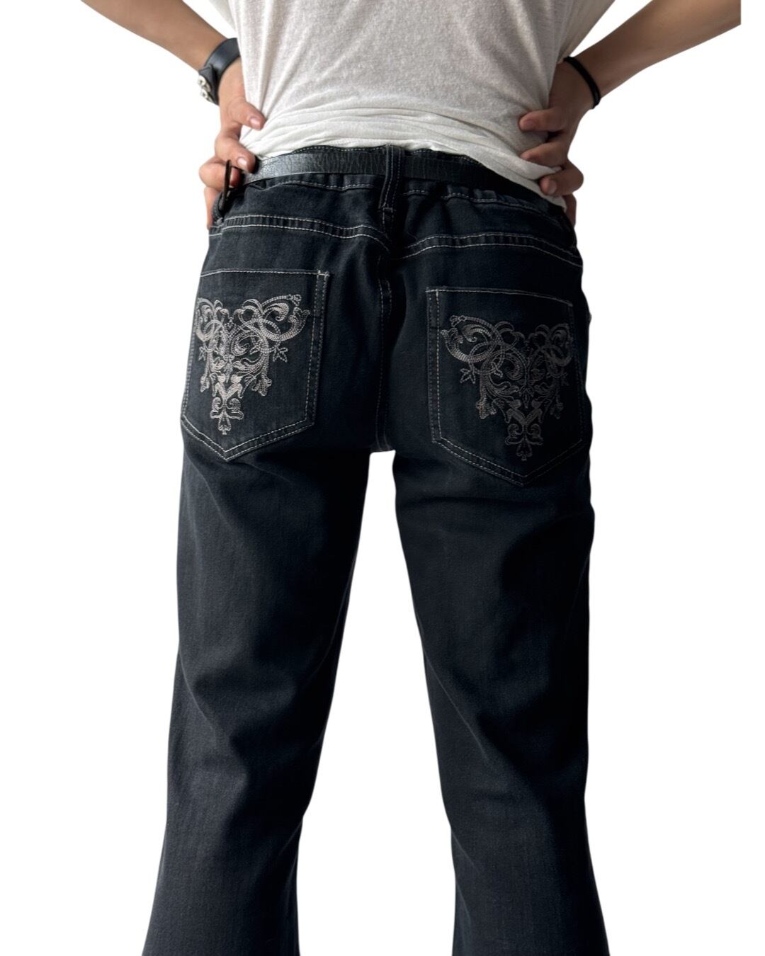 ♾ellemenno♾ back pockets embroidery design flared piece dyeing denim size11