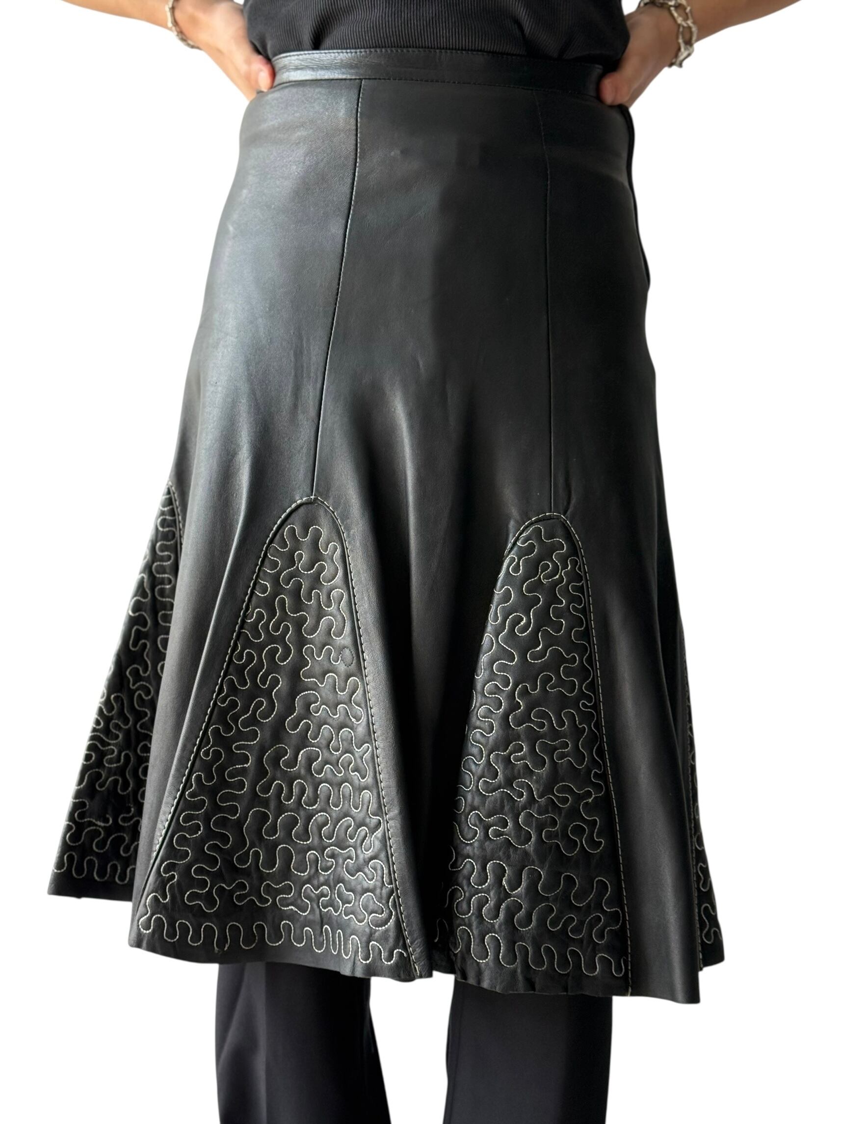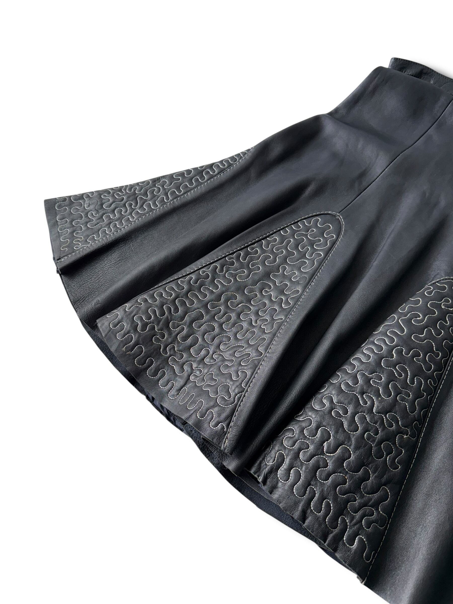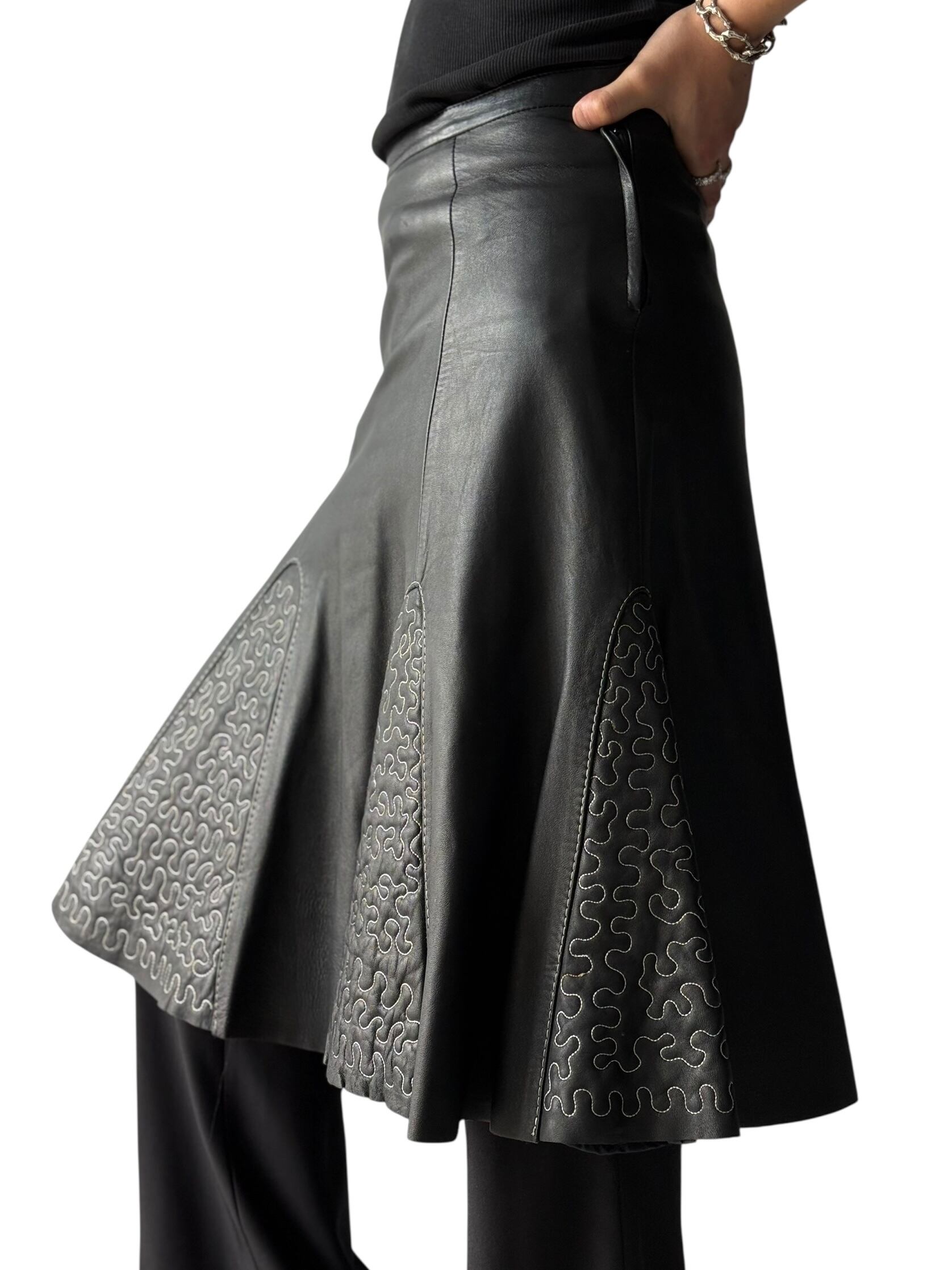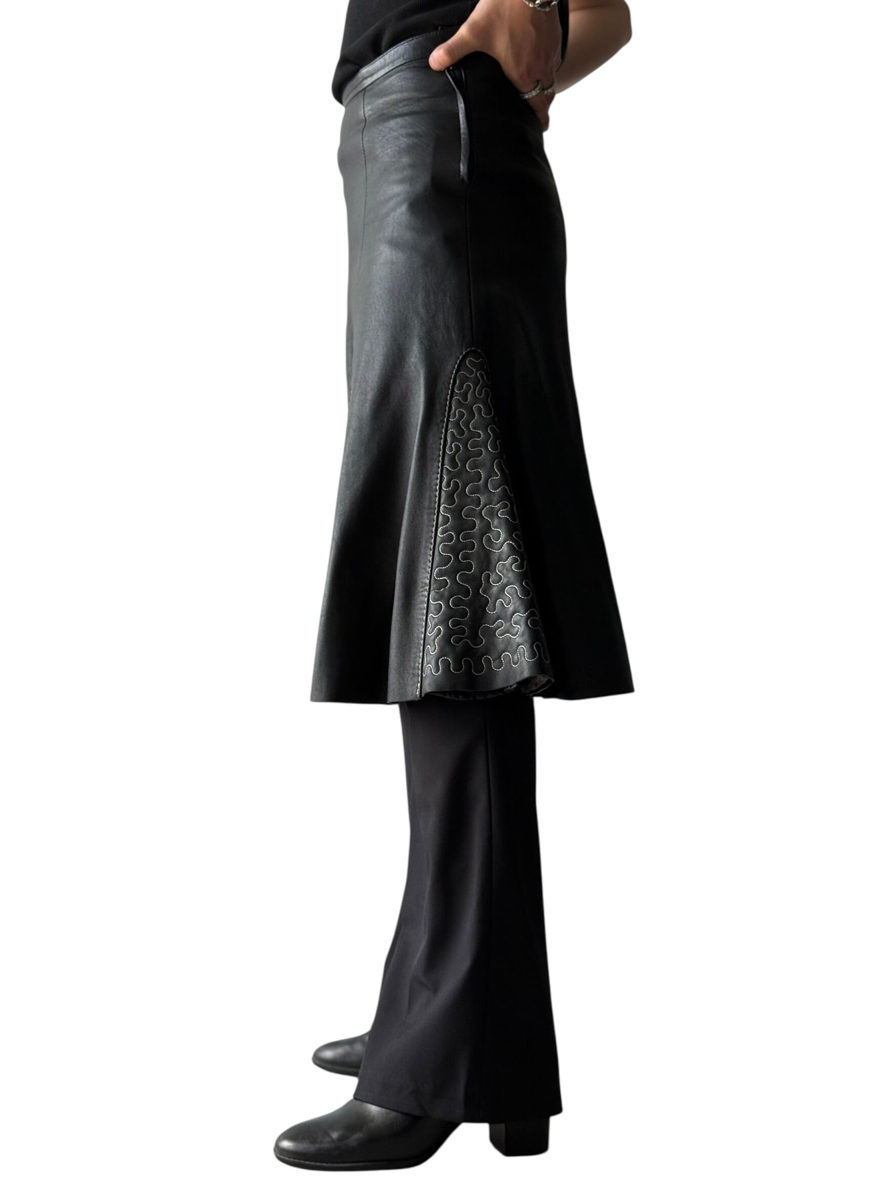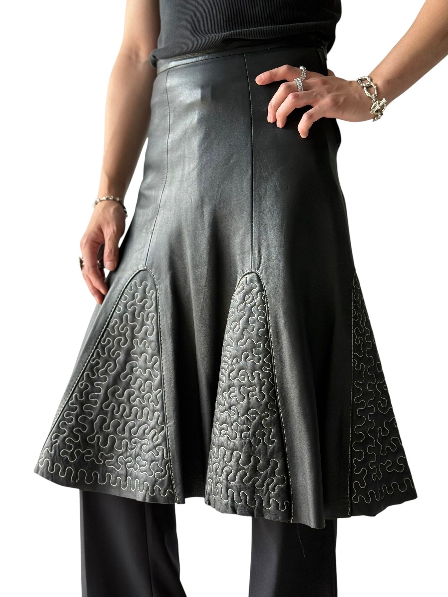 【OLD UNKNOWN】 Leather Stitch Design Skirt