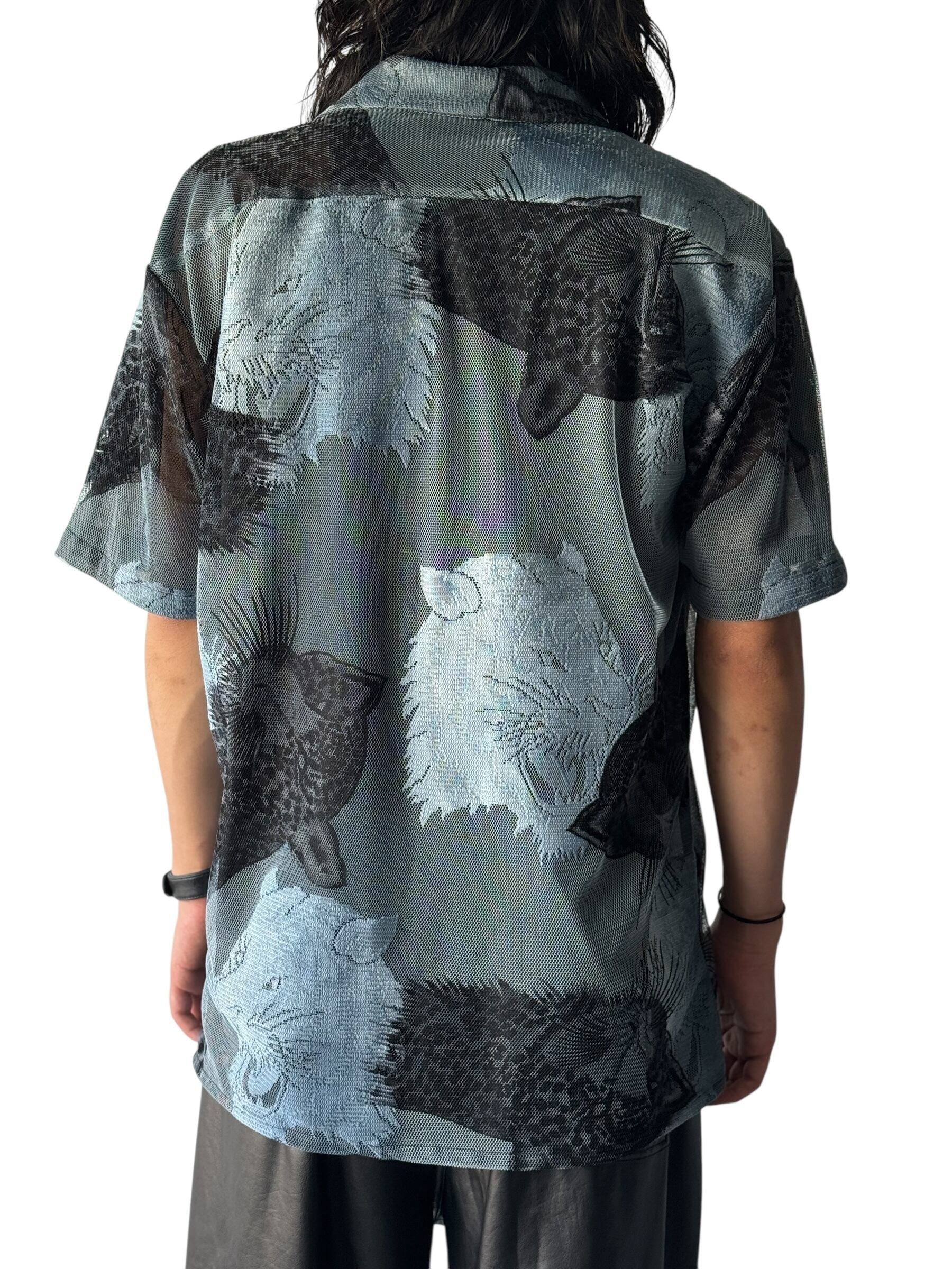 cheetah design mesh sheer S/S shirt