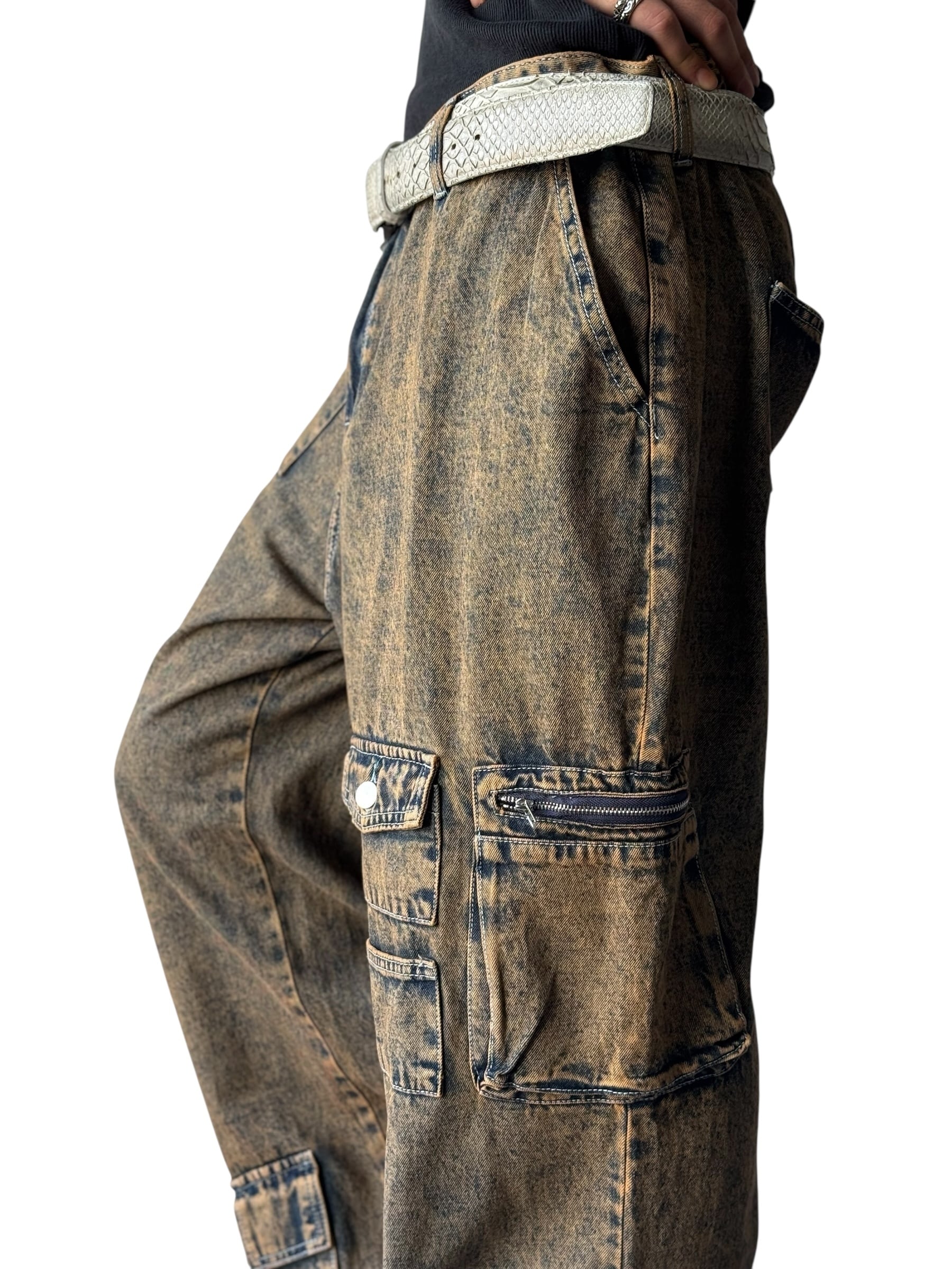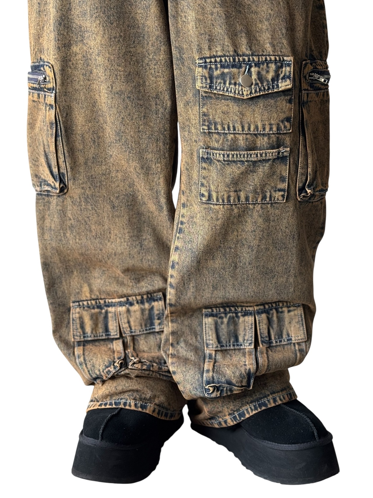 ♾design used♾ multiple pockets design hyper jumbo silhouette denim pants